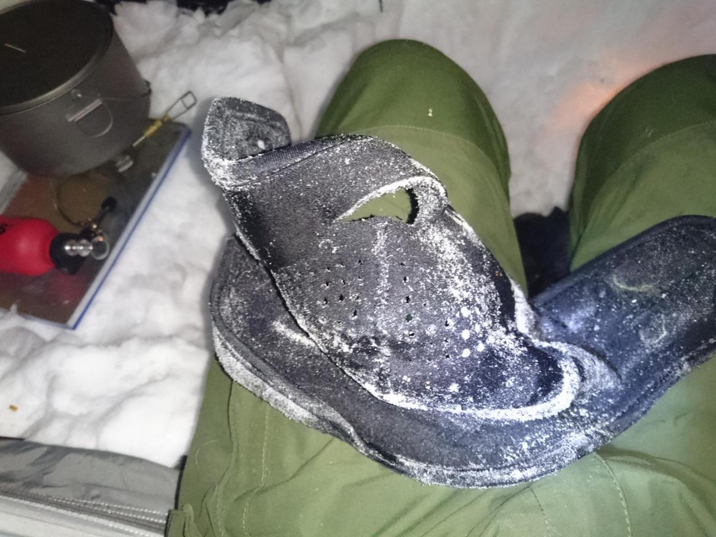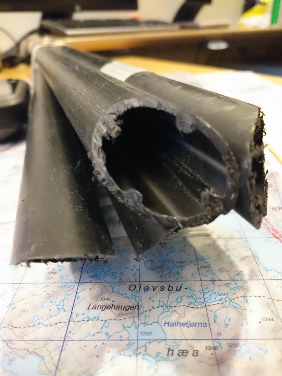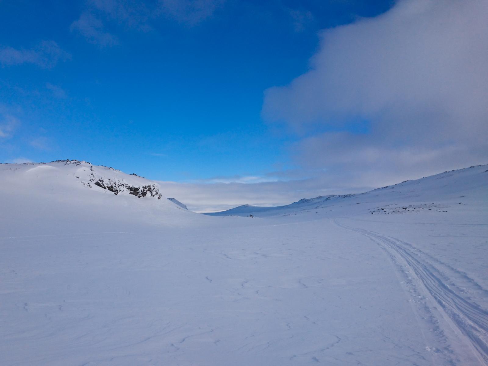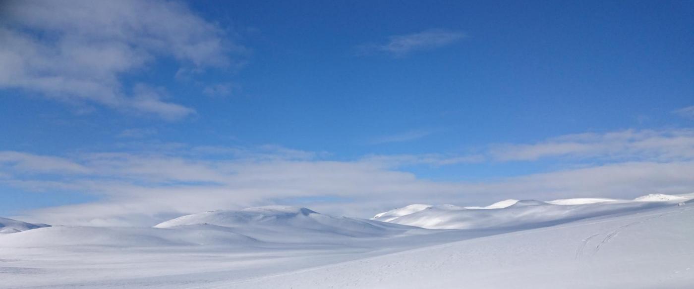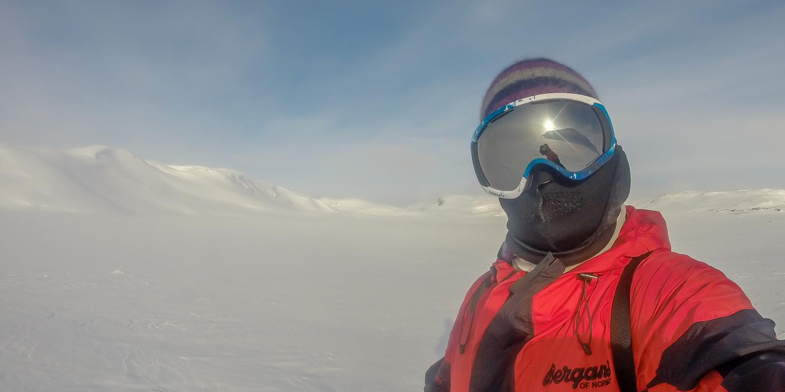 Finse - Haukeli februar 2016 Turen var allerede bestemt i fjor, men pga dårlig vær gikk uka jeg hadde satt av fiseføyka. Nå hadde det kriblet i hele vinter i skibeina, og pulken hadde følt seg ganske så ensom på boden litt vel lenge nå. Ruta ble mer eller mindre ferdig rundt juletider, og mye tid hadde blitt brukt rundt kartene for å bestemme ruta. Ettersom jeg skulle reise alene, ønsket jeg å få litt følelsen av "ensomhet", og å gå stier alle andre ikke fulgte. Dette hadde sammen med rotasjonen min på arbeid mye av skylden for at det ble nettopp denne tiden av året. En tid da de fleste løypenett ennå ikke er kvistet, og det fortsatt er skikkelig vinter! Kartene ble skrevet ut fra tjenesten her på forumet. Skrev ut i A4, laminerte og hadde da ett pasende format som passet i jakkelomma som var vanntett. Av de siste forberedelsene, var det å lage 60cm teltplugger av brøytestikker. Dette var den sorte typen, som ikke er helt hul, men har forsterkninger innvendig. Angrer på at jeg ikke lagde flere, for dette var genialt i sterk vind, og for kalde fingre. Litt kjapt om utstyret jeg benyttet på turen. Fjellpulken 144 Åsnes Nansen m/kortfell Artic bedding 2 posesystem. Syntetisk Ytre, dun innerst. OmniTi m/ Silencer og Coleman 550B Toaks 2L Titankjele m/hjemmelaget cosy Kart, kompass og GPS Inreach SE 2 batteribanker, 10W solcellepanel, AA og AAA Litium batterier 1 Gravlykt Kindle Helsport Patagonia Exped 7LW og skumunderlag Leke plastspade til snøsmelting Snøspade 2x hodelykter 5L Bensin Oakley Googles Skismøring Førstehjelpsutstyr, (strips, sportstape, tensoplast osv) Speilrefleks og Gopro Klær: Bergans Antartic Expedition Jakke (fantastisk!!!) Norrøna Recon Gtex bukse 2x tykke ullsokker 2x linere 1x tynnere ullsokker (ble ikke brukt) Brynje netting (satt på hele turen) 2x ull Lag 2 1 tynn fleecegenser 1 tykk fleecejakke 1 Marmot dunjakke (UL) Balaclava 2x ansiktsmasker 1x Ullvangsgenser Mat: 6 Real middag 6 Real frokost 2x Bixit 2x skivet brunost Rett i koppen Sjokolade og Solbertoddy 3x Hot Imago øl pølser 3x komaposer med sjoko og salte nøtter 3x store sjokoladeplater 4x poser sølandschips Jeg kommer mere tilbake med noen av utstyrs erfaringene jeg gjorde på turen, og hva jeg angrer på. Endel av oppsettet er jeg fornøyd med, andre ting var fullstendig bortkastet. Men ha i bakhodet, at dette var en solo-tur i februar, og hvor jeg setter sikkerheten uten tvil i første rekke. Og JA, dette resulterte i en kanskje unødvendig tung pulk Finse - Krækja Jeg kom hjem fra arbeid på vestlandet tirsdag kveld, og håpet var å rekke morgentoget mot Finse onsdag morgen. Men det ble litt vel tight, så ble nattoget isteden. Fikk en kamerat til å kjøre meg til Larvik togstasjon da dette gjorde transport av pulken noe lettere. Selvom jeg ikke hadde bestilt plass til pulken ordnet dette seg fint. Men fikk beskjed om at ikke alle tog var satt opp til å ta med gods, slik at man egentlig ikke kunne forvente dette. Pulken veide da i underkant av 50kg, og var ikke særlig håndterbart for en person heller, som også var kravet. Det store spm var om jeg rakk å komme fra spor 1 til spor 5 innen de 16min overgangen min var i Drammen. Det gikk med nød og neppe, etter litt tigging om hjelp Som andre før meg, gikk jeg trøtt i trynet av på Finse stasjon 04:04 og fant frem til postbua. Lite ante jeg at Finsehytta lå nesten vegg i vegg. Da hadde jeg nemlig gått dit for å tømt ryggen, isteden for å trippe rundt på 3kvm i villrede over hva jeg skulle gjort. I panikken gikk jeg bortover stasjonen for å se om det kunne være ett åpent toalett. En dør var åpen, og rett på innsiden lå den en død rev å kikket på meg.... Ja jeg slapp faktisk nesten å leite videre etter ett toalett...Men bare nesten..... I påvente av litt lys, gjorde jeg de siste forberedelsene før avreise. Fylling av drivstoff på primusene, pakke dunjakke og votter i Artic beddingen lett tilgjengelig, og satt på fellene på skia. Når det endelig lysnet så jeg Finsestua, og gikk bort dit for tømming av rygg, og en bedre frokost før turen startet rundt 0930. Må si jeg hadde litt sommerfugler i magen når ski og pulk var spent på, og det føyket snø rundt ørene mine. Jeg har vært endel på tur før, både vinter og sommer, men dette ble liksom litt annerledes. Marginene virket liksom litt mindre der man plutselig sto og skulle ta sine første stavtak.... Som sagt så blåste det som vanlig på Finse, og det var frem med GPS allerede ved Finsevatnet. Det skulle være kvistet løype opp til Midtnutvatnet, og etter hvert havnet jeg inn på denne løypa. Må jo innrømme at det er ganske behagelig å følge disse kvistene, selvom det var heller dårlig med spor å følge. Jeg kjente at det var uvant å dra pulk igjen, er jo snart 20år siden sist. Og å dra pulk er ICKE som å sykle, det glømmer man....Iallefall muskelaturen Mot slutten av dagen løyet vinde, og det ble ett nydelig vær. Jeg bare gikk der og nøt omgivelsene. Det var bare så ufattelig vakkert over alt!! Jeg var nå på veg ned mot Finsbergvatnet, og her fikk jeg min første lille lærepenge. Egentlig gammel enkel lærdom, men man glemmer fort litt på vinteren, da alt liksom er vasket over. Alt ser liksom så glatt å fint ut, med unntak av en eller annen stein som stikker opp. Jeg stopper litt opp over en liten kul. Lurer på om det bare er å sette utfor. Heldigvis for meg, så er jeg såpass dårlig på ski, at jeg faktisk vurderer nedkjøringene mine.... Jeg syns det virker i bratteste laget, og velger å gå litt tilbake og å ta en annen rute ned. Da jeg kommer mer ut på siden, ser jeg at rett nedenfor der jeg i stad vurderte å kjøre, var en skavel, og ett fall på ca 3m. 3m er ikke mye, men alene med pulk kan det fint være nok til ett brekt bein eller arm. Dette fikk meg til å innse det innlysende, at mye står uskrevet mellom høydekotene på 20m på kartet!!! Her gjelder det å følge med.... (ja jeg veit...N