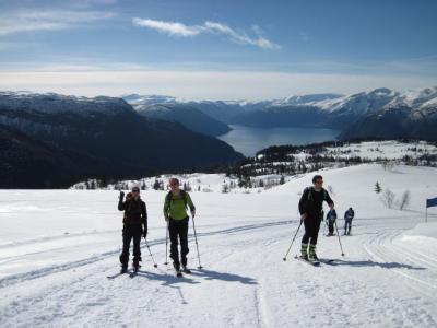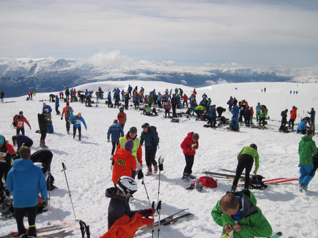 Eg er ikkje så glad i startnummer eller konkurransar. Normalt sett. Difor var det utruleg kjekt å verte positiv overraska over "Kjeringi Open" i helga (Kjeringi Open på FB). Ja, det er konkurranse. Og startnummer. og tidtaking. Men det er også tur, oppleving, kos, prat, sosialt. Og alt det andre som eg likar best. Så om du er ute etter ei jovial utfordring, eller "vaorens vidlaste eventyr" eller berre har bittelitt 40-årskrise, så kan eg anbefale Sogn i april! Eg trur og at Noregselita i telemark som var med koste seg. Dei brukte 7-8 minutt ned frå fjellet. Eg brukte 30. Kvar sin smak med andre ord. Kjeringifjell 1340 moh ligg no der resten av året og, og er ein enkel tusenmeterstopp med flott utsikt. Heile bygda er med å arrangere - dei som ikkje deltek minglar på kaia og det er full fest på hotellet om kvelden. Slitsomt, men veldig, veldig artig. Som ein ekstra bonus kan ein øve seg på å snakke tudlasognamoal heiel helga, og det er alltid fint ver så langt inne i fjordane på denne tida. Hald av 16. april 2016! Eg hiv ut nokre bilde her, og litt meir frå helga i bloggen for dei som er interessert.