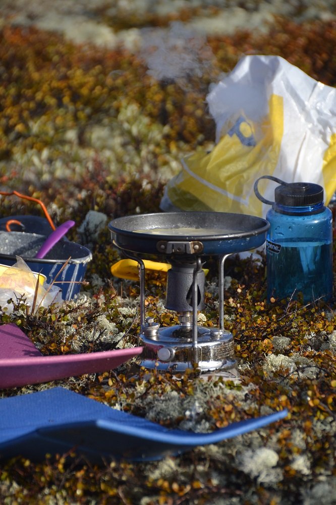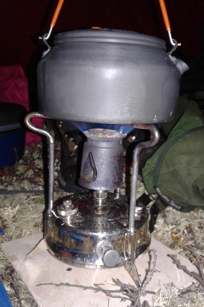 Jeg har vært så heldig å få arve en Radius 21 etter min samboers bestefar. Den har stått i en kasse på låven og vansmektes i sikkert 30 år. Jeg snublet nærmest over den ved en tilfeldighet i sommer, på leting etter noe helt annet. Den har vært hardt brukt og så begredelig ut ved første øyekast. Den var både rusten og møkkete, men jeg ble raskt overbevist om at jeg sto med en liten perle i hånden. Etter noen runder med rustfjerning, gnikking og gnuing, så sto den opp igjen som en liten fugl føniks og brenner atter en gang med kraftig blå flamme og hveser som et lite jettfly. Den har bestått både prøvebrenning og felttest med glans. Den blir et absolutt fint supplement på brennersiden og ligger an til å bli en liten favoritt til fotturer i sommerhalvåret der jeg ønsker en litt større brenner en Svea 123’en. Akkurat min Radius 21 med forniklet tank, ble trolig produsert omkring 1962. Radius AB la ned produksjonen i 1963. Det er vel snakk om renovering fremfor restaurering med denne primusen, men kjekt å ha den skinnende og blank igjen. Her er uansett bilder fra før og etter, samt noen bilder fra felt. Vann til kakao og sånn på kvelden. Pannekaker til frokost.