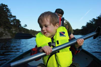 Problemet er at han nekter å gå med vesten! Alt blir tungvindt, og han får ikke gjort det han har lyst til! Så dessverre ender kano og fisketurer ofte opp med fiasko!
