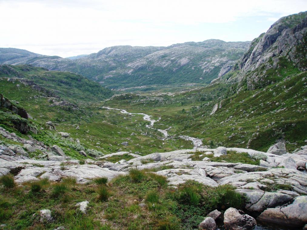 Så var det endelig vår tur, broderen og meg. Dette er den første fotturen vi har hatt sammen og det var jammen på tide etter 24 år. Så da valgte jeg å gå inn til Eikjeskogstølen i Forsand, men via Hålandsstølen. Det var her vår grandtante Agnes bodde en periode av sitt liv, så å ta turen innom «slektsstølen» passet jo bra. Turen opp er bratt i begynnelsen fra Molaug, ca. 50 minutter med god stigning hele veien. Men vel oppe er det passelig terreng å gå i og Eikjeskogstølen nås etter litt under to timer fra start. Link til turen på UT.no kommer! Merk at denne turen ikke er merket, men følger sti. For denne og flere turer i Rogaland - klikk inn på www.norhike.com Tilbakeblikk ned mot Molaug, spektakulære fjellformasjoner Over Stølselva vel oppe etter stigningen Hålandsstølen skimtes i det fjerne der oppe Stølsvannet med Frafjordhatten Broderen poserer Hålandsstølen Tilbakeblikk Hålandsstølen og Stølsvannet Videre opp til nydelige Sliraknutevannet Nydelig hytte ved Sliratjørna med «hatten» i bakgrunnen Innover mot Øvre Espedal på andre siden Eikjeskogstølen En god rast! Hålandsstølen