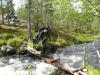 Vi startet turen ved Kärringsjön torsdag 11 juni, værmeldinga på yr.no var ikke særlig lovende, det var meldt regn, surt og kaldt vær i en uke... Det skulle vise seg at de traff blink med værmeldinga, men vi lot oss ikke knekke av dystre spådommer. Vi skulle på tur uansett! Vi satte kanoen på vannet i halv seks tiden på kveldingen og var ved Rogen i 20 tiden, etter å ha padla Kärringsjön Håen og bekken fra Håen. Etter en matbit og litt avslapping kryssa vi en blikkstille Rogen mens skyene på himmelen lovet kommende regn og slo leir straks vi nådde land. Neste dag tok vi fatt på bæringa opp til Bredåsjøen, kryssa denne, bar så opp til Lasjøen og videre til Vonsjøen hvor vi slo opp teltet. Dagen etter våknet vi til regn og kraftig vind, men vi vurderte det som sikkert å padle Vonsjøen. Vi slo leir allerede ved Larsholm i andre enden av Vonsjøen, vi hadde da padla i motvind og regn, og var egentlig lei av dagen. Vi slo opp teltet, fyrte primus og fikk tørka oss opp og etter en Toro pølsegryte var soveposen neste stopp. Vinden fortsatte dagen etter, men skydekket var noe lettere og vi håpet på oppholdsvær etter 3 dager med regn, men vi fikk litt regn denne dagen også... Vi bar sekkene og kanoen over til Grøtåa og la i vei ned Grøtådalen i sterk motvind, denne strekningen hadde vi gleda oss mye til, men motvinden gjorde at vi måtte padle hardt selv om vi hadde medstrøm. Etter 10-11 timers forflyttning nådde vi den sagnomsuste Krokåthåen og slo leir, det tok ikke lange tiden etter middagen før vi var i drømmeland. Neste dag var vinden enda sterkere og vi tok en hviledag, nysnøen hadde krøpet et godt stykke ned Stor Svuku og fisket var elendig... Vi drog videre dagen etter, i korte trekk så bar vi kanoen ned til Grislehåen og svinget opp Røa til Storfisktjønna hvor vi slo leir. Vi var enige om at neste dag skulle vi ligge rolig ved Storfisktjønna og utforske vannet med fiskestanga. Dagen etter var første dagen uten regn på turen og sola var faktisk fremme av og til, men det ble ingen fisk Dagen etter gikk turen opp Røa til Revsjøen via Styggsjøan og videre ned Reva til Revbua hvor vi overnattet. Regnet var tilbake for fullt og det ble en våt dag, men vi fikk 6 harr på strekninga fra Revsjøen til Reva : Neste dag fortsatte regnet og vi bestemte oss for å avslutte turen 2 dager før planlagt. Av de 9 dagene vi var på tur var det bare en dag uten nedbør. Vi tok fatt på Rogen og tok turen til Käringsjön via Öster-Rösjön, Uthusjön og alle de andre småvannene. Nå i ettertid syns jeg dette var en fin tur til tross for mye dårlig vær, men å padle Grøtåa i finvær skal gjøres ved en senere anledning. Fisket var ikke det helt store, fasiten ble 3 ørreter på henholdsvis 0,5 kg, 3,1 kg og 300 g, pluss 6 harr i halvkilosklassen