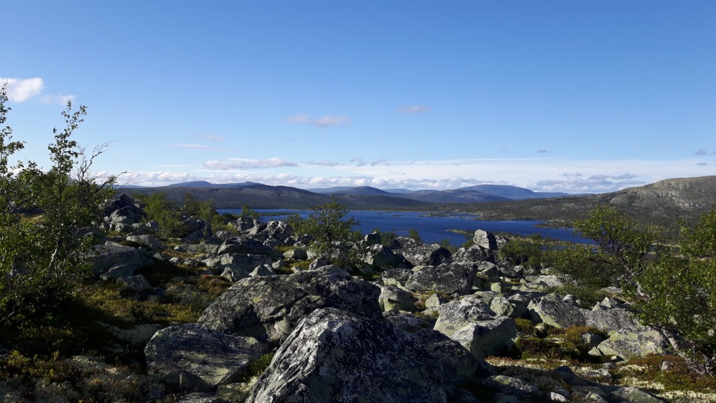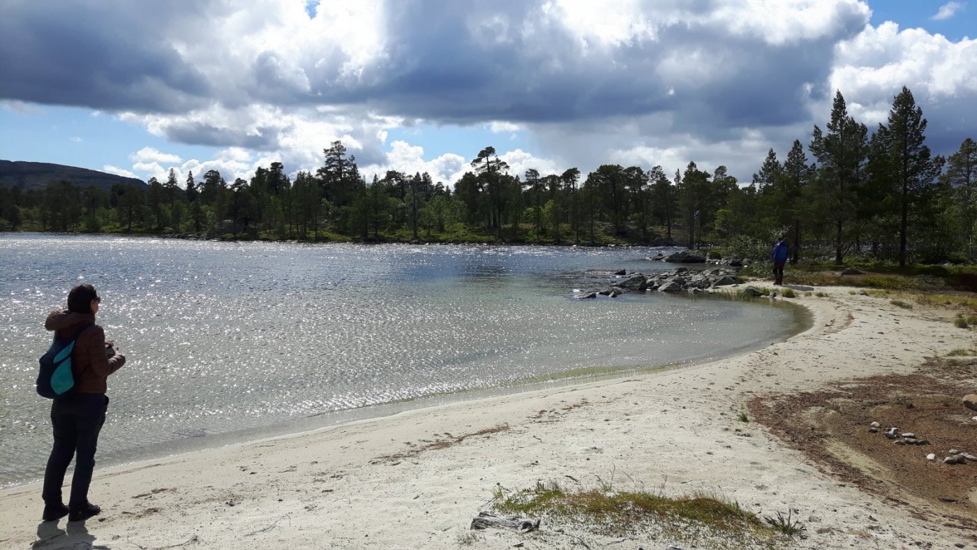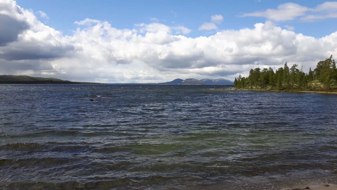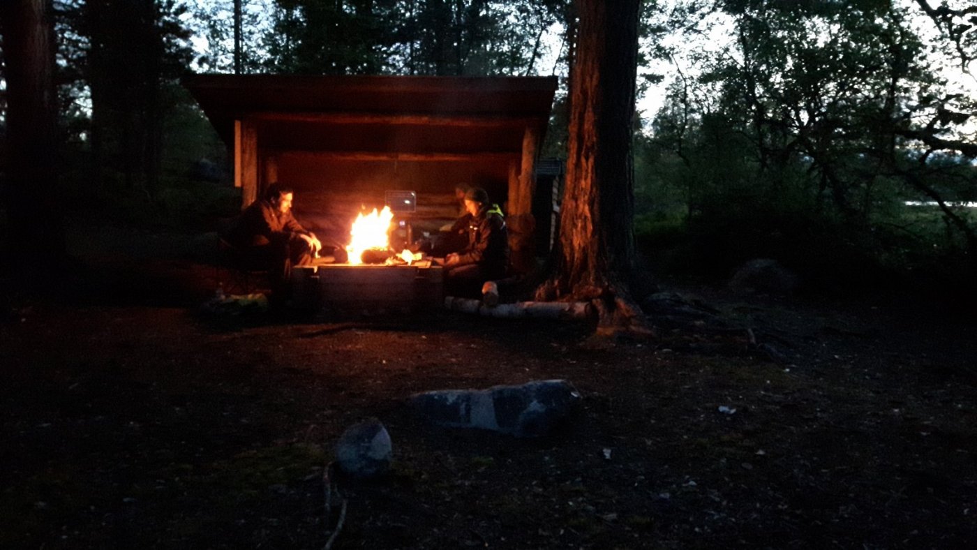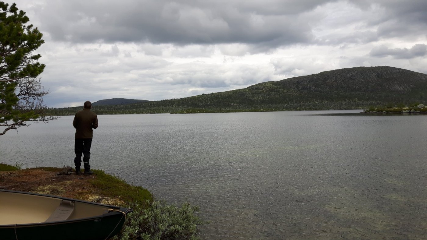 I år var det duket for vår lengste tur noensinne, både i tid og distanse. Etter en tur til Grislehåen i 2014 fikk vi veldig lyst på en tur til Vonsjøen, og den opprinnelige planen var å gå til anskaffelse av hver vår Packraft og ta denne turen via Røa, Roasten, Grislehåen og derfra til Vonsjøen. Av flere grunner ble det med tanken, blandt annet var det en økonomisk vurdering fra flere i gruppen, i tillegg til at jeg og fruen kjøpte oss en kano. Etter mye fram og tilbake ble det besluttet at vi skulle kjøre fra Bergen til Kärrinsjön, parkere der for så å padle og bære fram til det som skulle være basecamp helt nord i Vonsjøen. Vi er ikke så veldig glad i turer med tett tidsregime, så i korte trekk var tanken å ha en ukes basecamp nord i Vonsjøen, og resten av tiden skulle brukes til å komme seg fram og tilbake. Hvis vi bare kom til å bruke to dager fram hadde vi kommet i konflikt med regelen om maksimalt 7 dager på samme sted, så da skulle vi ha to forskjellige base camps i Vonsjøen området, så en relativt åpen plan. Kjøreturen led litt av "bare litt til" prinsippet, vi skulle egentlig overnatte i Røros, men det endte opp med at vi kjørte hele ruten fram og ankom utpå natten. Satte opp teltet i en fei ved parkeingen på Kärringsjövallen mens myggen kjempet seg imellom om hvem som kunne komme først inn i munnen på deg. Men, det ble i det minste noen timer på puten. Neste dag var noe ustabil med været så vi kom ikke avgårde før i 16 tiden på dagen da vi ble trygg på at det ville være opplett en stund. Jo takk, vi kom til enden av håen der elven renner ned mot Rogen, fikk tatt en liten inspeksjon av den forestående bæringen før vi innså at her var det bare å få opp en tarp i en fei, det var mørke saker på vei på himmelen. Det kom en skikkelig haglebyge, men under tarpen hadde 5 personer det egentlig ganske fint der vi kunne holde kaffekjelen under ene hjørnet på tarpen og vente til den var full, det tok ikke lang tid. Det lettet opp etter hvert, men det var blitt såpass sent at vi tok en overnatting der. Vi var ikke akkurat imponert over avstanden vi hadde tilbakelagt, det kunne se ut til at Vonsjøen var lenger unna enn vi hadde sett for oss. Fin start på turen, skikkelig haglebyge Dag 2 rotet vi det til for oss selv, vi inspiserte ikke bæringen langt nok og endte opp med å bære, padle vel 200m, før det ble en ny bæring igjen. Hadde vi sette dette hadde vi nok bare bært alt helt ned til enden av den lille "fjorden" som er rett nord for Rogenstuagan. Vi fulgte nemlig elven hele veien ned til Rogen... Nesten framme ved Rogen På Rogen var det vind fra nordvest som førte til relativt mye bølger på østsiden der vi skulle padle sørover, så vi gikk i land ved Rogenstugan og satt opp teltene på neset sør for denne. Bølgene var nok ikke verre enn at erfarne kanopadlere hadde taklet det, men vi hadde ingen erfaring med padling i bølger/dønninger, spesielt ikke når det kom fra siden bakfra. Det var ikke rare framgangen, hadde vi tatt oss vann over hodet? Vi tenkte nok vårt alle og enhver. Ikke så ille inne i denne viken, men utpå gikk det hvitt Dag 3 bar vi kanoene og utstyret og kom oss utpå i le fra vinden rett nord for øyen som ligger sør for Rogenstugan der det er toalett, telplasser og lovlig bålplassm der vi gjorde vårt fornødne og snakket med det vi antar var et følge med nederlendere og franskmenn. De var veldig imøtekommende og sa vi kunne få teltlpassene om en times tid da de skulle videre. De hadde satt av 4 uker og skulle ende i Femunden i nærheten av utløpet til Røa. Vi takket høflig nei til plassen, vi skulle videre og prøve å få lagt litt avstand bak oss og utgangspunktet, vi ville prestere mer enn vi hadde klart til nå. Etter en del padling, og bæring der det ikke var noen skjerming for bølgene som kom inn fra nord endte vi opp på det siste store neset rett nord for den store øyen i sør øst, der man kan krysse over til Bredåholmene. Her ble vi liggende i over 24 timer og vente på at vinden løyet av nok til at vi kunne gjennomføre kryssingen. Det ble aldri helt rolig, men nå fikk vi i det minste bølgene rett forfra så det gikk fint uten noen form for dramatikk. Vi ankom gapahuken ved utløpet av elven fra Bredåen i 1-tiden om natten og slo leir her, brente et lite bål for kvelden, laget noe mat og saget opp ny ved. Tur for å ta bilder mens vi ventet på mindre vind, kryssingen av Rogen skulle skje på baksiden av øyen midt i bildet Dag 5 var betraktelig bedre men heldigvis overskyet og ikke altfor varmt, noe som gjorde den lange bæringen relativt overkommelig. Nå skulle det være gode muligheter for å komme langt avsted. Og det gjorde vi, hvertfall etter egen målestokk. Bæring opp til Bredåtjern, padlet over og ny bæring opp til et naust ved bredden av Bredåen hvor vi tok en liten pause før vi fortsatte og padlet sørover langs østsiden, ned til holmene i sør hvor vi krysset over til neste bæring opp til Läsjön, hvor vi slo leir for kvelden. Denne plassen var så langt det eneste stedet vi ikke møtte på andre turfolk, nede ved Rogen var det en del "trafikk", så nå fikk man endelig litt villmarksfølelse. Kveldskos ved bålet etter kryssing av Rogen Dag 6 startet med friskt mot, nå skulle det ikke være mye som kunne stoppe oss fra å nå målet, det var ikke uendelig med kilometer igjen, og det skulle etter vår vurdering ikke være et stort problem om det blåste opp igjen om vinden holdt retningen, vi ville få den inn forfra i tillegg til at vi nå kom inn i et område der det ikke var like lange avstander der bølgene kunne bygge seg opp. Läsjön ble unnagjort på relativt kort tid og vi fant et sted der bæringen over til Vonsjøen antagelig ikke var lengre enn ca. 150m med et lite høydefall. Endelig, der lå den, målet for turen og forhåpentligvid en kommende uke uten andre mennesker i umiddelbar nærhet. Jo takk, når siste bæring var unn