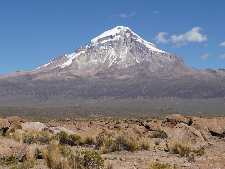 Forberedelser i La Paz I La Paz fikset jeg og Nicolas en meget billig deal på en turistvan som likevel skulle hente en gruppe fra Sajama. Godt subsidiert av denne gruppen, betalte vi derfor bare 150 bolivianos (116 NOK) hver for den 5 timer lange kjøreturen fra La Paz til Sajama. Det ville blitt litt billigere å ta buss, men når vi fikk en hel turistvan for oss selv, og i tillegg ble plukket opp direkte fra hotellet i La Paz, var saken biff. Dessuten går det ingen direkte busser mellom La Paz og Sajama, man må nemlig skifte underveis i Patacamaya. Lenker: Alle bilder kan sees her: https://picasaweb.google.com/lyngve/0497Sajama?authuser=0&feat=directlink GPS-track fra turen finnes her: http://www.everytrail.com/view_trip.php?trip_id=1239576 Dag 1 Sjåføren hentet oss på hotellet Cruz de los Andes kl 07:00 som avtalt. Den 5 timer lange kjøreturen gikk over det Bolivianske høylandet, spennende i begynnelsen men ganske ensformig i lengden. Stemningen steg imidlertid betraktelig idet vi kunne skimte Sajama (6542m) i horisonten. Det høyeste fjellet i Bolivia er en stratovulkan og ruver enormt fra nord ettersom den står så ensomt i det flate terrenget. Vi ankom Sajama landsby ca kl. 12 og der måtte vi betale 30 bolivianos (23 NOK) hver for å komme inn i nasjonalparken. Vi forhørte oss om esel, men ettersom det ikke fantes noen tilgjengelige esler før neste dag, bestemte vi oss for å droppe dette, og heller bære alt på egne rygger. Turistvan'en kjørte oss ytterligere 4 km nordover fra landsbyen, hvor gruppen som hadde subsidiert oss med egen bil, stod og ventet. Derfra bar det for egne føtter de 6 km til Base Camp (4800m). Denne fotturen tok oss mindre enn 2 timer, så vi hadde massevis av tid til å lage lunsj og senere middag i Base Camp. Det var bare en liten gruppe tilstede i Base Camp, men denne gruppen bestående av en italiener og hans guide og kokk hadde ingen planer om å nå toppen ettersom italieneren var veldig sliten etter å ha besteget en annen vulkan i samme området. Senere på kvelden kom en annen guidet gruppe på 3 personer ned igjen fra fjellet, men disse hadde ikke nådd toppen grunnet høydesyke. Dag 2 Det ble en lett start på dagen, først bortover en flat slette, så gradvis oppover mot nordvestryggen. Omtrent halveis begynte slitet med å forsere en lang bakke bestående av løse masser av grus og stein, ikke helt ulikt Aconcagua for de som kjenner det fjellet. Jeg klokket inn i High Camp på 3 timer og 45 minutter, mens Nicolas ble hengende litt etter mot slutten. High Camp (5700m) består av 8-10 plattformer for telt, og ettersom ingen andre var på fjellet kunne vi velge den største og flateste plattformen. Som vi allerede hadde blitt fortalt, var snøen skitten og fæl i High Camp, og derfor ikke så veldig egnet som drikkevann. Vi hadde bært litt ekstra vann fra Base Camp, men langtfra nok til å dekke opp det neste døgnets forbruk av vann. Men jeg gravde et stykke under snøoverflaten, og fikk frem en del snø av brukbar kvalitet. I High Camp var vinden ekstremt sterkt, vi måtte bruke litt ekstra tid på å sette opp teltet og bardunere det grundig. Resten av ettermiddagen og kvelden ble benyttet inne i teltet til snøsmelting og spising. Vi sovnet i 7 tiden om kvelden. Dag 3 Alarmen gikk litt over kl. 2. Det var iskaldt inne i teltet, så vi spiste kjeks, sjokolade og fikk i oss en del vann mens vi ennå var varme og gode inne i soveposene. Deretter fikk vi på oss den omfattende bekledningen beregnet for høye fjell, og var klare til å legge i vei kl. 03:15. Første del gikk bratt oppover løse grus- og steinmasser helt til vi nådde snøfeltet. Her tok vi på oss stegjern og iførte oss tau. Den 100 meter høye og bratte snørenna (45-55 grader) gikk enkelt og greit unna, og ettersom det var gode snøforhold i renna slapp vi å plassere ut forankringer. Den korte ryggen videre mot breen, var ganske eksponert men uten tekniske vanskeligheter. Så snart vi kom ut på breen, skjønte vi at den var dekket av penitentes (20-40 cm høye) i den nederste delen. Tauet hektet seg opp hele tiden, og vi bestemte oss raskt for at tauet måtte av. Penitentes utgjorde et stort problem de første 200-300 høydemetrene på breen, men etter dette forsvant de gradvis og det ble langt enklere å gå. Soloppgangen var helt magisk og jeg fikk tatt noen bilder selv om fingrene ble ubehagelig frosne av å håndtere kameraet. Den lange nordvestryggen var konstant mellom 30 og 40 grader bratt, og ble en ganske drøy affære. Men det flatet ut mot toppen og etter 5 timer nådde jeg det høyeste punktet på det store og flate topp platået. Det var helt vindstille på toppen, noe som visstnok skal være en meget sjelden affære på Sajama. Dessuten varmet solen ganske godt. Det var derfor helt uproblematisk å vente på Nicolas som dukket opp nesten 1 time senere. Sammen feiret vi nok en vellykket bestigning, før vi begynte nedover igjen. Nedstigningen gikk kjemperaskt helt til vi nådde det store feltet med penitentes. Her gikk det ekstremt sent, særlig for Nicolas sin del som var begynt å bli dyktig sliten. Jeg måtte vente nesten en hel time ved enden av breen, før Nicolas ankom og vi kunne iføre oss tauet igjen for å begynne på den korte og utsatte ryggen samt snørennen ned igjen. Snøforholdene i rennen var forsatt gode, så vi trengte ingen rapeller. Vi var tilbake i High Camp nesten 3.5 time etter at vi startet nedstigningen. Vi tok oss en lengre pause i High Camp, før vi begynte å pakke og ta ned teltet. Nedstigningen til Base Camp gikk kjemperaskt, fordi vi kunne skli nedover grusbakkene i stort tempo. Det gikk ikke mer enn 1 time og et kvarter før vi var tilbake i Base Camp. Uttørstet som vi var, gikk vi direkte bort til vannkilden og drakk rett fra den, uten noe form for rensing. Men vannkilden så veldig sikker ut, det var nesten som å drikke rent kildevann. Vi kunne fortsatt mot Sajama landsby, men vi bestemte oss for å tilbringe natt