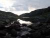 Fylkestoppen i Aust-Agder sto for tur i slutten av juni. Godværet viste seg å være starten på et to uker langt drømmehøytrykk over landet, som jeg dessverre bare i noe grad fikk utnyttet. Kjørte 21.juni til Dalen i Telemark, og fulgte rv 38 en kilometer vestover. Her var det skiltet til Froland. Artig vei langt oppi fjellsida. Betalte 50 kr i bommen ved Froland, og fortsatte inn til Strandstøylsdalsvatnet, hvor det var en ganske stor plass å parkere på. Gps-ref: 32V 0428465 6592960 på 773 moh. Jeg overnattet i teltet her. Ingen andre biler eller folk her. (Jeg gikk også hele neste dag uten å treffe på noen i godværet.) Kl 08.00 22.juni la jeg i vei på nordsida av vannet. Det var ganske bløtt og vått hele veien, og jeg mistet stien her og der, men fant den lett igjen med gps-en. Så kom jeg på at jeg hadde glemt kartet med turbeskrivelsen fra wwv! Heldigvis hadde jeg lest den så grundig og studert ruta, og jeg kunne det meste i hodet. Fulgte stien avmerket på kartet innover mot Strandstøylsdalen. Det som er tegnet inn som digre myrer, var store gressflater, noe våte, ja, men ikke det jeg ville kalt myr…Greit å gå her. Turbeskrivelsen nevnte noe om Sæbyggjebrokka – dette navnet finnes ikke på mine gps-kart, men jeg antok det var dalen som gikk i sørvestlig retning, opp og sør for høyde 1372 meter – siden den seinere nevnte at man gikk over denne. Men jeg fant ingen sti som tok av noe sted inne i Strandstøylsdalen! Jeg måtte vade elva som kom fra nord, på grunn av stor vannføring. Det var egentlig bare behagelig i det varme været, og det var flere steder det så ut til å være greit å vade. Jeg krysset elva like ved en seter (Fiskarmo). Så kjørte jeg på bratt oppover i bjørke- og vierkrattet et stykke på nordsiden av bekken som kommer ned det jeg antar er Sæbyggjebrokka. I ettertid viser det seg at jeg bare var 20-30 meter unna å oppdage stien! I stedet oppdaget jeg en elg, som overrasket langet ut oppover i brattskogen. Det var varmt og fuktig, og et sant pes å gå oppover i grov ur og krattskog! Siden jeg ikke fant noen sti og trodde jeg var på ville veier, svingte jeg nå heller mer og mer nordover på 1000 meter, og krysset bekken som renner rett østover høyt oppe i fjellsida, før jeg gikk bratt opp (vestover). Jeg kom nå på snaufjellet rundt en halv kilometer nordøst for høyde 1372, og fortsatte rimelig rett vestover 1,5 km, delvis på snø, og inn i en liten dal. Passerte så det avlange vannet like under 1400-meterskoten, og fortsatte lett opp til toppen. 3,5 time. Jeg nøt utsikten og finværet, fotograferte og koste meg litt, før jeg returnerte med andre planer for nedturen: Alt annet enn bjørkekrattet! Først fulgte jeg fjellryggen rett østover ca 1 km på NORDSIA og 60-80 høydemeter over det avlange vannet, som jeg tidligere hadde gått sør for. Litt opp og ned over ryggen, men bedre enn ura nede i dalen. Kom ned i østenden av nevnte vann, og fulgte så egne spor i dalen ca 300 meter østover, før jeg svingte rett sørover og bratt opp fjellsida, til 1440 meter omtrent. Tok så peiling på høyde 1372, og ville prøve å finne stien herfra. På denne høyden fant jeg ingen sti, men så tydelig det øst-vest-gående tråkket 200 høydemeter nedenfor i sør. Det var styggbratt rett ned dit, men ved å gjøre en sving mot vest, gikk det veldig greit. Vel nede på tydelig sti, trodde jeg det bare var å knalle i vei – men plutselig var stien borte vekk. Jeg fortsatte en stund i samme retning, og forberedte meg på bjørkekratt igjen, da den plutselig dukket opp. Nå var jeg mer på vakt, og fulgte stien gjennom krattet, etter hvert forbi en kjempediger stein, og helt ned til den flomstore elva nede i Strandstøylsdalen. Det hadde gått fortere ned gjennom krattet enn jeg hadde våget å håpe på for litt siden! Fra nå var det en vading, og så grei skuring tilbake. 6,5 timer totalt. Viktige tips om stien opp Sæbyggjebrokka: Fra hovedstien til Strandstøylsdalen; kryss elva ved dette gps-punktet på 781 meter: 32V 0426024 6592390!!! Herfra er stien (som slett ikke alltid er like tydelig, særlig ikke over våte partier) svakt rødmerket – oftest på trær i nedre del. Noen spredte varder. Etter drøyt 100 meter over en stor bekk. Så slynger stien seg i hovedtrekk like nord og oppover stort sett langsmed elva som renner ned Sæbyggjebrokka. Man kan gå av stien når man er omtrent rett sør for punkt 1372 (200 hm lavere) – og så gjøre en sving vestover og opp på fjellryggen. Man bør nok ha grei sikt, for særlig mot øst er det styggbratte stup man neppe kommer opp. En del glatte sva er greie å omgå ved kryssing på gresshyller. Ved å holde lenger vest, blir det enda lettere å ta seg opp. Kanskje er det enda lettere å fortsette inn og opp dalen som går nord for Slækja (1367m), og så svinge av rett nordover til topps? Ganske sikker på at denne toppen er lettest og kortest fra øst. Neste dag sto Rogalands høyeste for tur; Vassdalsegga.