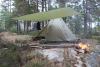 I motsetning til veldig mange av de andre flotte turrapportene fra fjelltoppene våre her er nok jeg mer tilhenger av skogen og "lavlandet", og tenkte å gi en liten rapport fra min siste tur. Turen starter fra Dølemo i Aust-Agder. Der finner jeg stien Turistforeningen har merket til Skarsvassbu, og velger å følge denne. Har ingen andre planer enn å gå så lenge jeg gidder og bare slå leir der jeg måtte finne det hensiktsmessig. Terrenget er fint å gå i, og jeg har ikke gått mer enn ca 1 kilometer før en stor fiskeørn kommer glidende over tretoppene! Fantastisk syn, og villmarksfølelsen kommer med en gang! Kommer etterhvert frem til Stemtjørn, og siden både ben og skuldre er blitt litt møre etter 5 kilometer i varierende skogsterreng velger jeg å slå leir her. Starter vedsanking umiddelbart, men etter vedvarende regn på sørlandet i så og si hele november er det meste ganske gjennomvått. Finner heldigvis noe god tyrived, og med et godt bål igang i bakgrunnen settes teltet opp i skumringen. Med kvelden kommer mørket og tåken sigende, og jeg storkoser meg ved bålet med litt mat, kaffe og en "blodfortynnende". Kryper etterhvert inn i teltet, her er det nå rundt null grader og ganske rått. Fyrer igang primusen, og vips så er det 15 +, tørt og behagelig! Resten av kvelden består av knekkebrød til kveldsmat og sosialt samvær med min gode følgesvenn på denne turen: nytt Pondus Våkner i 8 tiden lørdag morgen, og en rask kikk ut av teltet viser at det fremdeles er litt tåke og fuktig vær (det regnet litt på natten), men det kan se ut som at solen vil bryte igjennom. Etter en rask frokost og litt kaffe i teltet vil jeg prøve fiskelykken. Vet det er litt sent, men hvorfor ikke prøve? Det er en herlig følelse å sitte i vannkanten med meitestanga, akkurat i det solen bryter igjennom over åskanten mot sør!! Det ble ikke noe fisk, men hva betyr det når dagen gir meg sol fra skyfri himmel i nydelige omgivelser!! Jeg sanker mer ved i området, går litt turer for å bli litt kjent, og kjenner at jeg gleder meg til en ny kveldsstund ved bålet. Menyen denne lørdagskvelden består av viltgryte fra forsvarets feltrasjon og en god italiensk rødvin, servert i 2,5 dl pappkartong! Litt luksus må man jo unne seg på tur.. Kvelden og mørket kommer fort siste helg i november, og med klarvær kommer også kulden. Kryper inn i teltet rundt halv åtte, etter en god middag! Tempmåler viser minus 2 i teltet, og igjen fyres det primus. Gjør meg ferdig med Pondus, slukker primusen og blir liggende å bare nyte stillheten og frihetsfølelsen... Sovner tidlig, med et tilfreds smil rundt munnen. Søndag morgen våkner jeg først grytidlig. Klokken er bare halv seks, og jeg kjenner "naturen kaller" som den ofte gjør på morgenen. 0 grader i teltet, og ikke veldig fristende å stå opp. Ok, en kjapp tur ut, la oss få det overstått. Åpner glidelåsen ut til forteltet, her er det grisekaldt! Helvete, jeg bare må ut.. Strekker meg mot glidelåsen til utgangen, kjenner blæra er på bristepunktet. I samme øyeblikk som hjernen registrerer at blæra MÅ tømmes registrerer samme hjerne at glidelåsen på vei ut til friheten er frosset dønn fast.. Ikke tale om å få åpnet den, og situasjonen er nå dramatisk.. i ca 10 sekunder.. etter disse 10 sekundene er det akkurat som om hjerne og blære inngår en avtale om at den beste løsningen er å bare vente. Trykket senkes, og jeg kan bare krype ned i posen igjen, vel vitende om at hjerne og blære har inngått et forlik Et par timer senere er primusen godt igang, glidelåsen tint og åpnet, blæra er tom og fylles opp igjen med god og varm kaffe! I løpet av natten har det vært nede i ca 10 minus, og Stemtjørn har frosset helt igjen. Isen er faktisk 1 cm tykk. Det er en utrolig god følelse å få oppleve slike endringer i naturen, og få lov til å være tilstede når elementene styrer omgivelsene! Tilfreds pakker jeg etterhvert sammen et islagt telt og begir meg på hjemveien, utrolig fornøyd med å få slike naturopplevelser første søndag i advent