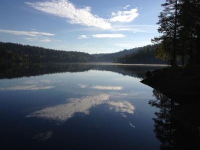 Da var det endelig tid for tur i marka igjen. Etter å ha vært tidlige ute med permisjonssøknad i tre eksemplarer til fruen, kopi til barna og en til arkivskapet, var helgen 6. - 8. september spikret. Fruen la inn et par host, og mumlet noe om "hanglende unger", men gubben bar bestem på at nå, NÅ, skulle han på tur. Planene var lagt, Fjellforum skulle ha septembertreff og flerfoldige personer skulle møtes i marka på lørdag og padling. Jeg ville ha inn litt ekstra, og la i vei rett fra jobb på fredag. Startsted var Oslo S, med 40 minutters togtid til Hakadal stasjon. Gangstart halv seks om kvelden, målet var Elvann, ca 5 km inn i marka. På vei opp fant jeg frem et par gåstaver jeg hadde funnet i kjelleren. Det snakkes jo så varmt på fremmedlandske blogger om at man skal bruke staver også om sommeren, jeg tenkte dette kunne være en god anledning til å prøve. I tillegg hadde jeg kun med tarp, og stavene kunne jo brukes som støttestenger for tarp hvis nødvendig. Vel fremme ved Elvann. Ikke en sky på himmelen, ikke et vindpust og marka helt for meg selv. Skulle prøve å sette opp tarpen, men det selvprodusert bardunfeste røk (slik REs så innsiktsfullt hadde advart mot i annen post her på forumet). Satte så opp tarpen som presenning for å ha prøvd det. Lørdag, fortsatt helt knall vær. Overrasket over mygg i september, men man skal ikke klage når alt annet stemmer. Gikk sørover fra Elvann over Eriksknatten, passerte Store Hyttetjern og Karlshaug naturreservat. Et område med god sti, men fortsatt bare meg selv og ingen andre på tur utenfor vei. Tenkt det. Nordmarka helt for seg selv en knallfin helg i september. Noen høstfarger hadde såvidt meldt sin ankomst. Måtte gå på, da jeg skulle møte hordene av andre ivrige Fjellforumsbrukere ved Bjørnholt. Jeg la veien om Fløyta, Tømte og Liggern. Mellom Liggern og Gåslungen ble jeg tatt igjen av flere løpere med nummer på magen, Nordmarkstravern ble visst arrangert denne helgen. På Bjørnholt kom turens nedtur. Kun initiativtager og meg selv som skulle overnatte (@tronn) og en til på ettermiddagsbesøk (@hestehov). En slik helg i marka skal du lete lenge etter, lang nese til alle dere som ikke fikk dette med dere... Bjørnsjøen var blikkstille. @tronn hadde skaffet kano og vi kunne legge ut på bøljan blå. Vi fant en øy, hentet @hestehov (som viste seg å være en trivelig fransk jente med utmerkede norskkunnskaper etter to år i landet), og fant oss ett sted for middag. Guinessbokser kan brukes til så mangt, denne funker utmerket som rødspritbrenner. Endelig noe jeg har mekka selv som virker. Natt til søndag ble tilbragt uten tarp eller telt, ikke behov for dette. Søndag morgen var en av de mest fabelaktige jeg har sett på Bjørnsjøen noen gang. Vanskelig å legge til bilder fra dette når man bare har Iphone. Returen gikk til Sognsvann, sjokkfølelse når man dukker ut av skogen og blir omringet av søndagsturfolket som ikke kjenner stienes gleder (og kanskje er ute like mye for å bli sett, som å se). Takk for et bra initiativ @tronn, og et hyggelig bekjentskap.