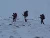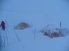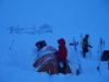 Nok en gang skulle OSI fjell fra Blindern forsøke å komme seg opp på Snøhetta i januar. Også denne gangen var optimismen stor. Men akkurat som i fjor og året før der, ble været dårlig på toppdagen. (Se fjellforumrapporten fra henholdsvis januar 2007 og januar2008) Vi var syv stykken, 5 gutter og 2 jenter, som etter en sen ankomst til Hjerkinn på torsdag, la seg i telt og lot natten komme lemmene til gode. Neste dag var det opp og sprette, tohundreogfemti spensthopp og noen friske stavtak. Plutselig var vi på Snøheim, et sted som egner seg svært godt som kulisse for en oppfølger til Død snø. Ifjor var utgangspunktet Kongsvoll og på grunn av minst én meter med pudder, slet vi noe voldsomt i den første kneika opp gjennom bjørkeskogen. Hjerkinn er rene unnarennet til sammenligning! På Snøheim var det opp med telt, og mens vi skjøv stenger inn i kanalene og plugger ned i den deilig, dype snøen, tenkte vi på distansen vi hadde lagt bak oss og på det faktum at det i år var svært så lite snø, noen steder gikk vi på stein og grus, gresstuster og ymse lyngplanter. Her og der lå en halvmeter, som denne vi plantet teltene våre i, men som sagt, bare her og der. Etter noen sosiale timer i teltet under en tiltagende tåketett himmel, la vi oss, og mens vi sov og drømte om toppen av Snøhetta i vindstille vær under blå himmel og januarsol, surnet været og ble vindfullt med snø. Blåsten bygget snøen opp rundt teltene våre og det var ingen vits i å stå opp, ingen vits i å tenke topp, ikke noe poeng en gang å legge ut på en aldri så liten tur i området. Fra våre telt, så vi såvidt Snøheim og de bygningene vi hadde som nærmeste naboer. Derfor ble det etterhvert slapp babling og alskens sprell i Larsbu, den eneste nødbu i Norge som har varmkabler og vannkoker. Etter å ha kokt vann til den store gullmedaljen og plapret en hel haug med moromøkk, var det tjo og hei i soveposen og inn i drømmeland, men ikke inn i et land som blant annet kunne skilte med en topp kalt Snøhetta, nei, for neste dag stod jo hjemturen på planen, og den var ufravikelig, akkurat som en diktators ambisiøse plan for utryddelse av avvikere og såkalte fiender. Tilbake til Hjerkinn skulle vi. Men først en real omgang med vannkokeren. Vi kokte så mye vann, dvs. smeltet så mye snø, at det så ut som sommer rundt Snøheim. Det sier ikke lite om både vår iver og denne vannkokerens ufattelige volum og umulige watt. Hjemover gikk turen, og det var herlig, slakt nedover nesten helt til Hjerkinn, styresnø og skare. En vidunderlig dag i fjellet, nesten så bra den kan bli på denne årstiden uten særlig sol. Heller ikke Snøhetta var særlig fremme, den lå innhyllet i frostrøyk, og for tredje året på rad, fikk vi ikke en gang se et omriss av dette stolte fjell, som en gang ble trodd å være Norges høyeste. På gjensyn, o Dronning!