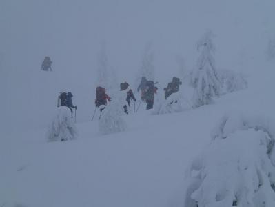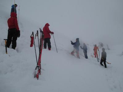Oh well, ikke alle her inne på fjellforum er superdrevne, noen av oss trenger faktisk litt støtte og trygghet i å gå sammen med andre av og til (les: for det meste, i alle fall om vinteren). Når DOT inviterer til snøhuletur på Vegglifjell som for en gangs skyld ikke bare er for ungdommen, der det bare å henge seg på. Jeg synes jo det er kjett at alt det ekstra morsomme bare er for tenåringene. Skal ikke tredveåringer få grave snøhule?? Joda, denne helgen skulle de. Faren var stor for at det ikke ble tur, da vi var for få påmeldte, men jaggu fikk ikke turleder med seg storebroren sin og da var vi mange nok. Gruppen møttes på Veggli og kjørte derfra i samlet flokk til skisenteret. På med sekker og ski. Med _litt_ for tøff arbeidssesong denne vinteren i kombinasjon med begredelig vintervær, var dette første tur med ski på bena for sesongen. Hva er vel da bedre enn å slenge en 13-14 kg på ryggen i tillegg.. Første utfordring er smøring.. Den første som kommer med forslag vinner og alle smører skiene med det samme. Det spørs vel om det er like lurt bestandig.. Og la meg bare legge til at stålkanter er skarpe saker; plutselig stakk det litt men jeg tenkte ikke mere over saken, så stakk det litt til og blodet rant nedover hånden. Da får man jo testet førstehjelpsutstyret også - og jeg hadde bare sett at det lå en pakke med plaster i sekken og var fornøyd med det. Såklart var dette meterplaster og jeg hadde ikke saks. Heldigvis fungerer tidligere nevnte stålkant perfekt for kutting av meterplaster.. Men, turen! Sikten var rimelig liten, og vi ble anbefalt å gå opp dalen fremfor å ta skiheisen opp på toppen og finne kvistingen der. Som sagt så gjort, en kort tur på 4,5 km og vi var fremme ved en ikke altfor kald Daggrø. Her ble en liten lunsj inntatt før vi tuslet oss bort til skavlen hvor vi skulle grave. Med åtte personer på tur ble det avgjort at vi skulle ha to snøhuler. Den ene gruppen startet med to innganger, lagde en brisk og tettet igjen den ene inngangen Dette førte til en lav inngang hvor man ikke kunne stå oppreist og at alle lå på rekke og rad på brisken. På den måten at alle måtte klatre over hverandre skulle de ut eller inn. Gruppen jeg var på hadde også turens høyeste medlem om bedyret at det var viktig med god takhøyde for å stå oppreist, så det ble det. I tillegg til en dobbelbrisk for to personer på ene siden og enkelbrisk på den andre. Total gravetid var om lag fire timer, ca 12 timesverk. God rotasjon og bytte av arbeidsoppgaver gjorde at vi var effektive og hadde det fantastisk morsomt mens vi holdt på! Jeg skal heller ikke legge skjul på at det er ganske så deilig å kunne komme inn på ei hytte og spise middag, samt å ha utedo. Litt luksus kan man jo ha på snøhuletur - hehe En god natts søvn er upåklagelig, og dette var helt herlig. Jeg sover med vinduet åpent på soverommet hele året, men her i hulen ble det endelig kaldt nok. Det beste var jo at neste morgen var det ingen som omtrent var våknet før klokken var ni! I og med at det var omtrent nulltemperatur ute var vi ikke så nøye med å lage dyp inngang, så det var ingen fare for manko på oksygen. Etter våkning og sjokoladefrokost på sengen (snarere _i_ sengen), gikk vi over til hytta for å nyte frokost. Veien tilbake til Vegglifjell skisenter ble litt mer utfordrende enn først antatt, da kvistene viste seg meget vanskelige å se. De er lenger fra hverandre enn på vidda som jeg er vant med, og bare en pinne, ikke kvist. Men, vi kom oss ned og til bilene og kjørte hvert til vårt. Noen lokallag av DNT har sånne fellesturer - som ikke nødvendigvis er de dyre turene med påmelding langt i forveien mm, men som rett og slett bare er folk som vil på tur og gjør det sammen. Det liker jeg. og får man noen nye venner med det samme så var jo alt bare gull. For de som er interessert - jeg sov i aklima langbokser og ullnettinggenser samt tynt lag ullundertøy i tillegg. Tynn ullhals og lue. 20 år gammel Tyin tresesongers og Mammut liggeunderlag.