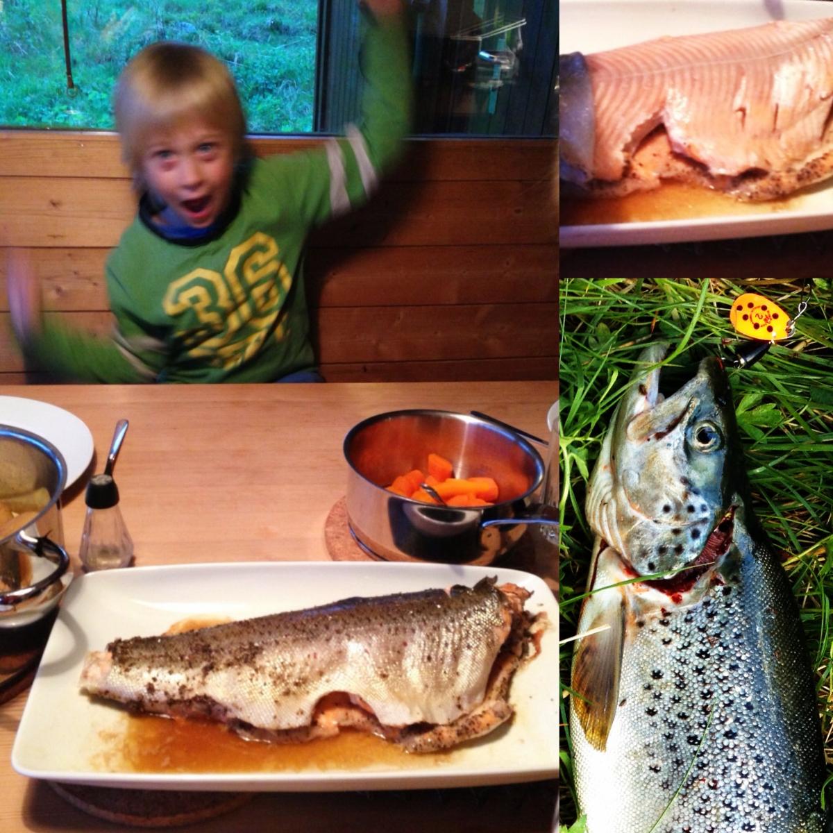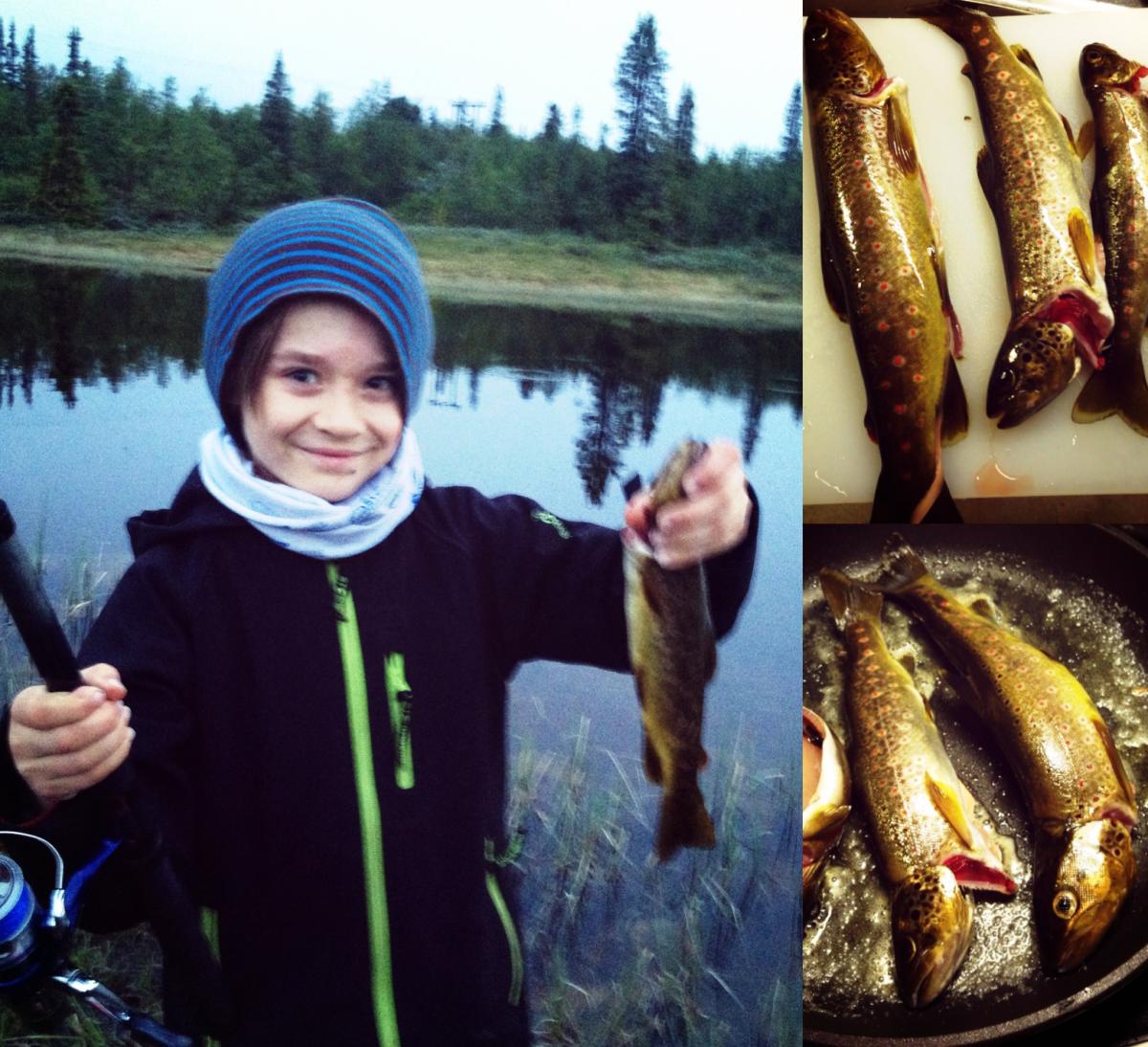 Åh, som det synger oppå fjellet. Vinden plystrer inn i mitt sinn, og jeg traver opp, opp, over bekkefar og berg. Jeg uler! Det er i slutten av juni. Regnet vil ikke gi seg helt. Vi har vært her i traktene nordvest for Ål i en ukes tid, og jeg har brutt meg ut av hytta for en tur utpå ettermiddagen. Målet er et vann jeg har sett på kartet. Det ligger på andre siden av fjellet. Jeg tror det er fisk der. Jeg ringer og bringer. Sett over poteter. Hasta la vista. Myrpyttene skvetter. Jeg klyver oppover lia, skuer mot fjellet. Myser mot sola som et øyeblikk blinker tilbake mellom skyene. Under meg ligger et landskap jeg begynner å bli kjent med: Tjernet hvor begge guttene fikk føle på fiskefeberen i går kveld, speilblankt mellom fjellbjørk og mygg, fullt av sprellende steikeørret. Noen kilometer mot sørøst; bekken vi krysset dagen i forveien. Den smakte så friskt og godt at vi måtte stoppe og slurpe flere ganger på turen oppover lia, så godt at det skumret før vi kom hjem, og da vi skimtet hytteveggen løp guttene inn til mamma for å fortelle, klissvåte av lykke. SKÅL, MIN BROR! Smårollingene klarer ikke dy seg når de ser fjellbekken sprudle nedover lia. Den smaker bedre enn brus. FISKELYKKE: Ni år gamle Ask viser stolt fram feriens første ørretfangst, tatt med mark og dupp. Denne kvelden fikk gutten to til også. Og mange, mange myggstikk. Etter en times marsj i godt driv er jeg halvveis til målet. Vinden synger enda høyere her, på toppen av Sangenuten. 1189 moh. Lett å se på lang avstand. Det ruver en mast på den høyeste knausen, en konstant ereksjon av et landemerke, og et ganske populært turmål på vinterstid. Men i dag er det bare ett menneske å se. Meg selv. Jeg tar av lua, tørker svetten. I en turbok kan jeg lese at det var noen andre her for to uker siden, et følge på fem-seks personer. En av dem har tegnet en smiley. «Ut på tur, aldri sur». Jeg ser ned på landskapet, tregrensen, vannene, åsene. Miniatyrhusene som klorer seg fast som små insekter nedover dalsiden. Og mot vest velter fjellene og bergene over skyene, opp på et digert platå. De strekker seg ut mot horisonten. Jeg sjekker med kart og kompass. Blir litt forvirret av nålens misvisning. Går noen meter bortenfor og prøver på nytt. Det funker. Der nede, en god kilometer unna i luftlinje, ligger selve Vannet. Den krokete ringen på kartet som jeg har fundert på helt siden jeg satt foran hyttepeisen på julaften. Med sviende kinn etter skituren. Jeg dagdrømte om sommer. Det knitret da jeg la på en kubbe til. PÅ TOPPEN: Telemasten på toppen av Sangenuten er ikke særlig vakker, men herifra får du et godt skue til Hallingdalen. Og snur du deg rundt, kan du speide utover både Hallingskarvet og Hardangerjøkulen. Et svupp i myr, to klakk mot stein, klyv over lyng med lange bein. Jeg er på vei, i riktig lei, pass deg nå fisken, for her kommer jeg. Fjellfantens enmannsorkester slår takten ned fjellsidene, over knasende tyrirøtter og ei irrgrønn steinrøys hvor det sikler under hellene. Pulsen driver opp tempoet idet jeg får øye på bekken som putrer ut i vannet der fremme. Jeg senker farten litt før landing. Går med rolige steg ned til bredden. Vannet ligger på 1105 moh. Det er ikke trangt om plassen her. Jeg pakker ut stanga, fester en spinner. Hører plasket. Sveiver inn. Venter på smellet. Som ikke kommer. Jeg prøver igjen. Tråler bortover hele langsiden. Krysser bekken. Kaster i vifteformasjon bortover den andre langsiden. Etter litt spaning finner jeg en gammel, gjenglemt markboks. Den har overvintret minst et par sesonger. Det er altså rimelig å anta at det finnes fisk her. Vannet kruser seg. Det blåser opp. Regnet kommer tilbake. Jeg skifter spinner. Trår varsomt. Sikter bak en stein. Drar inn, prøver igjen. På andre siden av steinen nå. Det hjelper ikke. Dette er irriterende. I sommer har jeg prøvd fiskelykken oftere enn på lenge, men på alle disse forsøkene – helt siden april og frem til nå – er det ikke rare resultatet å skryte av: Fiskepinnene vi har fått de siste dagene troner øverst på listen. For øvrig har samtlige fisketurer vært helt og totalt uten hell, vel å merke hvis man ser bort fra selve naturopplevelsen. I mai glapp en sjøørret helt innmed land i skjærgården utenfor Fredrikstad. Den prøvde i hvert fall. Og på et tilfeldig kast i slutten av april, kroket jeg en lat og diger torsk på et fergeleie oppe på Nordmøre. Den snuste på lukten over bølgene og mannet seg opp til et uinspirert plask. Det var nok til at sena sleit, og torskjævelen tok likegodt med seg Møresilda da han stakk. Og her: Ikke ett vak å se. Jeg tvinger meg selv til et par kast til, men konstaterer til slutt at vannet er dødt. Det gjør ikke så mye. Bedre lykke neste gang, ut på tur, aldri sur, osv. URTEHAGEN: Fjellet er goldt over tregrensen, men skjult i lyng og røyser finnes et mylder av fargesprakende fjellblomster. Disse to ble knipset med mobilkameraet på veien opp til Sangenuten. Planten til venstre må vel være rosenrot. En gjenganger fra fjell til fjære, og dessuten en plante som ifølge det Store Internettet har vært i folkemedisinen helt siden vikingtiden. Enkelte nettsider vil ha det til at den også har en oppkvikkende virkning på sexlivet. Planten til høyre er jeg usikker på. Har googlet litt, og ser den ligner på Skogstorknebb, men samtidig er vel denne litt mer hårete? Hårete Skogstorknebb. Jeg pakker sammen sakene. Tusler opp på en kolle. Her blir jeg sittende å speide utover fjellene og åsene nedenfor. Jeg super en kaffeskvett. Rundt omkring ligger flere vann og lokker. Heldig er den som har god tid, telt i sekken og godt, gammeldags fiskebett. Jeg drømmer. Klokka går. Telefonen ringer. Min elskede kvitrer. - Fikk du fisk? Jeg tenkte å sette over potetene. (Håp i stemmen) - Nei (litt flau). Det er helt dødt her (som alltid, fanden heller). Men det har vært en deilig tur (hør-hør, han snakker sant n