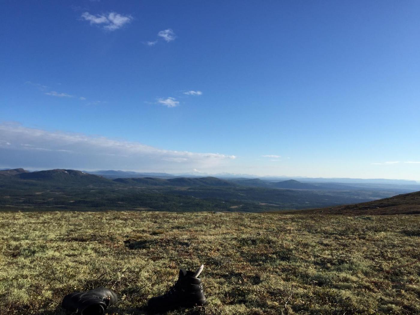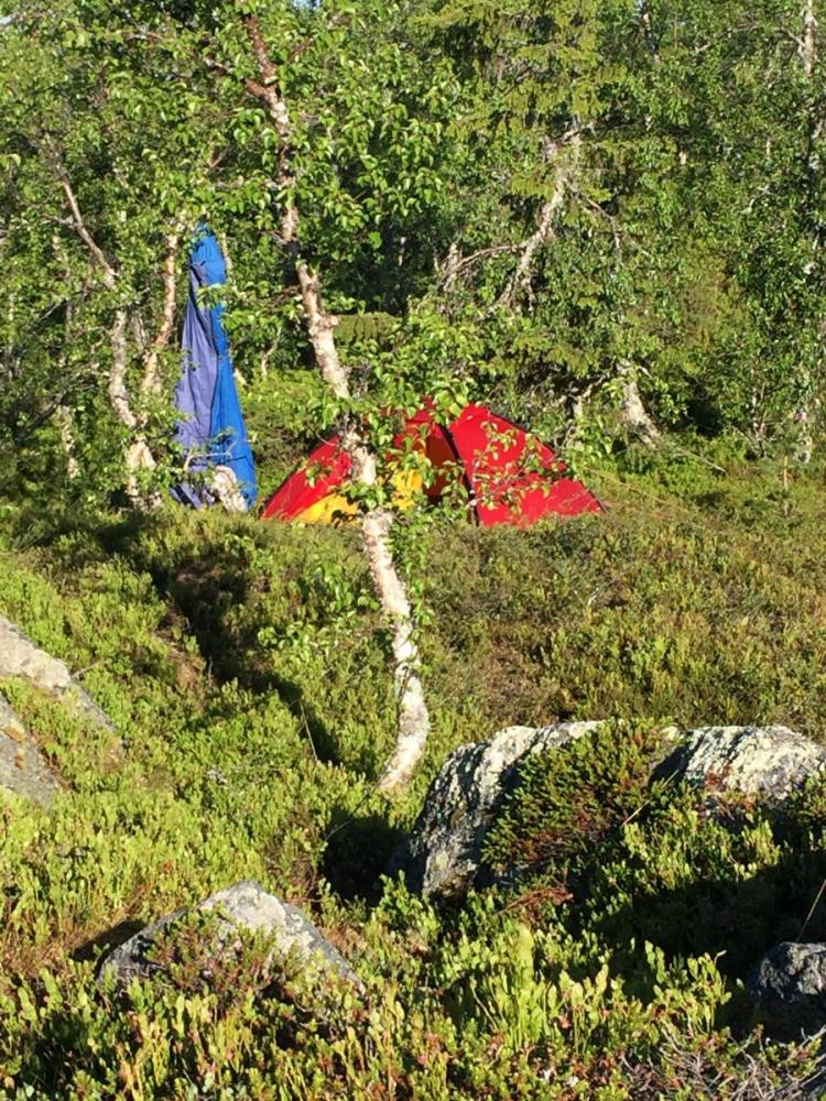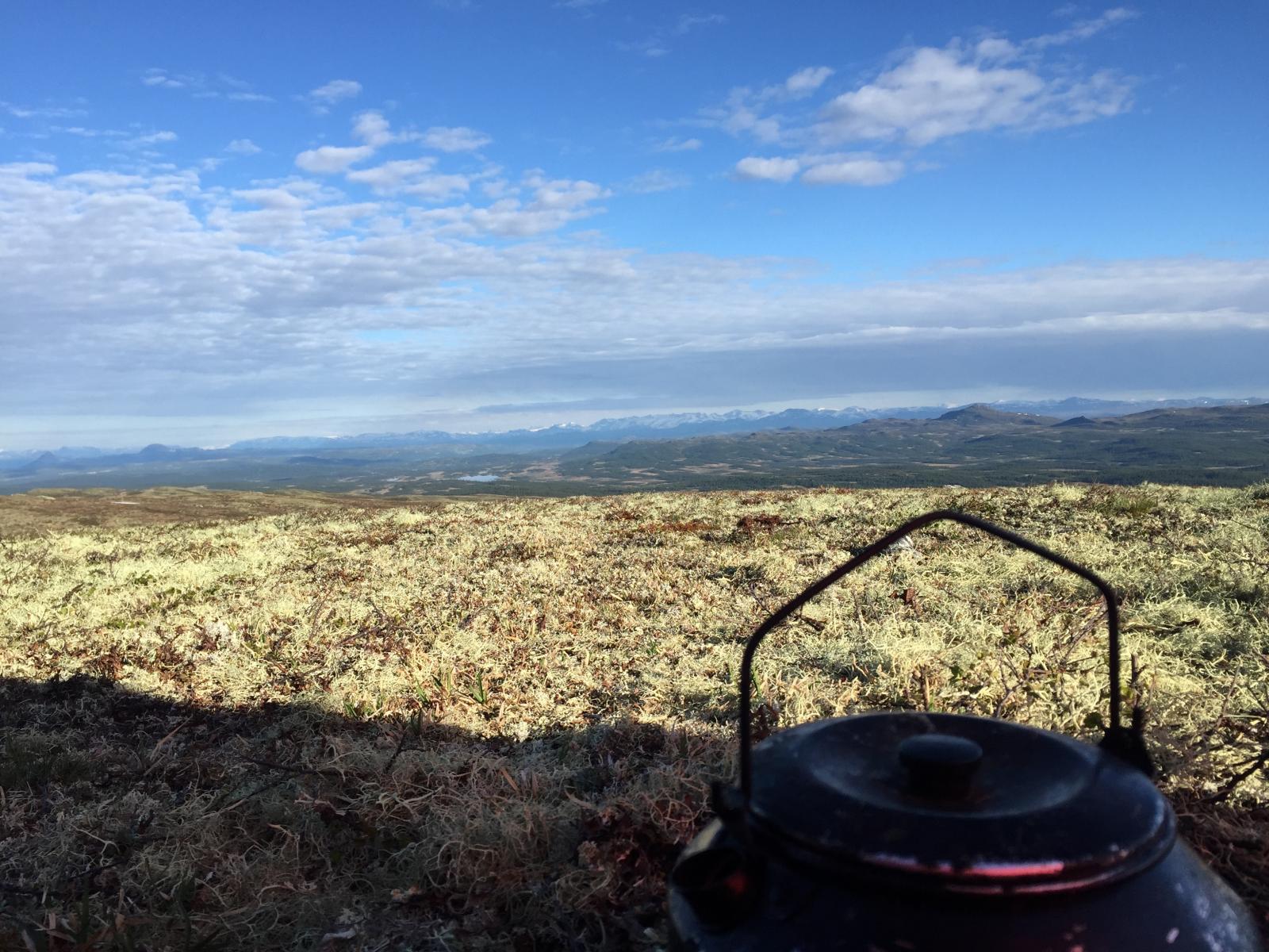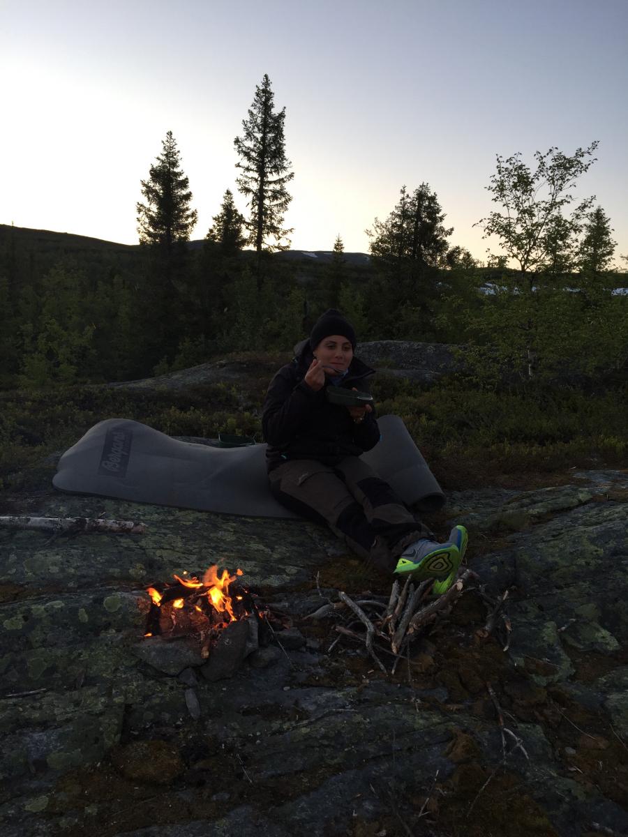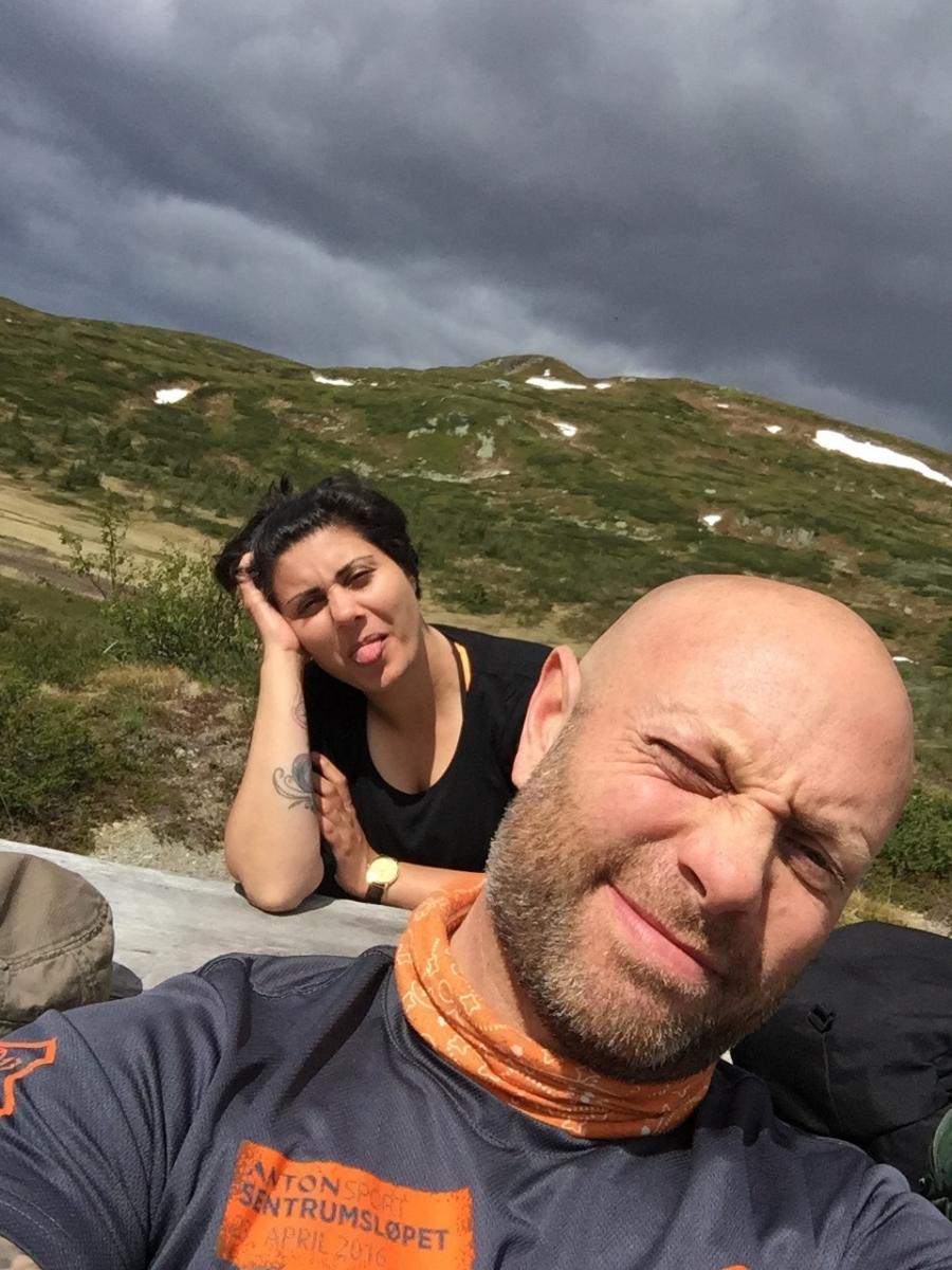 Vi, altså Farah Fjellfarer og jeg hadde snakket om å dra på tur så fort vi fikk fri, men ikke hvor vi skulle. Så onsdagskvelden satt vi å skrev med hverandre på nett og snakket om hvor vi skulle dra. Forslag som Synnfjell/Huldreheimen, Jotunheimstien, Finnskogleden og Nordmarka kom opp, og valget falt på førstnevnte da vi begge syntes dette området så og hørtes spennende ut. Undertegnende hadde kun vært på en kort skitur i dårlig vær på Synnfjell tidligere, så erfaringen med området var lik null – og desto mer spennende. Vel, vi snakket litt på tlf om hva vi skulle ta med av både utstyr, mat og klær – pakket sekken og dro i vei fredags ettermiddag. Det vil si - jeg hoppet på toget hun allerede satt på og sammen ankom vi Gjøvik, videre tok vi bussen derfra til Fagerlund som er siste stopp, og som forøvrig var litt av ei ”mjælkerute”. Fra Fagerlund til Nørstelien landhandel (hvor vi hadde en avtale om å kjøpe et kart over området) fikk vi skyss av en lokal bygdegutt mot en hundrings. Fra Nørstelia og inn til Hugulia bar det til fots, med sekken full av mat og alt annet både nødvendig og unødvendig ræl man drar med seg på tur, så sekkene kjentes på begges rygg. Etter et par timers vandring på vei og noe sti bestemte vi oss for at det var nok for i dag og begynte å lete etter en plass å slå leir da vi fikk øye på en gapahuk og satte kursen mot den, der oppdaget vi til vår store skuffelse at den var innredet med bord og benker og ikke egnet for overnatting, så det bar et stykke videre. Skuffelsen skulle derimot bli kortvarig da vi bare etter noen hundre meter oppdaget et skilt hvor det sto ”utsikten”. Jeg satt fra meg sekken og stakk avgårde på en kjapp rekognoseringsrunde og fant beliggenheten meget attraktiv, etter en kort redegjørelse for hva jeg fant ut, ble det bestemt av Farah Fjellfarer og måsabjønnen at dette ble plassen vår for natten. På den høyden var det imidlertid ikke noe vann så teltet som var pakket i en åtte liters vanntett pakkpose ble stappet ned i sekken og posen ble brukt som vannbøtte, noe som fungerer veldig godt. Teltet ble satt opp, som forøvrig er et Hilleberg unna og veldig trangt for to, og bålet fyrt. Middagen denne kvelden var en form for lapskaus, dvs betasuppe med spekeskinke jevnet med potetstappe – noe som smaker veldig godt, og metter likeså. Etter et par timer med bålfyring og varm drikke ble teltet og soveposer inntatt. Med en sekk i fotenden og en som pute sovnet vi begge, og hadde en ok natt til tross for at Farah Fjellfarer frøs litt i sin nyinnkjøpte North Face cat´s meow sovepose. Det at hun frøs skyldtes vel det at hun lå litt nærme teltduken og fikk det kalde draget fra glippa etter duken som var rullet opp for maksimal ventilasjon, enn det at soveposen er for dårlig. Dag to våknet vi til et fantastisk vær, rettere sagt undertegnede våknet i 05:30 draget, strakk armen ut av åpninga på teltet og fikk i gang primusen. Etter noen minutter var kaffen klar og det ble en god start der jeg lå i posen og drakk kaffe og hørte på fugla som kvitret. Etter en drøy time sto måsabjønnen opp, mens Farah Fjellfarer ble liggende og dra seg litt til. Til hvilken utsikt jeg sto opp til, ja jeg visste at det var en fantastisk utsikt, men nå når lyset var riktig og været klart, kom den til sin fulle rett. Wow er rett og slett ordet. Dag to startet med den obligatoriske havregrøtblandinga som består av 100g havregryn, 1 toppet ss tørrmelk, 1 ss sukker, 1-2 ts kanel samt litt rosiner. Etter en myk start bar det så i vei, målet for dagen var todelt, første stopp var Høgkampvatnet, så skulle Spåtind bestiges. Vi fulgte rødmerkinga til DNT og labbet avgårde. Bratt var det og det kjentes både i rumpe, lår og legger. Etter et par pitstopper underveis for litt påfyll av vått og tørt kom vi opp til dagens første mål – Høgkampvatnet. Det ble sagt at det skulle være godt fiske der, noe vi ikke merket stort til, derimot var det vatnet som ble den lykkelige vinner av en møresilda 18g sluk. Ved Høgkampvatnet står det en koie som kan brukes av alle, det er en liten koie med to stk brisker og et par slitte madrasser. Koia bærer preg av å være godt brukt da veggene der er nedtegnet av både navn og andre festligheter av de som har vært der opp i gjennom. Tidligste signatur vi mener å huske var i fra 1973 og frem til vår egen kom på veggen, kunne jo ikke la være vi heller. Farah Fjellfarer ville overnatte der, noe jeg sa meg uenig i da jeg ville opp og over Spåtind og til en plass på andre siden vi hadde sett oss ut tidligere. Vi trasket videre og på vei opp traff vi på et skikkelig grisevær med vind og hagl, kanskje vi skulle blitt i koia likevel tenkte jeg mens vi slepte oss opp. På toppen av Spåtind var ikke været noe bedre, vi stoppet og pustet før vi begynte nedstigninga mot vannet som ikke har noe navn på kartet. Men et fint lite tjern med klart og friskt vann er det. Været lettet litt på vei ned og vinden roet seg. Vi fant oss en leirplass og slo opp teltet, passet på og ikke rulle opp duken denne gang, ville jo ikke at matriarken skulle fryse denne natta også. Middagen denne aftenen var det Fjellfareren som sto for – stekt oksepølse med potetstappe hvilket smakte utsøkt. Så etter litt varmt å drikke og småprat var det dags, eller rettere sagt kvelds for å krype i posen. Vi gjorde som kvelden før, krøp sammen og sovnet. Om utsikten og været var fantastisk morgenen før var denne om mulig enda bedre. Vi hadde slått leir på et lite platå og da vi dro ned glidelåsen på teltet og tittet ut ble man bare stille i beundring over hvor vakkert mor Norge er. Det var daler med granskog og vann til knauser og fjell med hvitkledde topper, man så i fra Rondane i nord til Valdres og Jotunheimen i vest nord-vest. Begge ble sittende ganske så stille å bare nyte utsikt og morgenkaffen. Da vi dro hadde vi ingen fasttømret plan, men hadde 