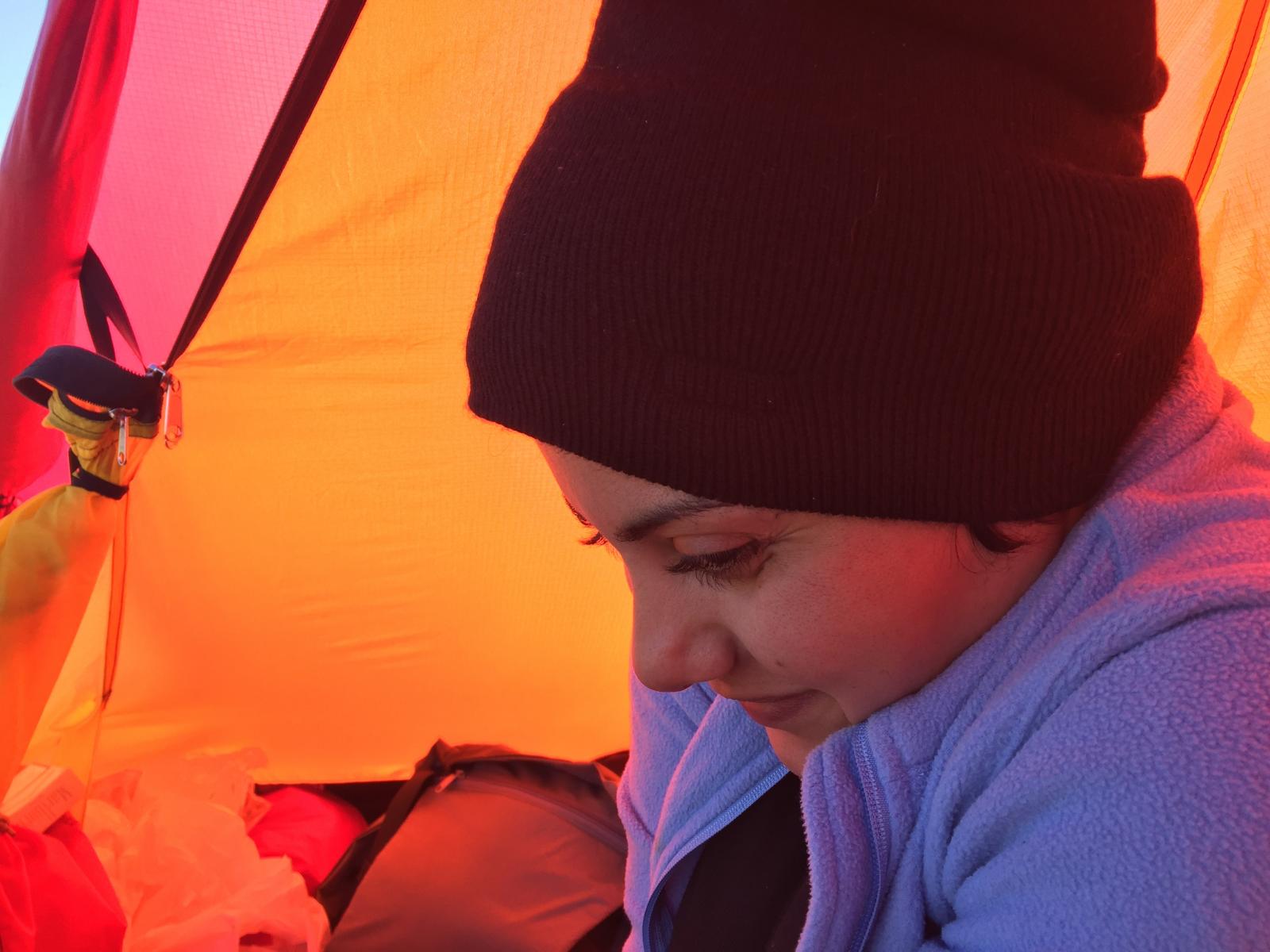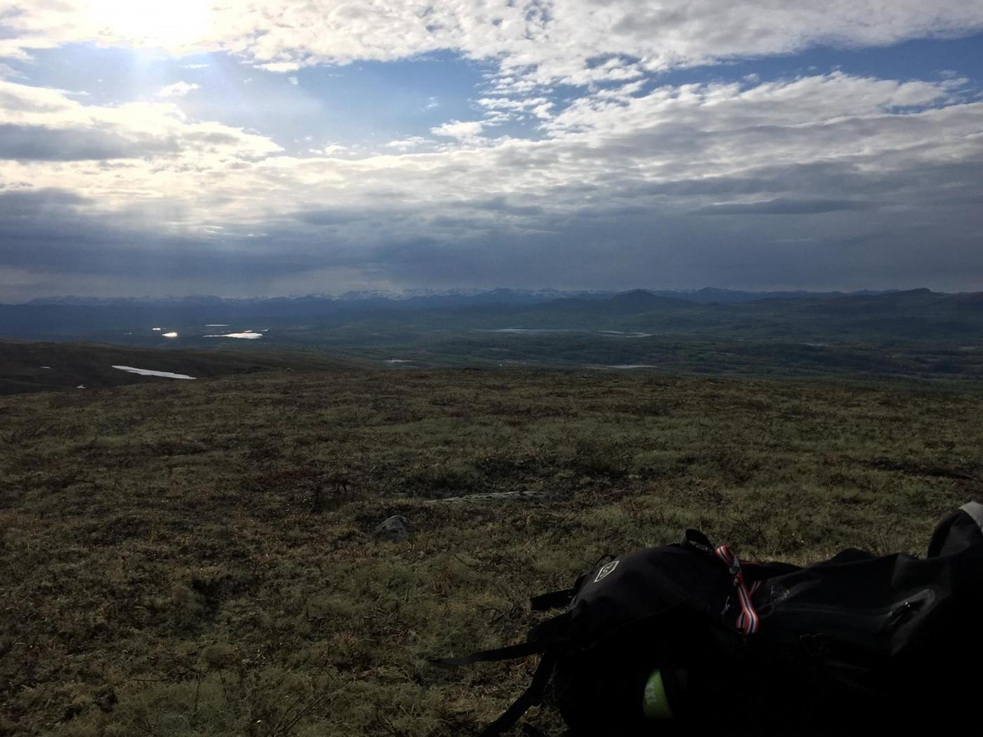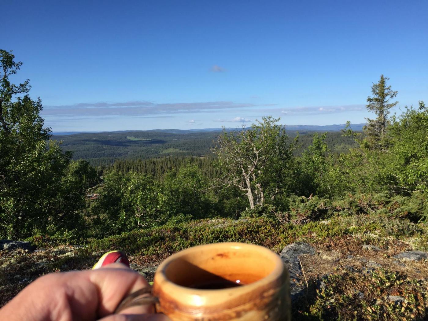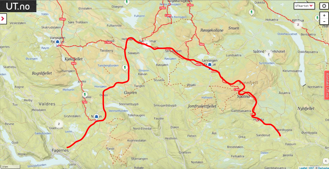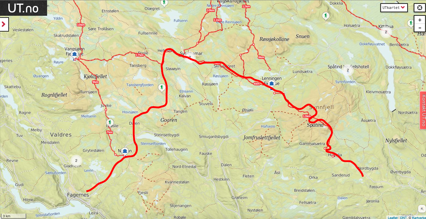 Vi, altså Farah Fjellfarer og jeg hadde snakket om å dra på tur så fort vi fikk fri, men ikke hvor vi skulle. Så onsdagskvelden satt vi å skrev med hverandre på nett og snakket om hvor vi skulle dra. Forslag som Synnfjell/Huldreheimen, Jotunheimstien, Finnskogleden og Nordmarka kom opp, og valget falt på førstnevnte da vi begge syntes dette området så og hørtes spennende ut. Undertegnende hadde kun vært på en kort skitur i dårlig vær på Synnfjell tidligere, så erfaringen med området var lik null – og desto mer spennende. Vel, vi snakket litt på tlf om hva vi skulle ta med av både utstyr, mat og klær – pakket sekken og dro i vei fredags ettermiddag. Det vil si - jeg hoppet på toget hun allerede satt på og sammen ankom vi Gjøvik, videre tok vi bussen derfra til Fagerlund som er siste stopp, og som forøvrig var litt av ei ”mjælkerute”. Fra Fagerlund til Nørstelien landhandel (hvor vi hadde en avtale om å kjøpe et kart over området) fikk vi skyss av en lokal bygdegutt mot en hundrings. Fra Nørstelia og inn til Hugulia bar det til fots, med sekken full av mat og alt annet både nødvendig og unødvendig ræl man drar med seg på tur, så sekkene kjentes på begges rygg. Etter et par timers vandring på vei og noe sti bestemte vi oss for at det var nok for i dag og begynte å lete etter en plass å slå leir da vi fikk øye på en gapahuk og satte kursen mot den, der oppdaget vi til vår store skuffelse at den var innredet med bord og benker og ikke egnet for overnatting, så det bar et stykke videre. Skuffelsen skulle derimot bli kortvarig da vi bare etter noen hundre meter oppdaget et skilt hvor det sto ”utsikten”. Jeg satt fra meg sekken og stakk avgårde på en kjapp rekognoseringsrunde og fant beliggenheten meget attraktiv, etter en kort redegjørelse for hva jeg fant ut, ble det bestemt av Farah Fjellfarer og måsabjønnen at dette ble plassen vår for natten. På den høyden var det imidlertid ikke noe vann så teltet som var pakket i en åtte liters vanntett pakkpose ble stappet ned i sekken og posen ble brukt som vannbøtte, noe som fungerer veldig godt. Teltet ble satt opp, som forøvrig er et Hilleberg unna og veldig trangt for to, og bålet fyrt. Middagen denne kvelden var en form for lapskaus, dvs betasuppe med spekeskinke jevnet med potetstappe – noe som smaker veldig godt, og metter likeså. Etter et par timer med bålfyring og varm drikke ble teltet og soveposer inntatt. Med en sekk i fotenden og en som pute sovnet vi begge, og hadde en ok natt til tross for at Farah Fjellfarer frøs litt i sin nyinnkjøpte North Face cat´s meow sovepose. Det at hun frøs skyldtes vel det at hun lå litt nærme teltduken og fikk det kalde draget fra glippa etter duken som var rullet opp for maksimal ventilasjon, enn det at soveposen er for dårlig. Dag to våknet vi til et fantastisk vær, rettere sagt undertegnede våknet i 05:30 draget, strakk armen ut av åpninga på teltet og fikk i gang primusen. Etter noen minutter var kaffen klar og det ble en god start der jeg lå i posen og drakk kaffe og hørte på fugla som kvitret. Etter en drøy time sto måsabjønnen opp, mens Farah Fjellfarer ble liggende og dra seg litt til. Til hvilken utsikt jeg sto opp til, ja jeg visste at det var en fantastisk utsikt, men nå når lyset var riktig og været klart, kom den til sin fulle rett. Wow er rett og slett ordet. Dag to startet med den obligatoriske havregrøtblandinga som består av 100g havregryn, 1 toppet ss tørrmelk, 1 ss sukker, 1-2 ts kanel samt litt rosiner. Etter en myk start bar det så i vei, målet for dagen var todelt, første stopp var Høgkampvatnet, så skulle Spåtind bestiges. Vi fulgte rødmerkinga til DNT og labbet avgårde. Bratt var det og det kjentes både i rumpe, lår og legger. Etter et par pitstopper underveis for litt påfyll av vått og tørt kom vi opp til dagens første mål – Høgkampvatnet. Det ble sagt at det skulle være godt fiske der, noe vi ikke merket stort til, derimot var det vatnet som ble den lykkelige vinner av en møresilda 18g sluk. Ved Høgkampvatnet står det en koie som kan brukes av alle, det er en liten koie med to stk brisker og et par slitte madrasser. Koia bærer preg av å være godt brukt da veggene der er nedtegnet av både navn og andre festligheter av de som har vært der opp i gjennom. Tidligste signatur vi mener å huske var i fra 1973 og frem til vår egen kom på veggen, kunne jo ikke la være vi heller. Farah Fjellfarer ville overnatte der, noe jeg sa meg uenig i da jeg ville opp og over Spåtind og til en plass på andre siden vi hadde sett oss ut tidligere. Vi trasket videre og på vei opp traff vi på et skikkelig grisevær med vind og hagl, kanskje vi skulle blitt i koia likevel tenkte jeg mens vi slepte oss opp. På toppen av Spåtind var ikke været noe bedre, vi stoppet og pustet før vi begynte nedstigninga mot vannet som ikke har noe navn på kartet. Men et fint lite tjern med klart og friskt vann er det. Været lettet litt på vei ned og vinden roet seg. Vi fant oss en leirplass og slo opp teltet, passet på og ikke rulle opp duken denne gang, ville jo ikke at matriarken skulle fryse denne natta også. Middagen denne aftenen var det Fjellfareren som sto for – stekt oksepølse med potetstappe hvilket smakte utsøkt. Så etter litt varmt å drikke og småprat var det dags, eller rettere sagt kvelds for å krype i posen. Vi gjorde som kvelden før, krøp sammen og sovnet. Om utsikten og været var fantastisk morgenen før var denne om mulig enda bedre. Vi hadde slått leir på et lite platå og da vi dro ned glidelåsen på teltet og tittet ut ble man bare stille i beundring over hvor vakkert mor Norge er. Det var daler med granskog og vann til knauser og fjell med hvitkledde topper, man så i fra Rondane i nord til Valdres og Jotunheimen i vest nord-vest. Begge ble sittende ganske så stille å bare nyte utsikt og morgenkaffen. Da vi dro hadde vi ingen fasttømret plan, men hadde 
