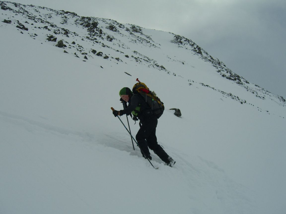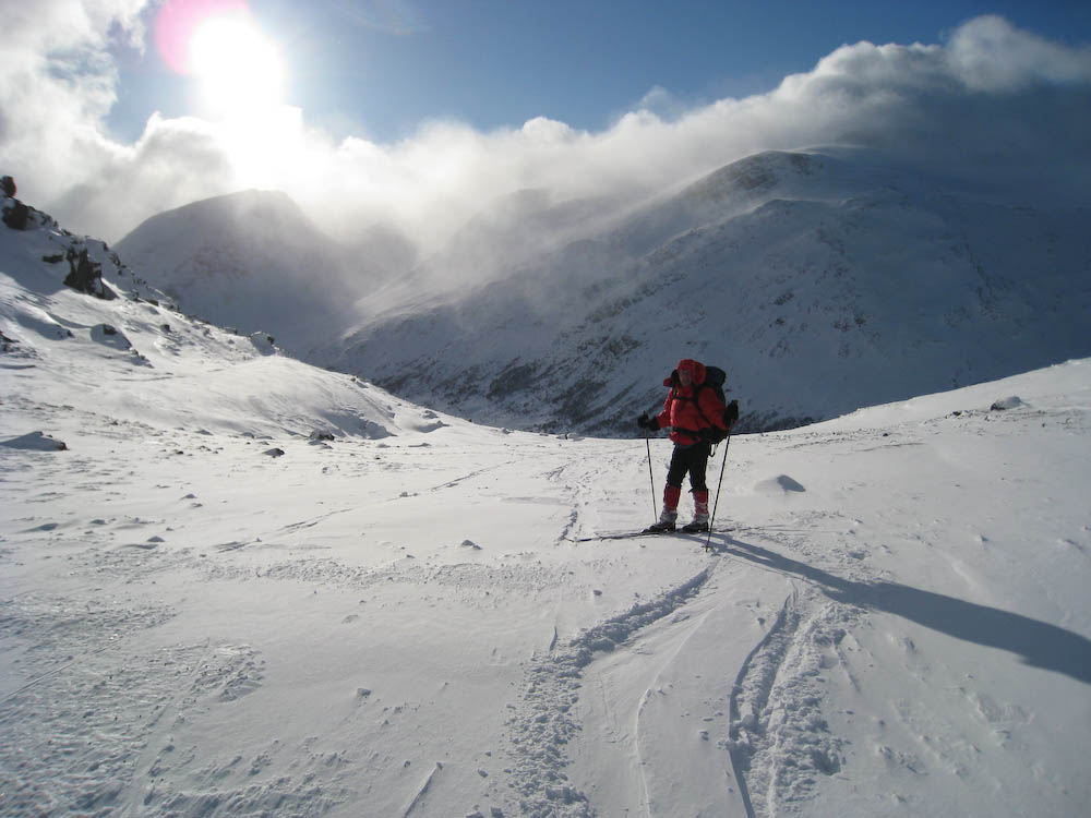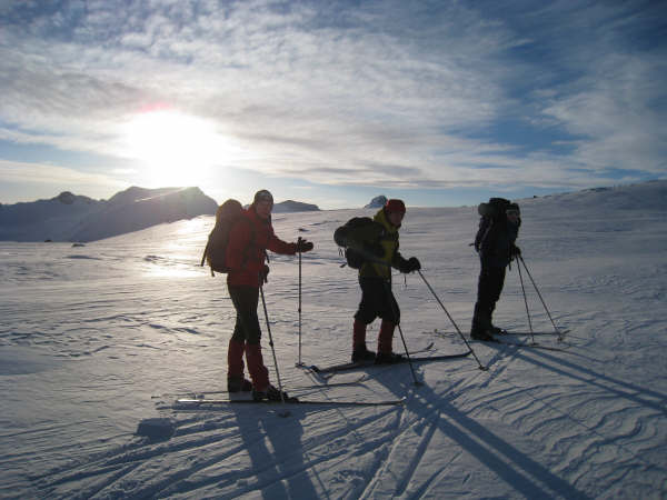 Hei folkens Torsdag 5 april dro Bjørn og jeg til Spiterstulen, spente på pulk og labbet i vei til foten av Heilstugubreen. På venstre side fant vi ly for vinden og slo opp teltet. Real turmat sto på menyen, men da vi fant ut at vi hadde kjøpt med feil gassflasker til brenneren ble det Real turmat bladet ut i urte-te og honning fra termosen (?!) Forøvrig var det delilig å ligge dypt nede i soveposen med bok og hodelykt mens vinden ulte over oss. Tissepause midt på natta avslørte stjerneklar himmel - og forventningene til dagen derpå begynte å stige. Vinden ble sterkere jo lengre opp på breen vi kom. Vi hadde grei sikt "mellom kastene" - vi så bl.a de vestre Memurutoppene over oss på venstre side. På toppen av breen skrådde vi over og kom oss opp den siste kneika og opp på sadelen mellom nestsøre og Store Heilstugutind. Her satte vi fra oss skiene og tuslet først opp på Store. Det var enkelt å gå opp - vi hadde knapt bruk for isøks. Utsikten var heller dårlig, og det blåste sterkt. Men jeg har opplevd tettere tåke før, så det var faktisk ikke så verst Nede ved skiene bar det inn i vindsekken til lunsj. Greit å spare neste oppoverbakke til å få varmen i tær og fingre igjen! Ryggen opp til nestsøre var også enkel, men her var det greit med isøks. Litt isete noen steder, men stegjern var overflødig da det var nok av mykere snø rundt som gav oss andre akternativer. Fra toppen var det en fin rygg sørover og flott utsikt mot Store som vi nettopp hadde vært på. Jeg innrømmer det gjerne - jeg er litt pysete på kalde vinterturer. Jeg blir rett og slett gretten når jeg fryser Jeg har ca 10 telt-netter vinterstid hittil. Bjørn har sikkert 150; både fra militæret og på fjellsport-turer. Og han fryser nesten aldri. Han går i tynne handsker når jeg har vindvotter opp til albuene... Jeg tror ikke han var spesielt imponert over meg, men jeg har en ambisjon om å bli flinkere til dette med tiden; både utstyrsmessig og mentalt... Gleder meg til neste vintertur! De blir jo bare bedre og bedre jo mer jeg lærer. Tips: Det var veeeeldig deilig å komme ned til perfekt avkjølt boks-øl i teltet. Først delte vi en. Så så vi på hverandre: Ingen vits i å ha mer enn nødvendig å dra på videre... Der forsvant den andre. Og så forsvant vi nedover til Spiterstulen mens vinden fortsatte å ule over breen. Nå har sikkert snøskavlene fått perfekt form til neste gang vi kommer opp... Se turfilm og bilder her: www.mitandi.com Klem - Christin- 3 svar