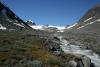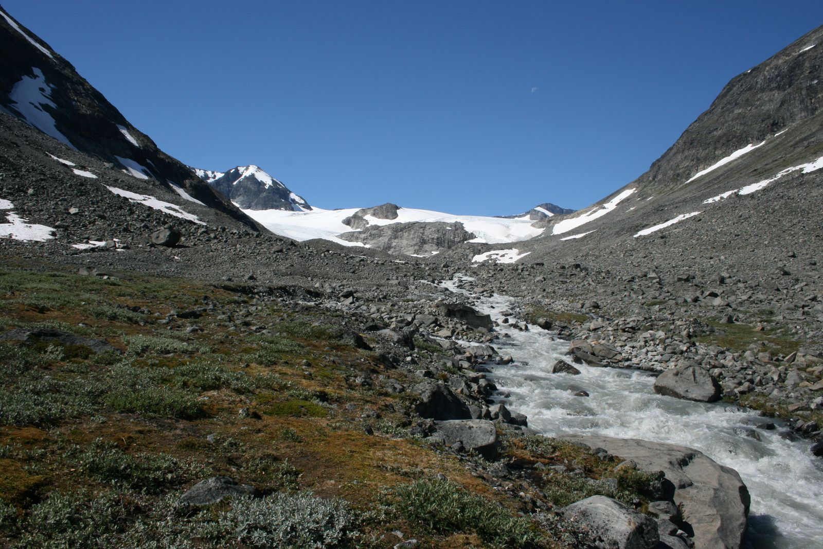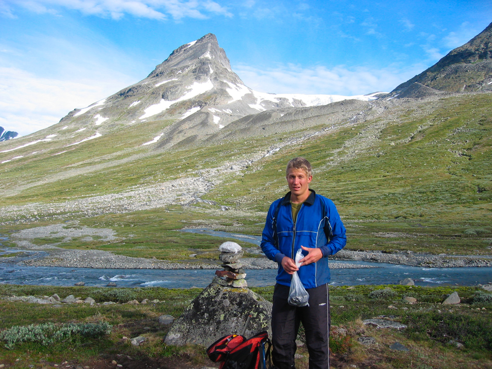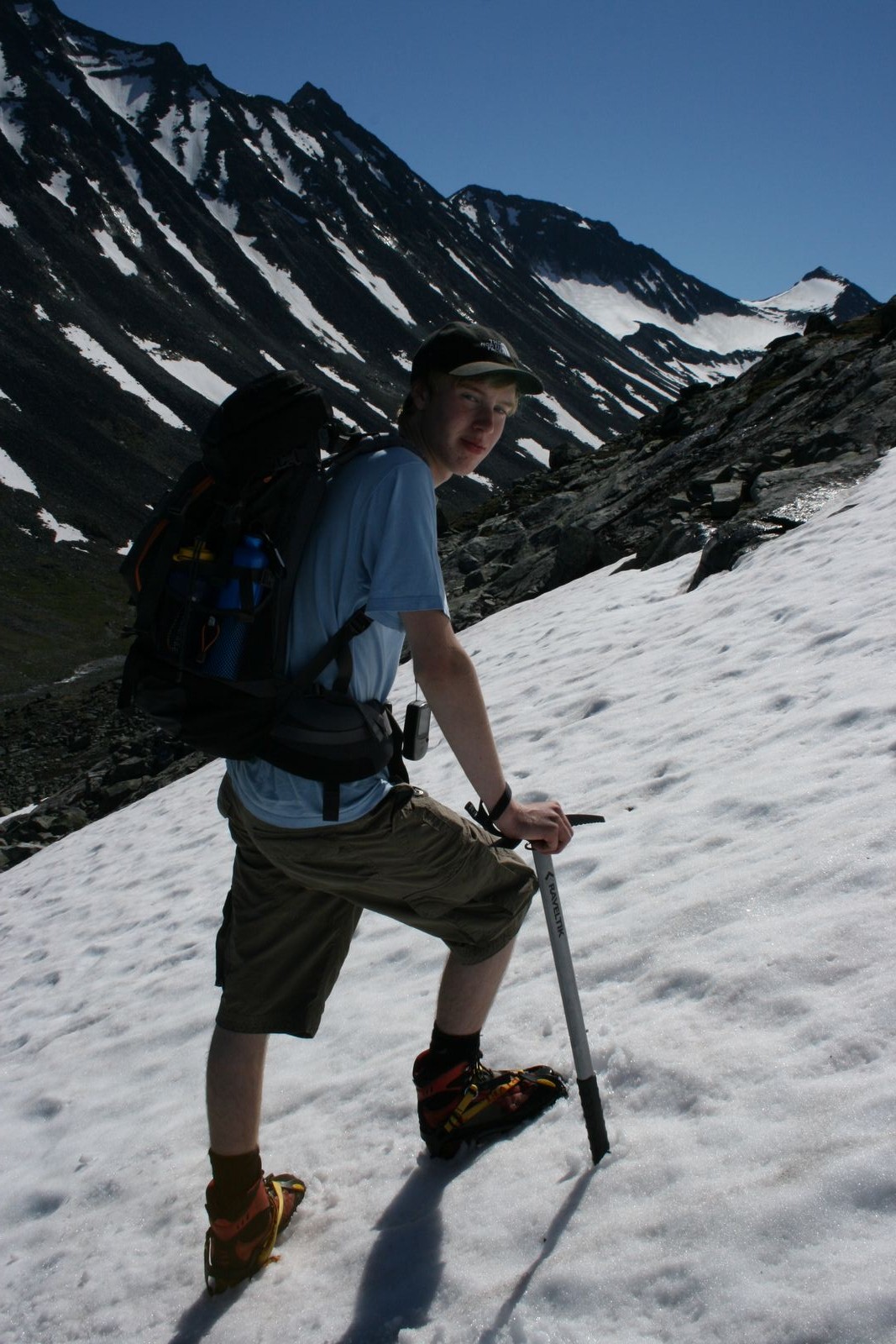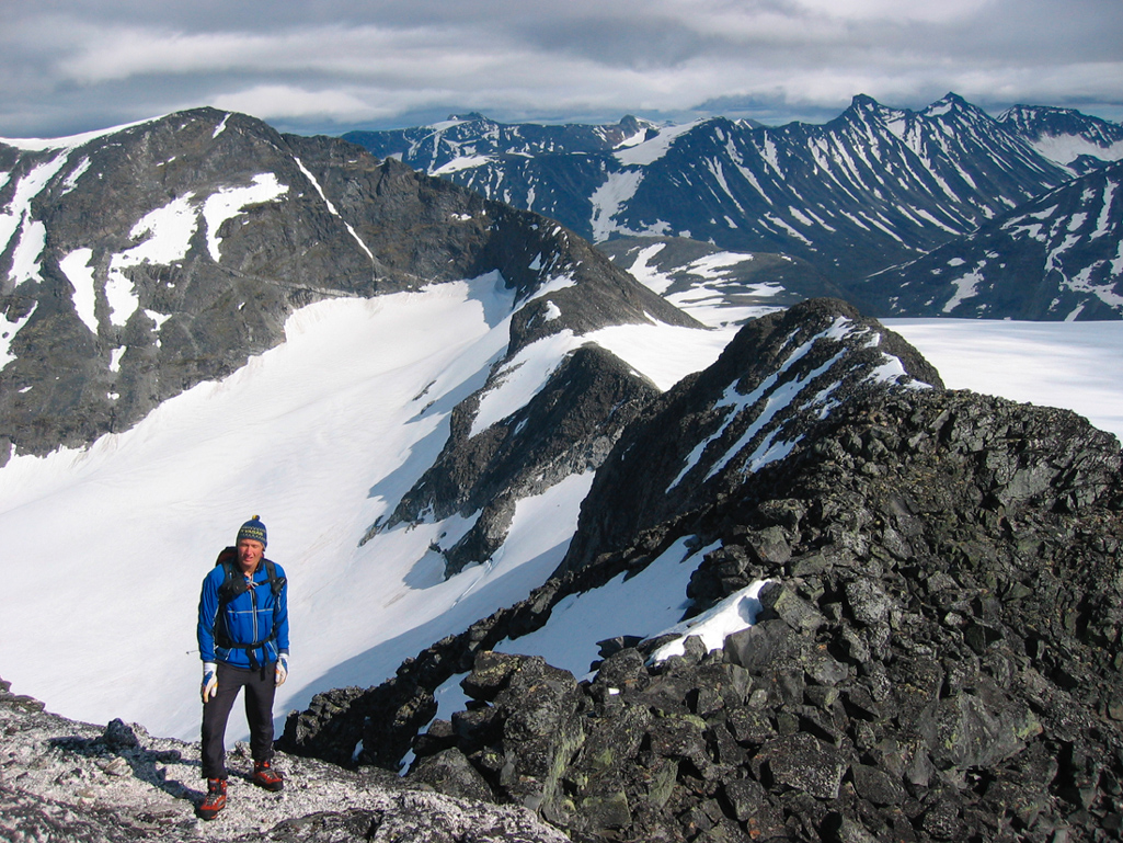 Endelig ble det tid for årets ferietur, noe som betydde nye fjellopplevelser, og forhåpentligvis nye 2000-metre. Planen var at jeg, sammen med foreldrene mine, skulle tilbringe en ukes tid i Visdalen i Jotunheimen, med et telt oppe i dalen som base. Herfra skulle vi gå på så mange topper som formen og været tillot. Vi hadde ingen klare planer for hver dag, og ingen tidsrammer, bortsatt fra at vi måtte begynne å snu nesen hjemover etter en ukes tid. Etter å ha studert værmeldinga nøye i tida før vi dro, viste det seg at dette kom til å bli ei uke med knallvær. På tirsdag ble bilen pakket, og vi satte kursen sørover i solskinnet. Vi nådde Spiterstulen rundt kl. 6, og etter to transportetapper (hadde jeg da visst hvor lite av utstyret jeg kom til å få bruk for hadde vi nok greid det med én) fram og tilbake fra bilen, hadde vi etablert leiren i lia ovenfor Gamelsætre. Onsdag: Leirhøe Den første turdagen opprant nokså gråere enn dagen før, med skydotter rundt de høyeste toppene, men etter hvert ble det mer og mer blå himmel. Vi ble enige om å starte med en enkel topp som alle tre ble med på: Leirhøe. Det ble avgang litt over kl. 9, og vi begynte å trave opp den bratte lia langs Leirgrove. Denne ble etter hvert krysset, og vi fortsatte opp til ca. 1600 moh, før vi svingte til høyre og fulgte den brede ryggen opp mot Leirhøe. Hittil hadde været vært fint, men nå begynte skodda å komme sigende, og når vi kom opp i 2000 meters høyde, var det lite sikt å snakke om. Her var det også snø hele veien til toppen. Vi hadde brukt god tid opp, og nådde ikke toppen før kl. halv 2, med bare snø og skodde å se rundt oss. Videre ble vi enige om å gå via Veoskardet ned igjen. Her måtte vi forsere en nokså bratt snøbakke, før jeg tok en avstikker opp på Leirhøe Sør. Denne lå under skodda, så jeg hadde en fin utsikt mot Veobrean, Veodalen og toppene rundt. Deretter gikk vi ned steinura til Hellstugubreen og fulgte stien langs Hellstuguåe tilbake til leiren. Oppsummering: 2 nye 2k-topper etter 8 t. og 15 min. på tur. Torsdag: Urdadalsryggen Denne dagen våknet vi til blå himmel over Visdalen - nydelig turvær! Vi ble enige om å prøve på første del av Urdadalsryggen i dag, altså opp til Store, videre til Midtre og retur via Semelholet. Det ble forholdsvis sen start i dag; kl. 9.45 begynte fader’n og jeg å traske opp dalen langs DNT-stien. Vi passerte Urdadalsbekken før vi begynte å skrå oss opp mot ryggen til Store Urdadalstinden. Det ble etter hvert mange høydemeter, og det ble nokså slitsomt i varmen. Vi kom etter hvert til ei bratt snøfonn, som vi lett kunne ha gått rundt i steinura, men, mest for å få prøvd utstyret, tok vi på stegjern og isøks og gikk strake veien opp. Etter hvert ble det bedre og bedre utsikt mot Hellstugutinder, Bukkeholstinder, Kyrkja og selvsagt Visdalen. Videre opp på ryggen, omtrent der den begynner å svinge mot sør-sørøst, ble det smalere, så vi holdt oss en god del på vestsiden av ryggen her, hvor vi måtte ta hendene til hjelp flere steder, men det var langt fra vanskelig under de optimale forholdene vi hadde. Toppen ble nådd kl. 14.30, og vi kunne nyte den flotte utsikten i hjertet av Jotunheimen. Videre fortsatte vi greit ned ryggen mot Midtre. På vei ned ryggen fikk vi plutselig høre et brak, og fikk se noen store steiner i full fart på vei ned noen snøfonner ned mot Semelholet! Forskrekkelsen ble enda større da vi oppdaget at det gikk folk like ved der steinene stoppet!! De fikk seg sikkert en real støkk etter den opplevelsen… Dette skjedde et godt stykke foran oss på ryggen, så jeg antar at vi kan renvaske oss selv for å ha utløst det, men etter dette ble vi langt mer oppmerksomme på hvor vi plasserte føttene. Før vi begynte stigninga opp til Midtre, traff vi på den etter hvert så kjente karen som står her med ryggsekk og lue. Det tar vel ei stund før han finner veien til toppen... Videre til Midtre ble det en del klyving, men også her var det greit nok å komme til toppen, og vi ble belønnet med nok en nydelig utsikt. Klokka nærmet seg nå 17, og vi begynte på returen ned til Semelholet, hvor isen på Semelholstjønne så ut til å ha sprukket opp betydelig mer i løpet av denne varme dagen. Nedi steinura var det, som raset tidligere på dagen hadde vist, en god del løst, men med en god porsjon forsiktighet gikk det bra. Vi benyttet oss også av noen snøfonner, som sparte oss for mye tid. Nede i Semelholet gikk det greit ned til Visdalen, og vi gikk derfra tilbake langs stien til leiren. Under kryssinga av Urdadalsbekken presterte jeg å skli på en av steinene, med det resultat at skoene ble søkkblaute til resten av returen. Oppsummering: 2 nye 2k-topper etter 11 t. og 10 min. på tur. Fredag: St. Tverråtind Fortsatt finvær, så dagens plan var å gå over Tverråtindene, fra Midtre til Store. Også i dag ble det sen start: kl. 10.15 begynte vi å gå og krysset kloppa over Visa, som ikke lå lenger enn 300-400 meter unna leiren. Herfra gikk vi et stykke nedover dalen før vi fortsatte inn i Tverrådalen langs Tverråe. Denne skulle vise seg å være veldig stor, og etter flere forsøk på å steingå den, måtte vi endre planen. Vi baserte nå på å krysse elva lenger oppe i dalen, for så å sette kursen for Store Tverråtind. Men vi fant raskt ut at å steingå elva ikke ble noe enklere lenger oppe, så det ble til at vi måtte vade den like under brekanten, hvor den er splittet i flere løp og har forholdsvis lite strøm. Det var en heller kald opplevelse! Etter å ha fått tørket føttene på en solvarm stein på den andre siden, bega vi oss opp mot Nedre Tverråbandet. Noen steder tok vi sjansen på å gå et lite stykke ute på breen, da spor fra den samme dagen gikk her. Like før Tverråbandet bestemte jeg meg for å gå oppom Lindbergtinden, mens fader’n gikk opp til Tverråbandet. Her var det ei nokså bratt snøfonn, men snøen var veldig grei 