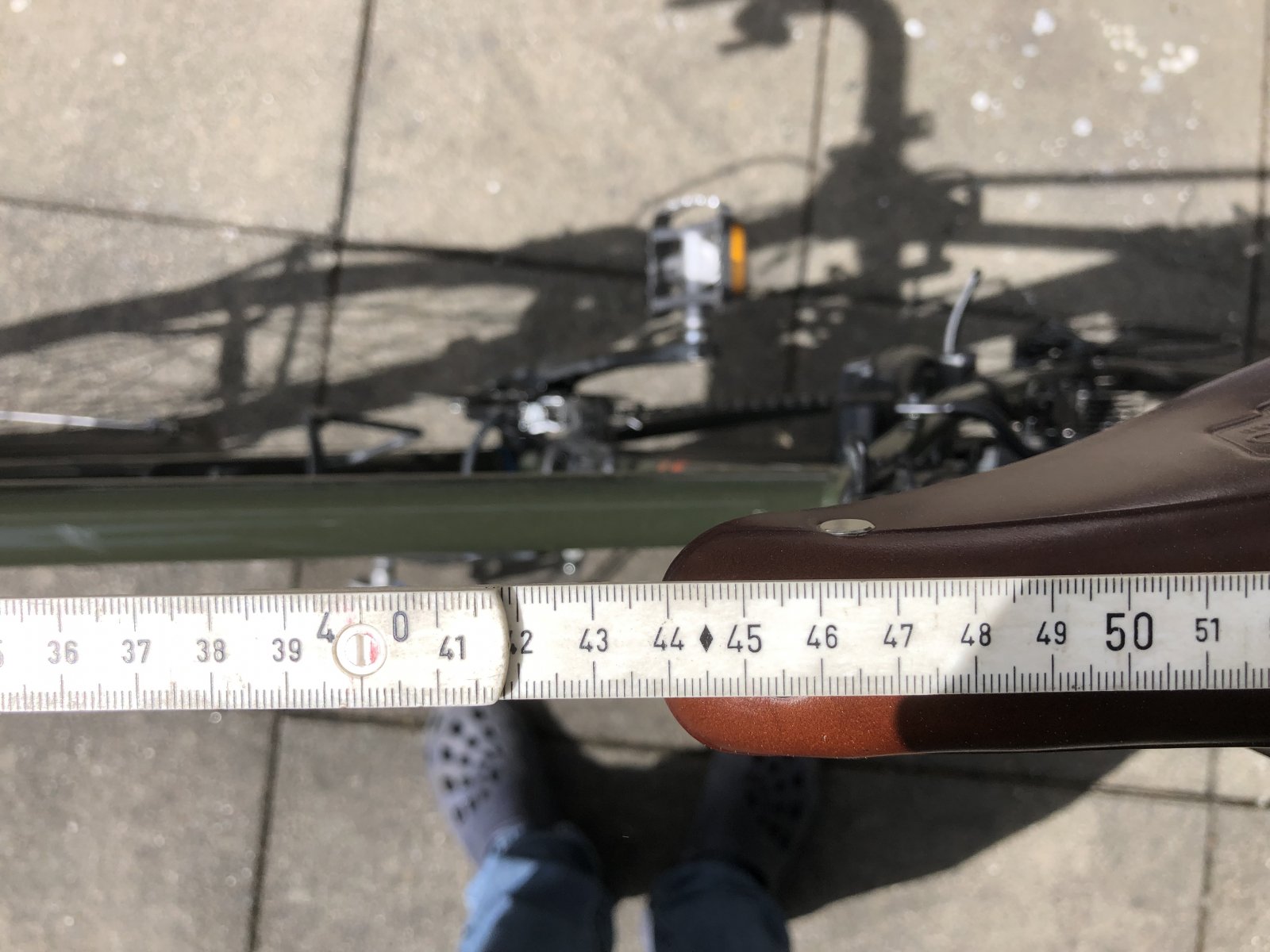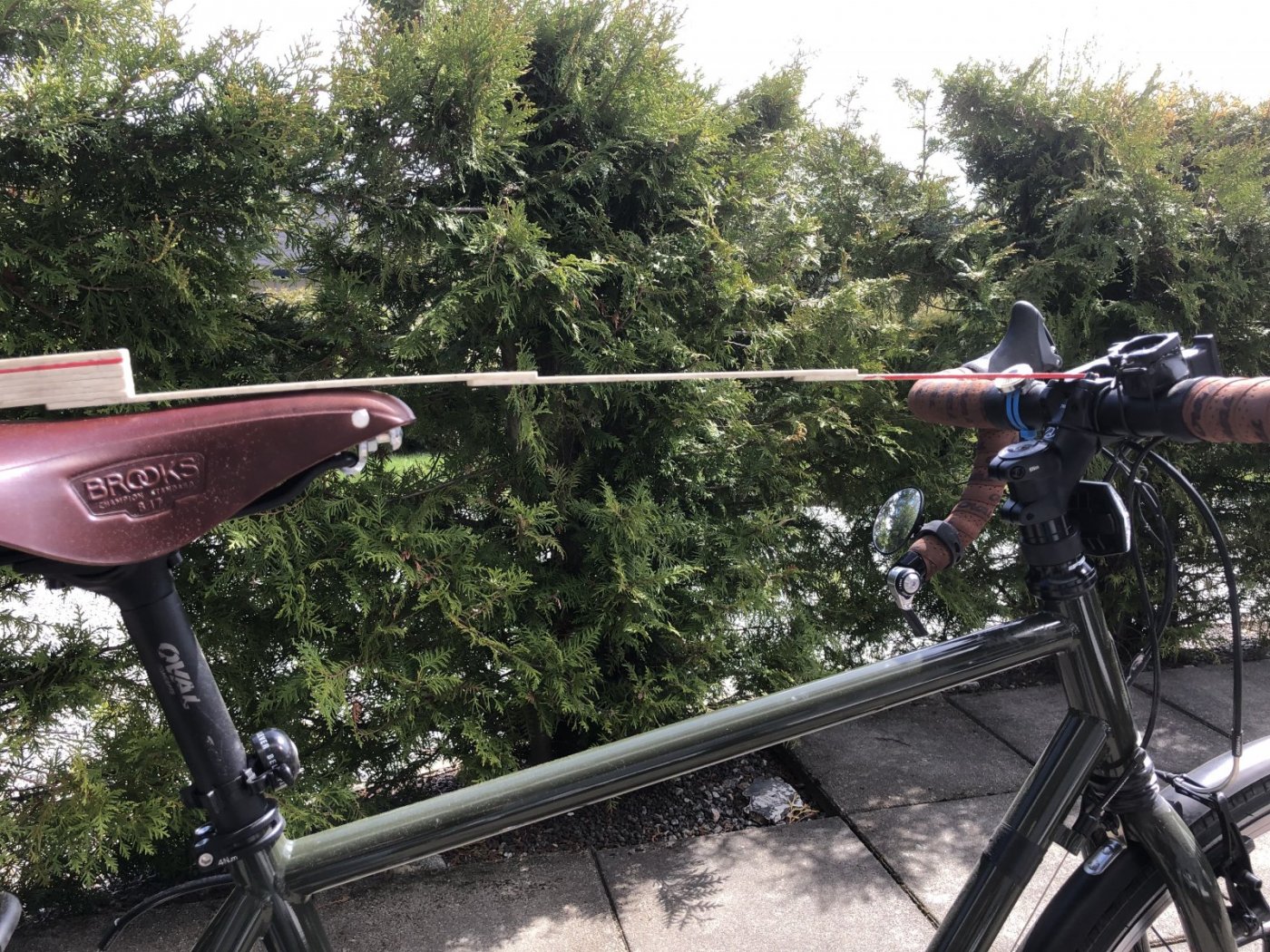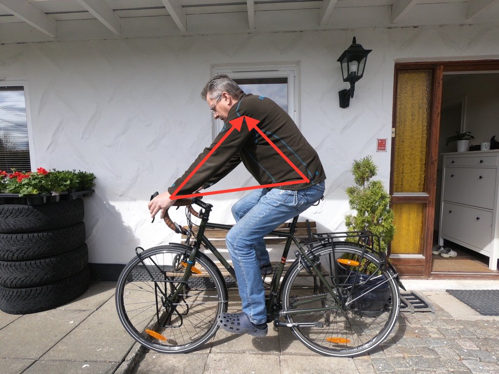 Da var tiden kommet for å prøve et kortere stem på Touring sykkelen. Det er egentlig lenge siden jeg tenkte å skifte stem, men jeg har i det lengste skjøvet det foran meg. Håpet var at det skulle gå seg til, men det har det ikke gjort. I håp om ytterligere optimalisering av sykkelen til min kropp ble et Brooks B17 sete montert tidligere i våres og nå er turen kommet til styrestemmet. Tanken var å få et kortere og brattere stem for en litt mer oppreist sittestilling som skulle ta av litt av presset på mine kranglete skuldre. Her er både det originale og det nye stemmet. Originalen heter Oval og det nye er et Pro. Med det gamle stemmet hadde jeg 47cm fra setet til styret. Og med det nye ble det 44cm. Jeg hadde et ønske om at dette også ville heve styret i forhold til setet,,,,,,,,,,, (her er det gamle) Men det ser ikke ut til at det ble som tenkt, ganske likt egentlig. (Her er det nye) Men det hadde definitivt noe for seg angående en noe mer oppreist sittestilling. Nedenfor er foretrukken / normal sittestilling med det gamle stemmet. og her med det nye. Om ikke streker og piler jeg har lagt på bildet viser dette tydelig, så sees det godt mot mitt hode i forhold til lufteventilen på vinduet bak. Det ble også en prøvetur på 27km som konkluderte med godkjent. Jeg rekker flere testturer før turstart, men tror jeg lar det nye bli sittende.