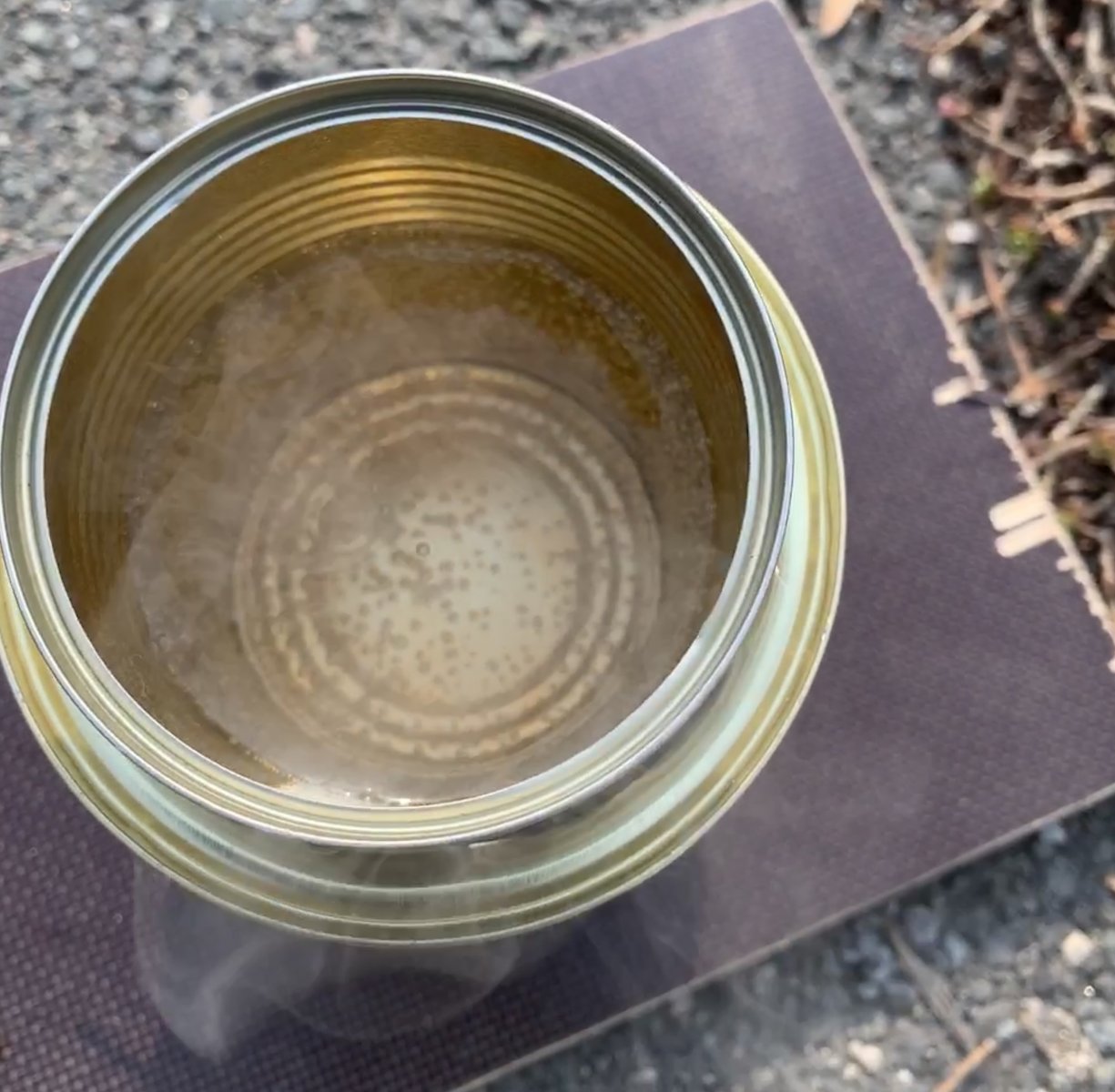 Det funker jo på et vis, men lukta av Esbit som brenner og i tillegg ha dette inni kjelen...