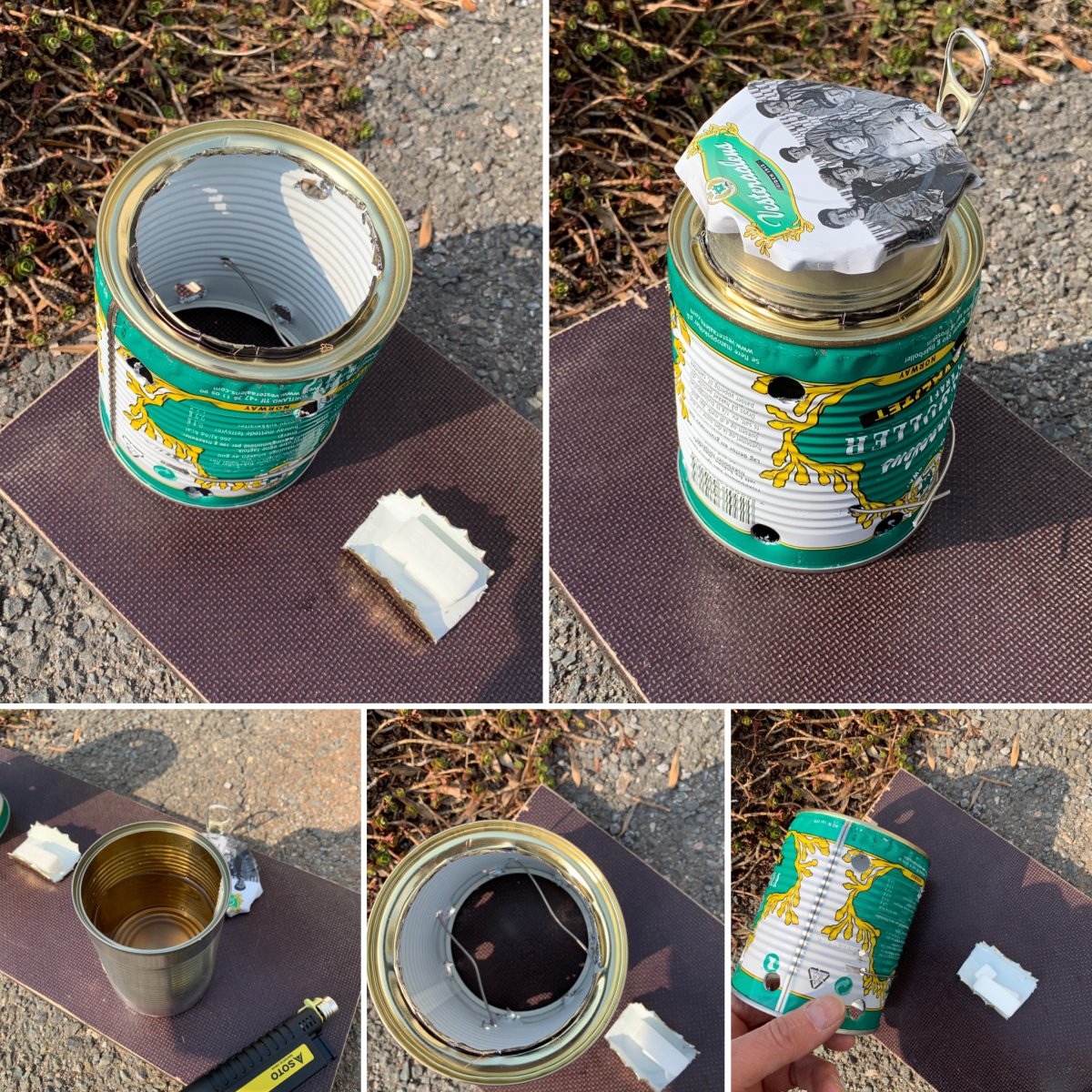 Jeg laget en slags kopi for å teste. Ble blikkboks og ståltråd slik som @Tom42 ofte bruker.