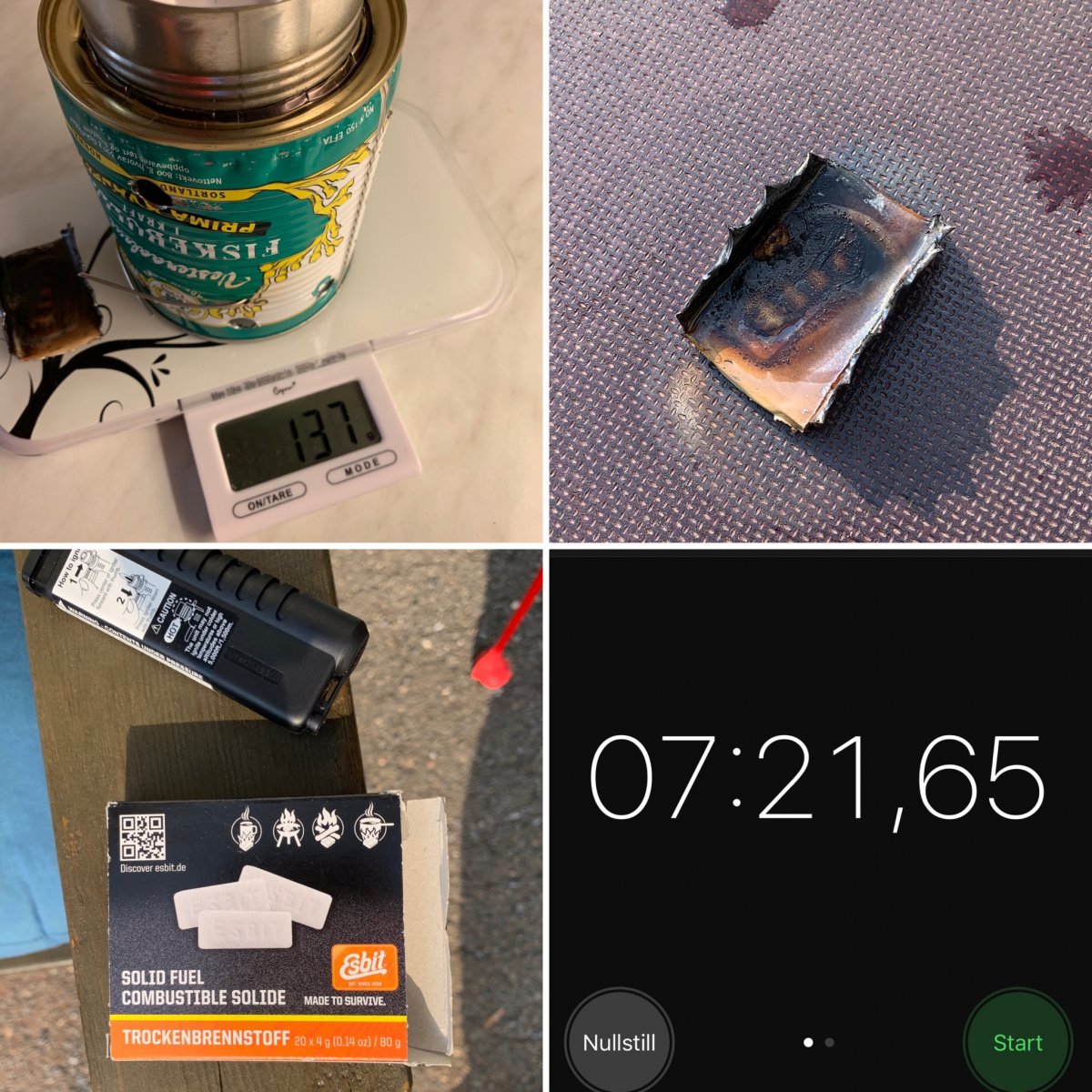 Dette er for spesielt interesserte, og koker 3 dl på ca 7 minutt med 1/3 av en 14 grams Esbit blir det sagt.