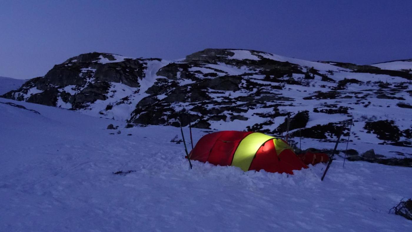 Blefjell med fjellski, pulk og telt. Turrapport bilder og video.
