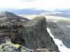 Det var meldt fint vær i Trøndelag denne lørdagen og vi bestemte oss for å sjekke ut et for oss nytt fjellområde: Sylane på grensen til Sverige. Vi kom avgårde klokka 8 og etter ca 2 timer kjøring parkerte vi bilen på den nederste parkeringsplassen ved Nedalshytta. Rundt 50 andre biler sto der allerede så vi skjønte raskt at vi ikke kom til å gå alene denne dagen. Fra Nedalshytta går stien forsiktig oppover over myrer og gjennom bjørkeskog. Stien runder Neklumpen (1014 moh) og landskapet flater ut og blir svært behagelig og lettgått. Midt imot tårnet Bandaklumpen (1427 moh) og bak stakk en del av de høyere sylene opp. Min bedre halvdel hadde avtale om festiviteter senere samme dag så vi langet godt ut og fikk utnyttet det flate og gode underlaget. Det var godt med mennesker rundt oss og mye rein å se, en del gabbarein lyste opp i landsskapet. Stien slynget seg inn i Sylanmassivet og vi fikk Syltjønna (1034 moh) midt i mot. Det tok litt tid før jeg skjønte at Storsylen (1762 moh) var toppen rett foran oss og at det faktisk var meningen at vi skulle kravle opp den bratte fjellsiden til venstre for toppen. På avstand så det alt for bratt og svaet ut for normal gange - og folka vi passerte så stort sett ikke ut til å være fjellklatrere. Men ettersom vi kom nærmere så jeg mange mennesker som sakte beveget seg oppover fjellsiden og jeg skjønte at dette ble brattere enn jeg hadde trodd. På vei oppover diskuterte vi om ikke dette var brattere enn både Fanaråken fra Helgedalen og Bukkelægret. Fra tjønna går det opp ca 700 meter i løpet av ca en kilometer. Selve underlaget besto først av jord og småstein, bittelitt sva og deretter en del større stein før det går over til fast fjell når man når ryggen. Fra ryggen får man flott utsikt mot Svenskesiden og Sylbreen nedenfor. Deretter blir det bittelitt enkel klyving opp til riksrøya og til slutt til toppunktet. Aldri eksponert, aldri luftig (så sant man følger normal trasé). Fra toppen var det fenomenal utsikt i alle retninger. Jeg bet meg spesielt merke i ruta for syltraversen som jeg håper å få tatt senere i år. Etter en liten rast satte vi kursen hjemover igjen. Brattbakken kjentes i beina på veien hjem, men det hadde vært en fenomenal tur. Turen tok litt over 7 timer og var på 2,18 mil. Trond Erik