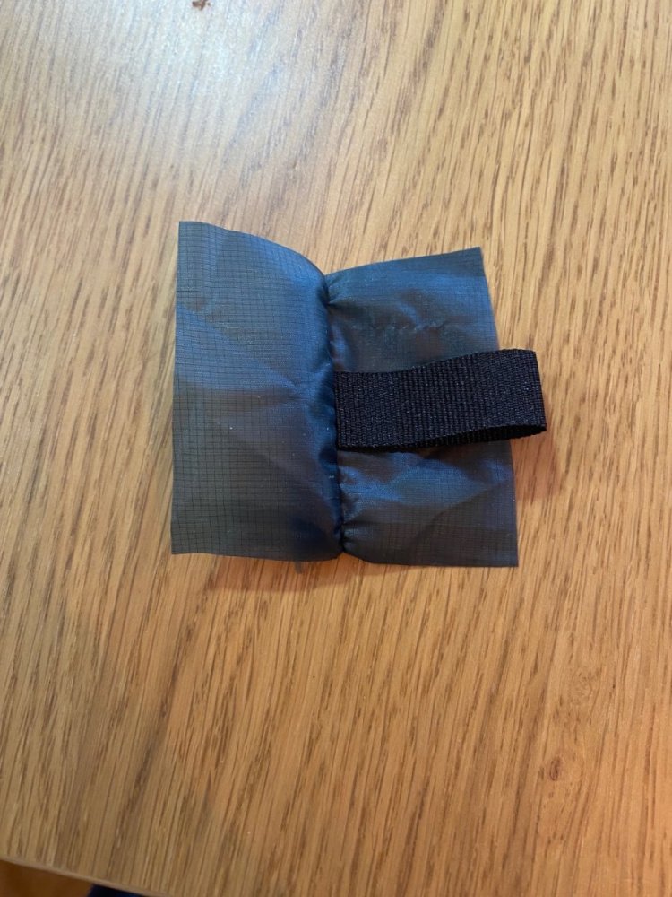 Har du også en Helsport Bitihorn SL tarp og er dritt lei den elendige pakkposen som medfølger? Nå kan du få en mye bedre! Jeg sydde en av lett ripstop PU nylon*, og det kan du også gjøre. Jeg brukt en rektangulær stoffbit på 30x45 cm, foldet alle kantene og laget en snorkanal. Ingen eksponerte råkanter som kan rakne. Tredde i snor med snorstrammer. Hvis du ikke gidder å gjøre det selv har jeg heldigvis løsningen! Da jeg først sydde én kunne jeg like gjerne sy noen til. Selger derfor tre pakkposer som passer Bitihorn SL perfekt for 80 spenn (50 + 30 frakt). Høy kvalitet. Ta kontakt om du er interessert. Innsiden. Ingen eksponerte råkanter som kan rakne: *https://www.extremtextil.de/en/groundsheet-ripstop-nylon-pu-coated-10000mm-65g-sqm.html.