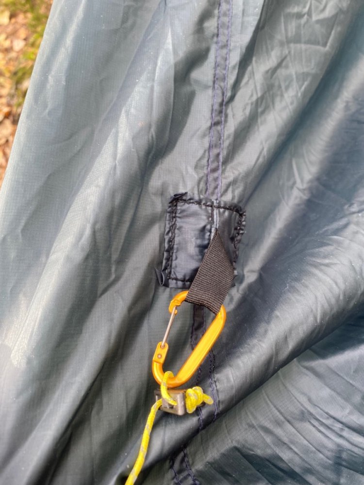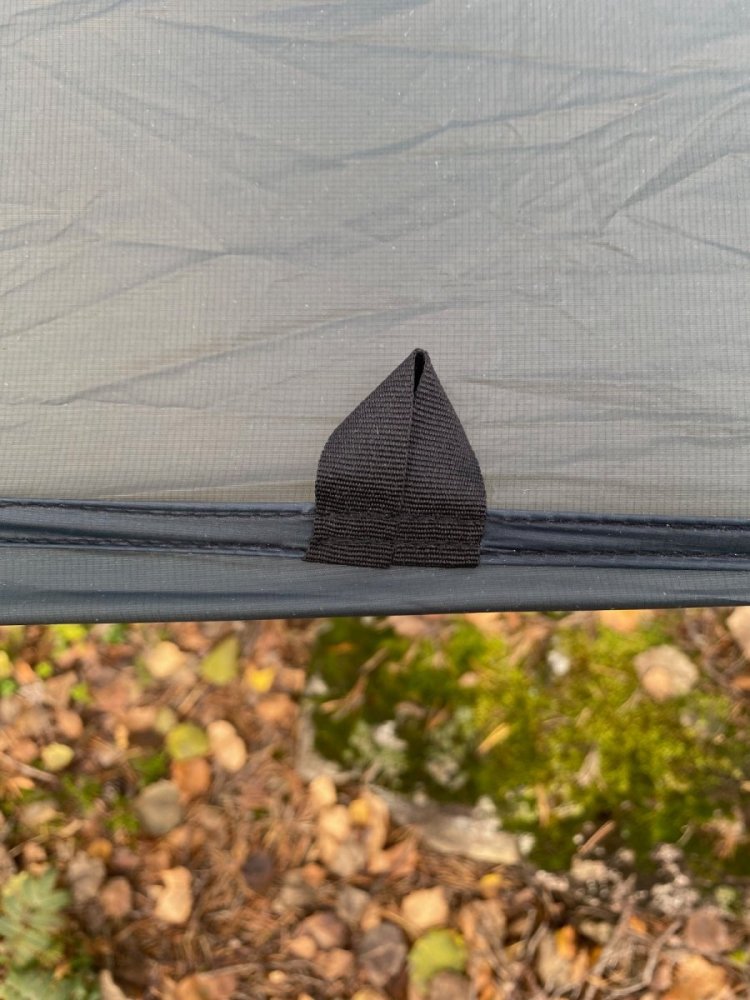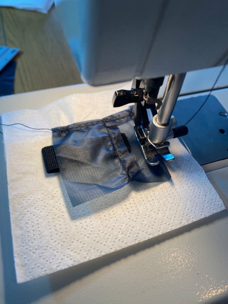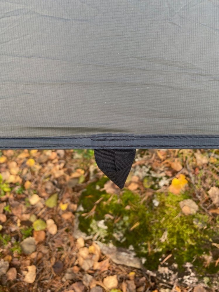 I sommer kjøpte jeg en Helsport Bitihorn SL tarp og jeg postet et innlegg om "bias stretch" i silnylon [1]. Jeg sydde også en ny pakkpose som erstattet den ubrukelige medfølgende pakkposen [2]. Ettersom silnylon strekkes mye diagonalt på vevretningen ville jeg se om det å lage en "cat curve" langs alle sidene på tarpen ville sørge for et strammere oppsett. I tillegg ønsket jeg flere bardunfester, hvilket jeg vet er diskutert tidligere på forumet. Jeg håper derfor den delen av dette innlegget kan være interessant. Her er noen bilder av den modifiserte tarpen, og nedover er fremgangsmåten. Jeg synes oppsettet ble stramt og fint. De ekstra bardunfestene jeg sydde på gjør at tarpen kan settes på flere måter enn den opprinnelige Bitihorn-tarpen. Jeg tok inspirasjon av Slingfin NFT tarp som har fått mye skryt [3]. Ved hjelp av litt matte og en saks klippet jeg ut en kurve langs alle sidene, med 10 cm dybde på langsidene og 7 cm på kortsidene. Jeg forsterket "alle" bardunfester (unntaket kommer) med 210D ripstop polyester [4]. Her sydde jeg på 15 mm kantbånd med en "box x"-søm. Da jeg foldet inn råkantene sydde jeg også inn ekstra bardunfester (dette er unntaket jeg nevnte). Fra undersiden. For å lage ekstra bardunfester langs midtsømmen (ridgeline) tok jeg inspirasjon fra det ene originale bardunfestet. Jeg sydde på en bit av 210D ripstop polyester-stoffet på undersiden. På oversiden sydde jeg fast en silnylon-bit hvor jeg hadde sydd inn en løkke av kantbånd. På den måten ble selve tarpen sandwitchet mellom de to stoffbitene og strekket fordelt. For å lettere folde inn kantene på silnylon-biten sydde jeg den til et tynt papir jeg senere rev av. Dette stabiliserer det tynne nylonstoffet mens man syr, test det ut selv! For å kunne bruke tarpen med bivy-bagene mine valgte jeg å sprette opp midtsømmen på to steder for å sy inn to løkker på undersiden. Slik kan jeg feste bivyen til tarpen ved hjelp av to barduner. Jeg har vurdert å sy på ekstra bardunfester midt på panelene på begge sider. Siden jeg ikke ennå har testet det skal jeg uttale meg forsiktig, men jeg er rimelig sikker på at fremgångsmåten beskrevet over er betraktelig bedre enn å lime på bardunfester. Uansett ville jeg festet på en strikkløkke til bardunfestet for å dempe det verste strekket, ettersom festepunktet ikke er sydd inn en søm. Til slutt noen ord som nål og tråd. Jeg brukt Rasant 75-tråd [5] i kombinasjon med en Microtext 14-nål. Tråden er laget av polyester og bomull og skal trutne når den blir våt. Helsport bruker en liknende tråd. Forhåpentligvis gjør det at sømforsegling ikke behøves. 1 2 3 - https://www.slingfin.com/products/nft 4 - https://www.adventurexpert.com/product/210d-pu-diamond-ripstop-polyester/ 5 - https://www.extremtextil.de/en/rasant-75-sewing-thread-polyester-cotton-corespun-1000m.html