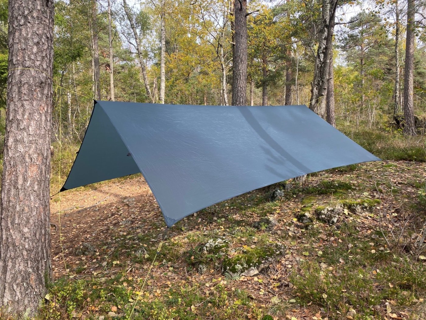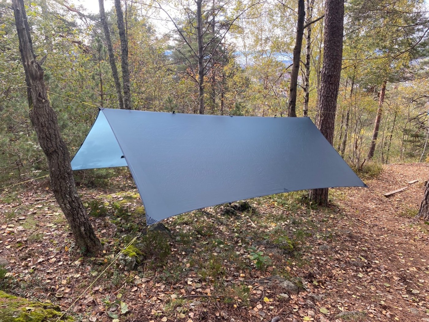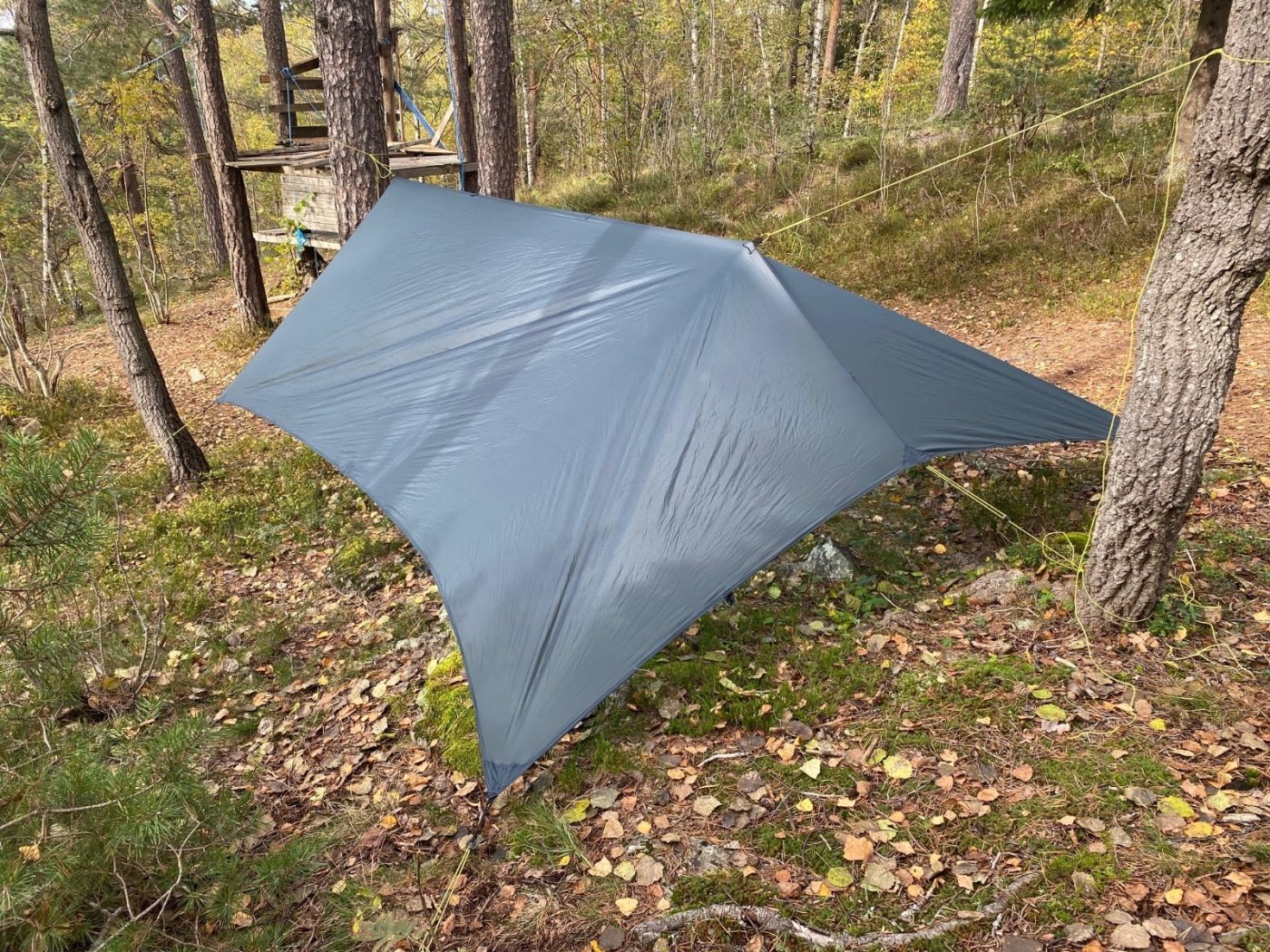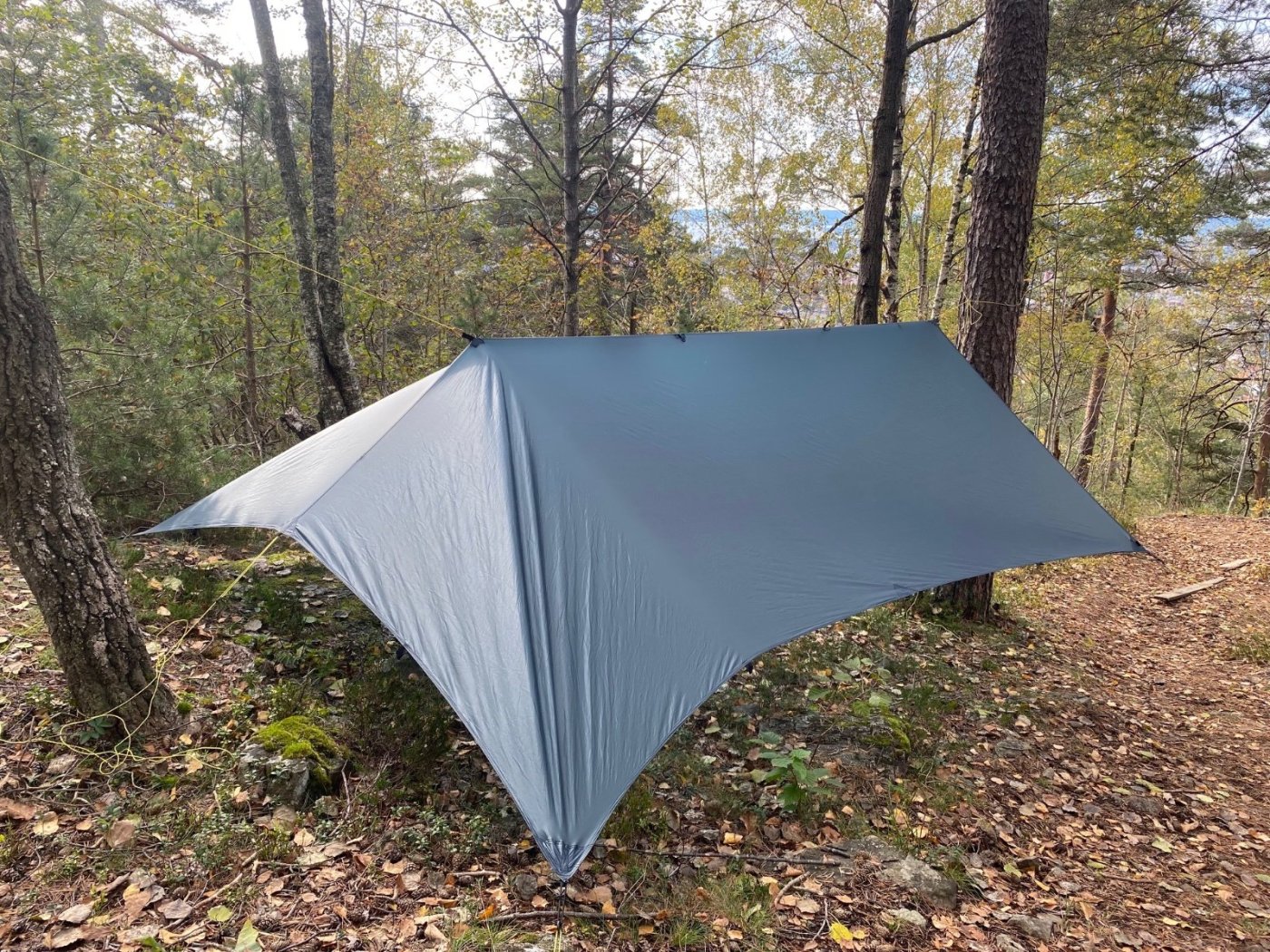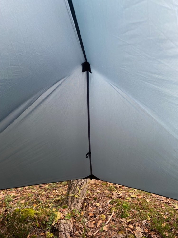 Er der nogen der har erfaring? Jeg er helt sikkert ikke den eneste som har tilbragt en regnvejrs-dag i et ultralet et-personers telt. Det er myggefrit og tørt, men ikke et højdepunkt på en tur hjemmefra. Så, ideen om en tarp over et stort myggenet har bidt sig fast. Jeg fik ideen på et tidspunkt og købte begge dele uden at jeg alligevel har haft en god lejlighed til at prøve det af. Mine forventninger var ikke så høje, myggenettet er meget lille. Men, så så jeg én af de der utube vildmarks-videoer, hvor én brugte det. Den store AHA kom efter en video-panorering af landskabet. Det var skarpt og tydeligt, og så går det op for én, at det er optaget inde fra nettet. OWKayyy Og så er det hverken pris- eller vægt-belastende.