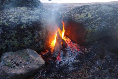 Etter noen dager var suget til fjellet for stort, jeg bare måtte ut på tur. Denne gangen var planen å padle Ally kanoen inn til samme sted (og videre) som jeg gikk inn til for noen uker siden. Dette er en lang padletur, 15 effektive kilometer totalt og to bæringer (en mellom Øyervatn og Sandvatn, og en mellom Sandvatn og Grodvatn). Problemet kom for fullt da jeg sto i enden av Øyervatn, klar til å sette ut kanoen. Øyervatn er svært og derfor har det lett for å bli store bølger. 12 ms vind fra nord vest… Jeg sto der-litt små sur, og så utover vannet, hvite skummtopper på bølgene. Dette vil ikke gå! Jeg var usikker på hva jeg ville, men til slutt bestemte jeg med for å gå i retning av Gjevarvatn som ligger sør-øst for Øyervatn. Etter litt ompakking var det klart for å gå nedover. Ettermiddagen kom fort, det første jeg gjorde da jeg kom ned var å sette opp teltet og få i meg noen kalorier (det var nemlig ikke så mange igjen i skrotten). Du kan gjette hva jeg gjorde når maten var innabords, jo nå var det tid for fisking. Jeg hadde aldri vært i dette vannet før så jeg visste ikke om det var noe fisk her. Det gikk ikke mange kastene før jeg kjente napp, og plutselig satt den! Etter en kort økt var fisken sliten og jeg kunne dermed håve den opp. Det var en, jeg må helst få et par til for å bli mett i kveld. Etter en liten halvtime lå fem fine ørreter klare for steking. Det viste seg at det skulle bli et godt måltid, nå ventet teltet og soveposen… Neste dag gikk marsjen mot langs Gjevarvatn og bort til Ufstjønn, og videre ned til Brutjønn. Jeg er nysjerrig på disse vannene, hva av fisk venter her? De første fiska fikk jeg langs Gjevarvatn, her fikk jeg ikke større enn 2-300g, det er fin stekefisk, men jeg skulle likt å få litt størrelse på den. Da jeg kom til kulpene mot Ufstjønn var det helt klart mer fisk, men bare av samme størelsen, noen litt mindre. Her fikk jeg nesten fisk på annethvert kast, jeg tok opp alle sammen for kultiveringens skyld. Ned til Brutjønn er det 30 meters nedstigning, her var det mange fine små kulper. I en av kulpene fikk jeg napp av en kilosfisk, jeg så den i overflaten der den fulgte etter Sølvkroken spesial spinneren min. Søren at ikke den beit på! Da jeg kom tilbake til leiren lagde jeg fileter av ørretene jeg hadde fått, de fleste var røde å fine i kjøttet. Disse (skinn og beinfrie) filetene ble kuttet opp i terninger og dretter puttet oppi Lofoten fiskesuppa. Denne suppen smakte helt himmelsk! Jeg la meg litt tidligere denne dagen, grunnen var de tusen millioner mange knottene som suste rundt, knottnettingen var til hjelp, men de var plagsomme selv om. Nå var kunsten å komme inn i teltet uten å slippe en fantasilion knott inn. Det gikk dessverre ikke helt som planlagt. Da jeg hadde kommet meg inn i teltet hadde gått nøyaktig to sekunder, det var dessverre for mye… Etter en liten time med hardt arbeid var de fleste knottene drept, endelig! Nå skulle det bli godt å sove! Neste morgen våknet jeg klokken 08.00, solen skinte mellom skyene på teltet slik at det ble en dødelig temperatur i teltet. Knotten var ikke så ille denne morgenen, fordi det blåste en herlig frisk bris. Etter litt pakking var teltet nede og sekken pakket, jeg var klar til å dra. Med tung sekk kjentes bakken opp de 60 bratte høydemetrene til foten av Øyrevatn hvor bilen ventet. Turen var topp, jeg har blitt kjent på nye områder og vet mer om hva slags fisk som er i området (det er mest småfisk, men større fisk kan muligens fås med litt flaks). Er allerede lysten på ny tur, det blir nok ikke så lenge til!