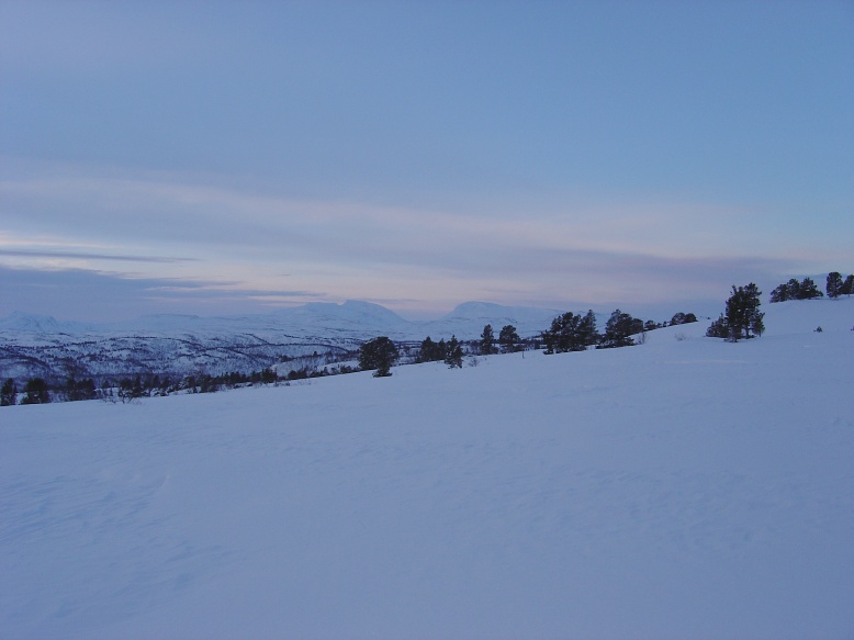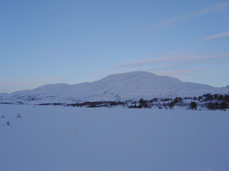 Etter å ha hatt turklær/utstyr liggende klart til å stappes rett inn i en bil kjapt (høyeste beredskapsnivå) i noen dager skulle endelig været her oppe i Trøndelag roe seg såpass at det lå til rette for årets første skikkelige fjelltur (og første skitur). Turen gikk til Resfjellet, en passelig tur for januar, en måned der det er like sikkert at formen er elendig som at dagene er korte. Jeg startet i Resdalen på en pent måket parkeringsplass (tror det er der det heter Kåsan) og måtte tråkke løype i tung nysnø gjennom skogen og over myrområdene sør for fjellet. Fra foten av fjellet og opp til topps gikk det videre på til tider litt isete skarde ad den brede sør-ryggen. Ikke de aller beste forholdene for skitur altså, men man har sjelden vondt av å måtte svette og streve litt. Resfjellet har to topp-punkt der det nordligste lå akkurat utenfor kartet mitt. Det så likevel ut til at det var det sørligste punktet som var høyest (sørtoppen hadde også den desidert største varden), men også det nordligste måtte selvsagt besøkes for "sikkerhets skyld". Det var noe grått vær, men likevel ganske god utsikt i alle retninger fra toppen, med Trollheimen i sør som det mektigste synet. I en liten kasse på toppvarden lå det en loggbok til å skrive seg inn i. I den var det loggført påfallende mange besøk av en viss Arild Krovoll. Veien ned igjen er det ikke stort å si om annet enn at det i egne skispor gikk betydelige raskere og lettere enn turen opp. Ellers hadde jeg, som alltid, med det lille fotoapparatet mitt, men pga kuldegradene (minst 10 minus) ville det ikke fungere skikkelig. Neste gang får jeg putte det i en lomme tett inntil kroppen i stedet for å ha det i sekken. Jeg fikk likevel tatt noen få bilder i starten av turen. De ble kanskje litt mørke og grå, men jeg legger ved et par stykker likevel. Til sist...er det noen som vet om Resfjellet regnes som en del av Trollheimen? Jeg ville tro at det IKKE gjør det. Trollheimen er uansett kanskje ikke noe veldig presist definert område? Har det forresten noen gang blitt vurdert å gjøre Trollheimen til nasjonalpark? -