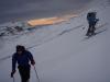 Etter først å køyrt til Ålesund, sjekka inn på hotell, og så køyrt til Ørskogfjellet, vart det ein sein start lørdag. Dagens mål var Sprovstinden, og planen var å gå opp langs alpinbakken mot skardet under Sandtinden. Men med all nysnøen som kom før helga vart det tungt å trakke spor, så eg bestemte meg fort for å ta ein anna retning. Så eg la i veg innover dalen mot Måslia, der det var godt opptrakka spor frå før. Langt inne i dalen var det ein som hadde teke opp lia, så då var det berre å følge sporet. Oppe i skardet vart føret fastare, men det vart å krysse opp mellom steinane mot den avblåste Sandtinden. Runda denne i sørkanten, før det bar litt nedigjenn før siste stigninga mot Sprovstinden. Oppe på toppen var det hardt og glatt, og svære skavlar mot stupa i nord. I det flotte været var det eit fantastisk panorama frå toppen. Frå Ålesund i sørvest, og heile synsranda i sør og aust låg ei utruleg tinderekke, med alle Sunnmørsalpane og Romsdalsfjella. Alle krittkvite etter siste snøfallet, og bada i sol frå blå himmel. Ein sur austatrekk på toppen, gjorde opphaldet kortare enn ønskelig, men klokka sa òg at det var nødvending med ein rask retur til bilen. Søndag var det grått igjenn, men det vart ein liten tur til Storhornet på Godøya.