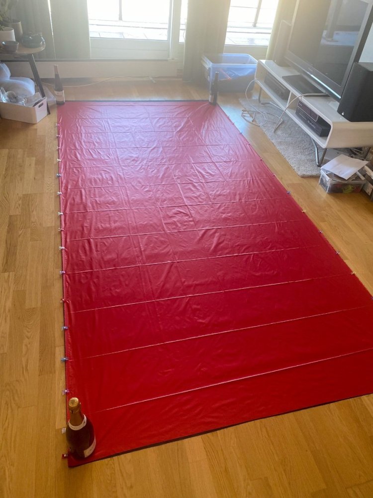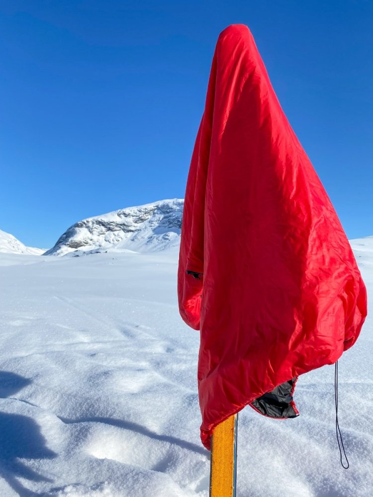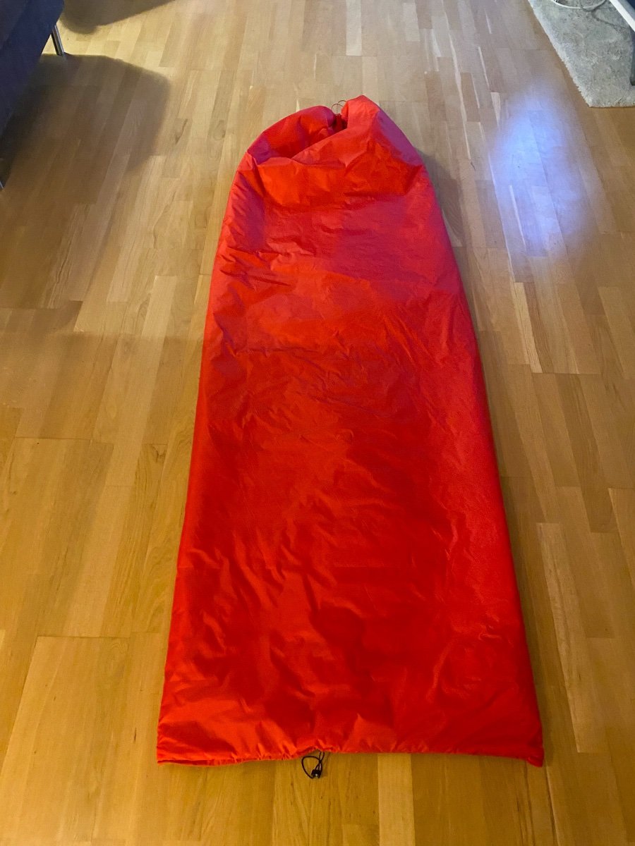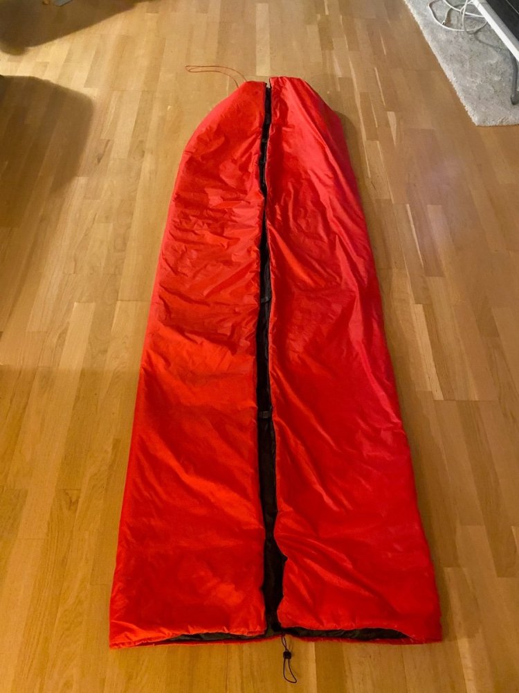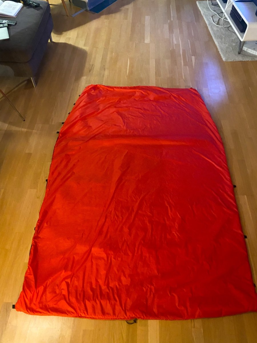 Nå som været er kaldere og vinteren nærmer seg vil jeg dele et prosjekt fra forrige vinter - en syntetisk quilt for å booste temperaturen til soveposen. Denne quilten er laget av den tynneste Climashield Apex-varianten og vil i kombinasjonen med andre soveposer og quilter jeg har, utvide temperiaturområdet de kan brukes i. Både om våren, høsten og vinteren avhengig av soveposen jeg velger. I tillegg er tanken at ved å kombinere en syntetisk quilt med en dunpose om vinteren vil fuktigheten trekke gjennom dunposen og kondensere i quilten. Siden quilten er syntetisk og bedre tåler fukt, og i tillegg kan tørkes lettere, vil det kunne bidra til håndtering av fukt/kondens på vinterturer. Jeg hadde god erfaring med dette systemet forrige vinter, men må bruke det mer før jeg kan konkludere. Prosjektet er lett og egner seg for en nybegynner. Man kutter alle tre lag (ytterstoff, isolasjon, innerstoff) i samme størrelse og syr de sammen på vranga, bortsett fra et lite området på 30 cm hvor man vrenger quilten slik at climashielden havner mellom de to stofflagene. Deretter syr man en toppstikning langs kanten for å forsterke sømmen. Jeg laget en snorkanal i hver ende. Fremfor en glidelås valgte å sy inn kantbånd med "kam snaps" for å skape "fotboksen". Jeg sydde inn fester for "pad straps" midt på quilten med inspirasjon fra min EE Revelation quilt. Det rød ytterstoffet er Pertex Quantum som er vannavvisende. Dimensjoner: - Lengde: 210 cm - Bredde: 146 / 118 cm (jeg brukte hele bredden øverst siden jeg ville at den skulle være stor nok til å brukes utenpå andre poser uten å komprimere dunen) Materialer: - Ytterstoff: Pertex Quantum (kjøpt hos Extremtextil, ikke lenger tilgjengelig) - Innerstoff: https://www.extremtextil.de/en/ripstop-nylon-downproof-soft-20den-40g-sqm.html - Isolasjon: https://www.extremtextil.de/en/climashield-apex-continuous-filament-insulation-67g-sqm-2oz-sqyd.html - Spenne til pad straps: https://www.extremtextil.de/en/center-release-buckle-12mm-center-push-extra-slim-wafer-clip.html - Diverse snorer, snorstrammere, kam snaps, elastisk bånd Kuttet alle lagene samtidig. Jeg brukte små klyper, men nåler i sømrommet er nok enda bedre. Ferdig quilt brettet ut. Oversiden når lukket. Undersiden når lukket. Snorkanal ved hodeende. Snorkanal ved fotende. Pad straps festet til quilt. Denne kan festes til liggeunderlaget som på EE Revelation. Quilten til tørk i vårsola i Jotunheimen.