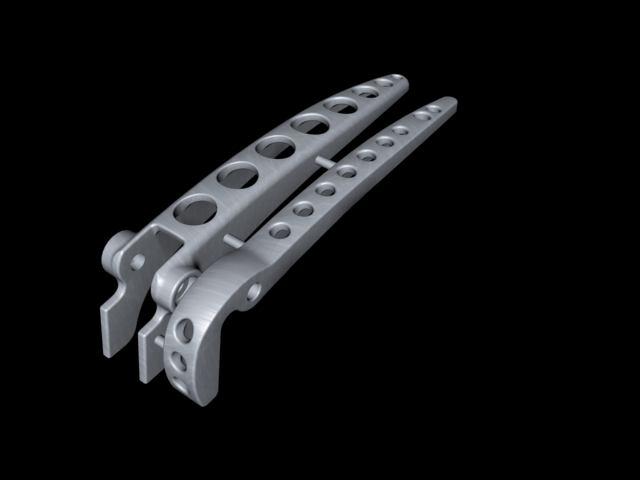 I tråden där jag tappade bort ta-verktyget till mitt mini-trangia så kom ett bra länktips: http://andersj.se/tamoj-nr-2/ Billigt och lätt. Men inte så elegant. Och jag hade ingen plåt hemma. Men jag hade en stor beställning hos Shapeways på gång, så varför inte CADa en egen variant och 3D-printa? Jag gick med i Shapeways pilotprojekt för 3D-printning i aluminium (lasersintring). Inga garantier för resultetet, men mycket bättre toleranser än rostfritt om det blir bra. Och bra toleranser vill jag ha eftersom jag vill slippa att gänga utan tänkte mig en M3-skruv rakt igenom alltihop, med försänkt mutter på andra sidan. Priset var löjligt (kostar alltså betydligt mer att printa en sådan här sak än vad hela köket kostar att köpa nytt). Man man skall ju ha lite skoj också, så igår gick beställningen iväg. Se bild nedan, så ser modellen ut som skickas till printern. Dom båda delarna som verktyget består av sitter ihop med 3 "bryggor" på samma sätt som delarna till gamla plastmodeller. Detta för att Shapeways tidigare inte klarat av att hantera produkter med flera delar och man betar en avgift per modell. Alltså: 2 saker i en modell som man sedan får klippa isär när dom kommer hem. Bryggorna är bara 2 mm aluminium så man sågar enkelt av dom med en bågfil eller klipper dom med en kraftig tång. Senare kommer bilder på den färdiga produkten, om printningen går bra, men det borde den göra. Det är inte extremt tunnt gods någonstans, utan det håller sig runt 2mm eller mer. Hela verktyget blir ca 90 mm långt och vikten blir ca 20 gram.