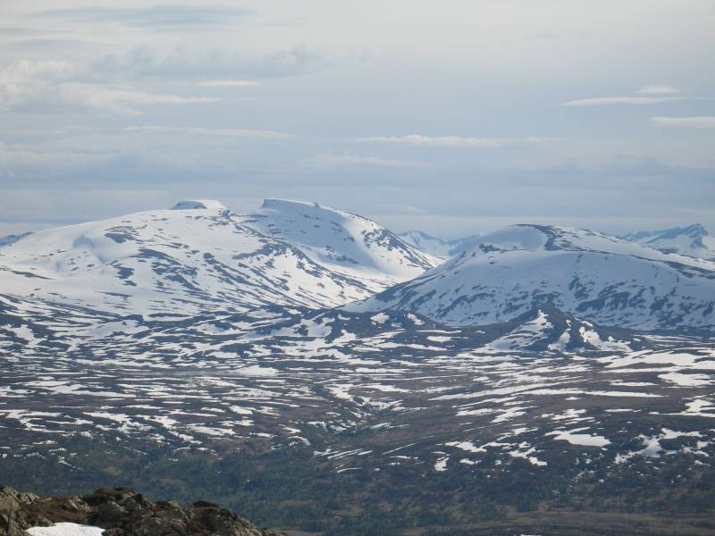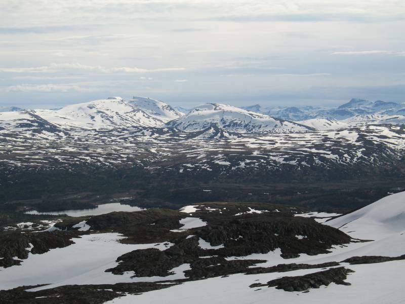 Endelig ble det støttbruk vær og sommerfjell ! I helga var jeg oppå Resfjellet 1161 moh, her ser en utover det meste av Trollheimen. Mye kvitt på toppene javel, men snøen er sommerhard og fin å gå på. Bildet er tatt ved toppvarden og viser Trollhetta, Rinnhatten (1335 moh) og Neådalssnota lengst til høyre. Trollhetta.jpg er innzooma, men Resvatnet.jpg er vidvinkel og viser det samme, med Resvatnet rett ned - begge tatt fra samme standplass oppved Resfjellvarden. Den merka stien på Trollhetta går (under snøen ...) opp langs ryggen i venstre kant og opptil østtoppen på 1522. videre til nordtoppen - den med skarpe kanten - på 1596. Stortoppen på 1616 moh er den digre som stikker opp rett bak østtoppen. De "små" fjella midt i er Midthatten og Svarthatten - alle på ca 900 moh Foran disse ses Raudfjelltjønna på 710 moh, vatnet er isfritt. (Jøldalshytta, 1 mil rett sør - ligger på ca 720 moh) Opp til fjells, til ca 1000 moh, gikk det greit uten de store fonne. Fra 1000 moh og opp var ei sammenhengde svær fonn, men det var jo flott å få brune leggene litt Jeg tok endel bilder av toppene - noen spesielle ønsker ? Resfjellbildene finnes her: http://www.krovoll.net/Resfjellet/