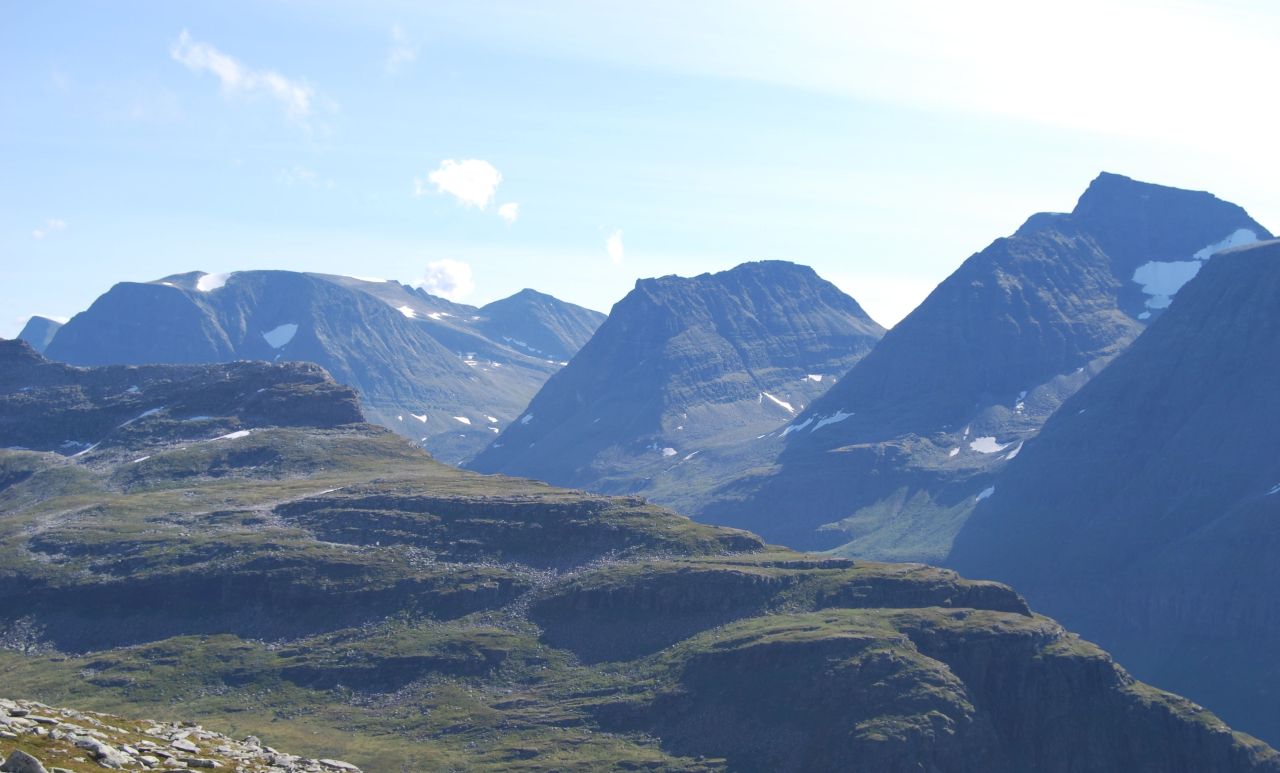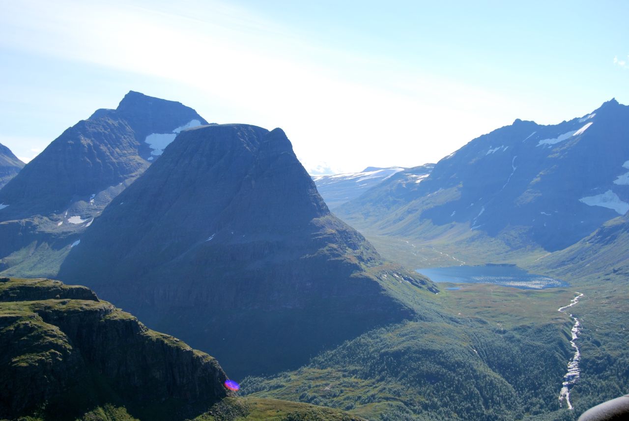 Kjæresten og jeg har vært i Storlidalen (Trollheimen) i helga. Firmahytta er ideell som base for toppturer, for toppene ligger på rekke og rad på begge sider av dalen. Det er tre år siden jeg var der for første gang, og jeg har «plukket» noen topper siden den gang, men Kråkvasstind (1700 moh, kalles Sandåhøa på nyere kart) var enda ubeseiret, så det var helgens store mål. Toppen sees fra stua på hytta, så jeg har ikke tall på hvor mange ganger jeg har sittet der med kaffekoppen og kikket opp på den. Værmeldingene viste at det skulle bli mye sol og varmt i helgen, så det måtte bli Kråkvasstind denne gangen. To ganger tidligere har vi forsøkt oss uten å lykkes. Første gangen var det en flomstor bekk i vårløsningen som stoppet oss, gangen etterpå hælbetennelsen min (som heldigvis er historie nå). Alle gode ting er tre, ikke sant? Lørdag opprant med skyfri himmel (iallefall ble det det når morgentåken forsvant). Varmt og vindstille var det også; en ideell dag for topptur med andre ord. Kvart på ti var vi i gang oppover lia fra Ångårdsvatnet. Omtrent samtidig med oss startet to karer som vi senere skulle finne ut også skulle på Kråkvasstind. Selv om vi bare gikk i t-skjorte silte svetten etter kort tid. Det var rene, skjære sommerværet i fjellet denne dagen. Bare fargene og solas høyde på himmelen avslørte at det ikke var midt i juli, men starten av september. Utsikt ned mot Storlidalen. Vi fulgte stien langs Sandåa til vi var over tregrensa og enda et godt stykke mot Sandåtjønna, før vi krysset bekken, og bega oss oppover i terrenget mot den østre flanken av Kråkvasstind. Det er flere muligheter mht. rutevalg på dette fjellet, men vi gikk for den slakeste varianten. Direkte slakt kan jeg vel ikke si at vårt rutevalg var heller, men slakere enn å gå «rett opp». På vår vei mot foten av den østre ryggen måtte vi krysse et parti med grov steinur, og senere møtte vi igjen steinur ved tjernet på høyde 1446, men stort sett var det veldig greit å gå. Steinura var forresten grei nok den og, siden den var såpass grov at steinene lå mye i ro. Vi tok det rolig på vei oppover. Nøt sommerværet og utsiktene som stadig endret seg. Det kjentes deilig når vi var kommet helt inn til ryggen av fjellet. Først da kjente jeg meg rimelig sikker på at jeg skulle komme til topps denne gangen. Kroppen funka fint og turen er en av de fineste jeg har gått i sommer med tanke på variasjon og skjønnhet. Ryggen opp til topplatået er bratt, men likevel lett å gå. Hvis man ikke er høyderedd, er det fint å gå helt ut mot kanten av ryggen der fjellet stuper ned mot bunnen. Topplatået på Kråkvasstind er stort og flatt. Jeg fikk litt assosiasjoner til Blåhø da jeg kom opp, og det kjentes utrolig deilig å bare kunne «surfe» innover mot varden og nyte utsikten 360 grader. Tre år etter at jeg kikket mot toppen av Kråkvasstind for første gang, sto jeg endelig på toppen. Det er topper, og det er topper, men Kråkvasstind er virkelig verdt alle høydemetrene som må forseres. Særlig på en så nydelig dag som dette var. Omkring oss var det fjell og bare fjell. Snøhetta var synlig i sør, og innover mot Innerdalen, Kårvatn og Gjevillvassdalen sto kjente og ukjente fjell på rekke og rad. Ikke så mye som er lite «melisdryss» på noen av dem, og selv snøfonner som ofte ligger på fjellene året rundt var nå smeltet. Det har virkelig vært en supersommer og det ser ikke ut til at den noen ende vil ta. Kråkvasstind – endelig Klokka var nå langt ut på ettermiddagen, men en lang pause på toppen tok vi oss likevel tid til. Utsikter som dette i slikt vær, må nytes lenge, og det var ingenting som hastet.Samtidig med oss på toppen var de to karene som startet samtidig med oss fra Ångårdsvatnet. Et par enslige damer kom og gikk mens vi satt der, men direkte folksomt i fjellet var det ikke akkurat. Merkelig på en så fantastisk flott dag som dette. De to karene vi møtte valgte å gå ned langs den vestre flanken, men kjæresten og jeg returnerte samme vei som vi kom opp. Ned i Sandådalen valgte vi en rute direkte mot Sandåtjønna der vi tok en liten pause ved vannet. Tror vel ikke at jeg kommer til å velge denne traséen en gang til, for det var ekkelt bratt ned mot hytta ved tjernet. Tror det er bedre å gå på skrå og treffe på stien i Sandådalen litt lenger ned mot Storlidalen. Fra Sandåtjønna la vi inn turbogiret og en drøy time senere var vi tilbake ved bilen. Sjelden har en iskald cider smakt bedre enn ved stuevinduet denne ettermiddagen. Endelig kunne jeg kikke opp mot Kråkvasstind og vite at jeg har vært der. Dette er definitivt en topp som skal besøkes igjen! Hvis knærne vil da… De har kranglet siden Sylanturen i juli, og har definitivt ikke blitt bedre når det går bratt nedover, og det gjør det jo ofte på toppturer. ------------------------------------------------------------------------------------------------------------------------- Original bloggpost med flere bilder finnes her: http://stifinner.wordpress.com/2014/09/08/sommerhelg-i-hostfjellet-med-innlagt-topptur/