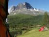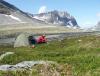 Snøen er dyp. Minnene går tilbake til sist sommer da man kunne gå på gress og tørt fjell. I anledning av en lune (jeg trakk meg fra en tur som ble for luftig for meg) fikk jeg fire dager for meg selv i området rundt Innerdalen. Heldigvis hadde noen et telt å låne bort, et ti år gammelt Stetind. Sikkert ikke helt vanntett, men... Jeg startet fra Innerdalshytta – hvor det faktisk lukter kloakk hvis du ligger på feil sted på teltplassen – en skjønn formiddag og begav meg sørover gjennom Giklingdalen. Jeg gikk forbi Storvatnet og slo en tidlig leir et par kilometer nedenfor ved Langvatnet. Der lå jeg i to netter og gjorde ingenting. Mye sommerjobbing måtte hviles ut av systemet. Dette fungerer utmerket i naturen, dårligere hjemme. Deilig å være alene, og i slikt vær, da. Strålende sol og sterk varme. For å slå ihjel tid tok jeg mange bilder av fluer (se bilde nedenfor for å se et resultat). Etter to dager gikk jeg videre i solskinnet, sørover mot Sunndalen, så et stykke langs den i vestlig retning, for deretter å gå mot Innerdalen igjen via Tverråvatnet og skaret mellom Storsalen og Storsomrungnebba, hvor jeg noen kilometere senere fant en ypperlig teltplass ved det enslige vannet som ligger rett vest for 1720-toppen til Storsalen (se siste bilde). Derfra hadde jeg utsikt over deler av Innerdalen og mot fjellene i nord og nordøst. Jeg husker at jeg neste morgen våknet ved 10-tiden, spiste frokost rundt 11, sov så frokost en times tid og fikk endelig fart på primusen etter at behovet for kaffe hadde vekket meg. Jeg drakk min typisk sterke kaffe og strakk meg så lang jeg var. Det gjorde jeg i et par timer, hvilket forøvrig ikke var en eneste time for lite. Jeg samlet omsider mitt pikk og pakk og kom meg avsted ved 15-tiden. I høyt tempo, vel og merke, for kreftene hadde for alvor kommet tilbake. Personlig synes jeg at selve Innerdalen er overvurdert (for mye grønt buskas og for smal), men jeg liker området rundt – ihvertfall det jeg gikk i – ganske godt.