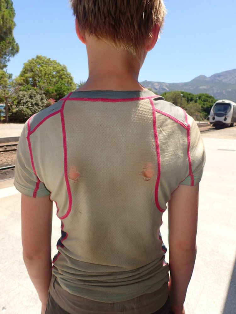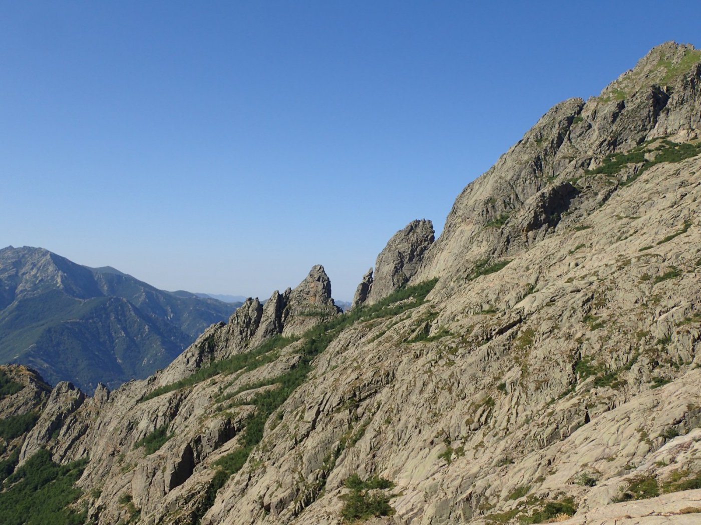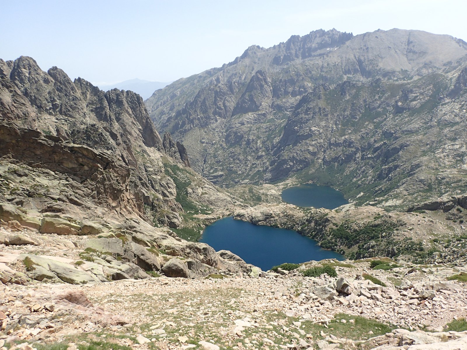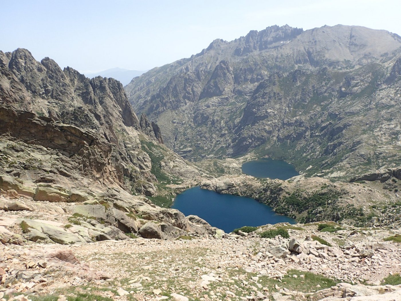 Sommerens familieferie skulle gå til Korsika, og dermed begynte jeg å lete etter en passende fjelltur for 12-åringen og meg. Det tok ikke lang tid før jeg landet på GR20, Korsika på langs gjennom fjellene. Mye er sagt om den turen, og den er blant annet kaldt Europas tøffeste fjelltur. Det er en heftig overdrivelse. Jeg tror 30 000 personer går turen pr år, og det er godt merket og tilrettelagt. Man merker godt at dette ikke er Norge og at allemannsretten ikke eksisterer. Turen er delt inn i 16 etapper mellom hytter som tilbyr overnatting (inne på hytte må bookes, telt kan også leies) og teltplasser, samt serverer mat og har små butikker. Villcamping er ikke tillatt. Dagsetappene er beregnet til 5-8 timer uten pauser. Dermed ble også turen en langt mer sosial opplevelse enn det vi er vant til hjemmefra. Vi traff stort sett de samme menneskene ved hver leirplass, og det bragte en ekstra dimensjon til turen. Noen var svært turvante, andre slett ikke. Alle var hyggelige, og særlig vi som ikke snakker fransk slo oss sammen til en liten gjeng. De fleste går turen fra nord til sør, men av logistikk-hensyn valgte vi motsatt retning. Som vegetarianere var vi skeptiske til matserveringen, og jeg pakket derfor med meg mat for 10 dager. Det innebar åpenbart en langt tyngre sekk enn de aller fleste jeg møtte. Det er ofte begrenset tilgang på vann i løpet av dagen, så det må også bæres. Sekken nærmet seg vel 25 kg de første dagene, og det var ganske heftig i +35 grader, strålende sol og bratte bakker. Heldigvis ble jo sekken lettere dag for dag, samtidig som formen ble bedre. Vi lærte også gradvis at det var lurt (og verdt det) å stå opp grytidlig for å slippe å gå i den varmeste tiden på dagen. Alle snakket om at den nordlige delen var tøffest, men for oss var det tvert imot. Da vi kom nordover var sekken lett og rutinene på plass, og disse etappene gikk fort og lett. Den beryktede klatring/klyvingen var heller ikke på langt nær så utfordrende som vi hadde forventet. Da vi kom omtrent halvveis, ble 12-åringen syk. Hun fikk høy feber en ettermiddag, og vi endte med å villcampe i to netter. Det var ikke snakk om å komme oss videre, hun var helt utslått. Heldigvis kom en av våre turvenner forbi neste formiddag med noen kraftigere febernedsettende piller enn de jeg hadde, og det hjalp en del på formen. Ut på kvelden fikk hun i seg litt mat, og vi snakket om å prøve å komme oss til neste hytte (litt over en halv etappe) neste dag. Hun fikk fortsatt vidunderpillene, men da gikk det overraskende greit og vi var på l'Onda allerede kl 12. Der var det ingen skygge og lite fristende å henge rundt helt til kvelden. Vi trodde også at våre venner var på neste refuge, og etter å ha satt til livs hver vår gode omelett og litt brus bestemte vi oss like godt for å gå løs på en etappe til. Vi valgte den alpine varianten over en del fjellrygger til Petra Piana. Fordelen med å følge ryggene var selvsagt at vi fikk litt vind, og dermed ble ikke varmen alt for slitsom. Akkurat denne etappen var dessuten veldig fin, med flotte utsikter og ikke alt for bratte stigninger. Skuffelsen var stor da vi ikke så noen kjentfolk i leiren da vi endelig kom fram, og vi lurte på om alle hadde doblet og dermed fortsatt var en etappe foran oss. Følgende dag fra Petra Piana til Manganu var riktig spektakulær, men 12-åringen var nok fortsatt litt preget av sykdommen og at vi hadde gått så langt dagen før. Det var skrekkelig varmt og hun var sliten og lei. Det hjalp litt da vi møtte noen som klagde over vanskelig terreng og klyving, og enda mer da vi plutselig så Anu et godt stykke foran oss. Anu var ei indisk jente vi hadde holdt følge med hele turen og det var hun som ga oss de febernedsettende tablettene. Dermed kom entusiasmen fort tilbake, vi måtte ta henne igjen for å si takk for hjelpen! Så var det klart for turens lengste etappe. Fra Manganu til Cittolu de Mori var det i følge guiden 27km. Heldigvis var det ikke så mye stigning, så det gikk veldig greit. Vi hadde også en lang og herlig lunch på et hotell i Castel de Vergio, og det ga bra med energi videre. Etter en kort dag videre, var det tid for den mest omdiskuterte etappen på hele turen: Fra Tjiughetti til Asco, over skulderen til Monte Cinto på 2607m. 12-åringen hadde mast hele veien om å ta turen oppom toppen også (2706m), men ryktene tilsa at det var ganske langt dit (jeg hørte opp til 3t ekstra) og jeg hadde derfor vært forsiktig med å love noe. Etappen i seg selv skulle også være lang, og ikke minst var det risiko for torden på ettermiddagen. Det betydde en grytidlig start, og vi var på vei oppover før klokka var fem. Det var stjerneklart mens vi pakket teltet, men omtrent samtidig som vi begynte å gå skyet det over og vi hørte torden. Uværet holdt seg heldigvis på god avstand, men vi fikk tåke og litt regn på vei oppover, men også en flott regnbue. Da vi nådde Point de Ebolie, der vi eventuelt kunne gå til toppen, var være guffent. Tåka kom og gikk, det blåste heftig og steinene var våte etter en regnskur. Jeg syntes ikke vi kunne gå utenfor ruta, og ville heller sikre at vi kom oss ned i gode forhold. 12-åringen var skuffet, og det ble ikke bedre da det klarnet opp mens vi var på vei ned. Rett før vi var nede braket det varslede tordenværet løs, og det var voldsomt. Vi var blant de første som kom over fjellet den dagen og rakk akkurat å få opp teltet og før et intenst regnvær. Det kom delvis som hagl på fjellet, så der var det lite trivelig. Mange som fortsatt var på vei opp endte med å snu, og de som var på vei ned fikk en ganske strevsom tur. Vi var i grunnen heldige der. De to neste etappene var veldig fine, og særlig den fra Caruzzo til Piobu var spektakulær. Terrenget er vilt og ser nærmest ufremkommelig ut, men det er god sti og bare litt klyving innimellom. Det er også lagt ut kjetting på de mest krevende punktene, men på tørt fjell 