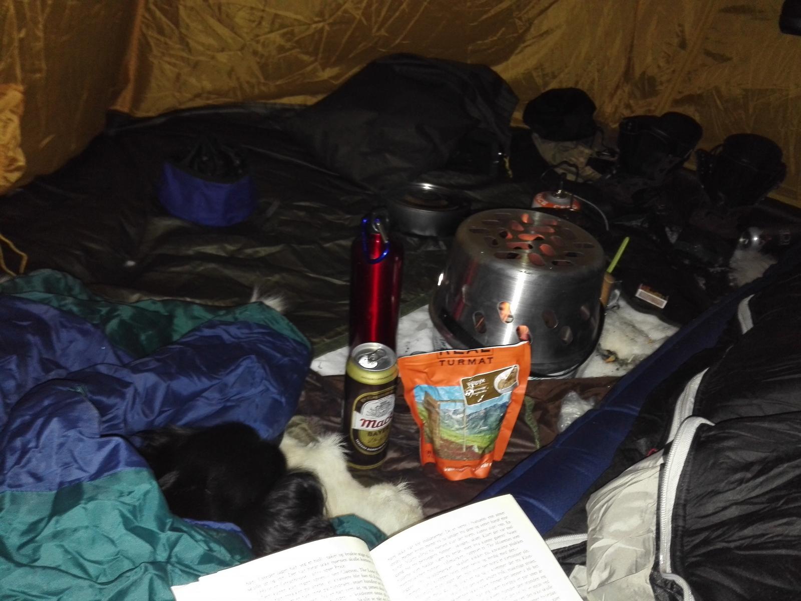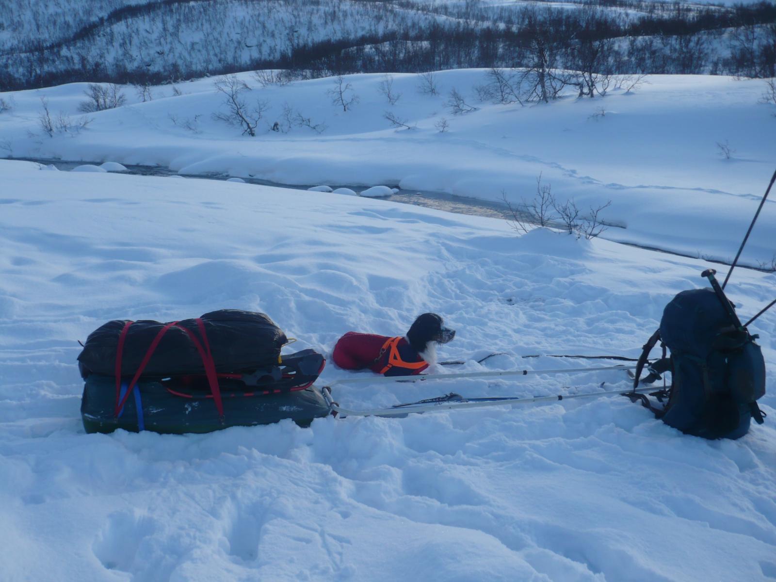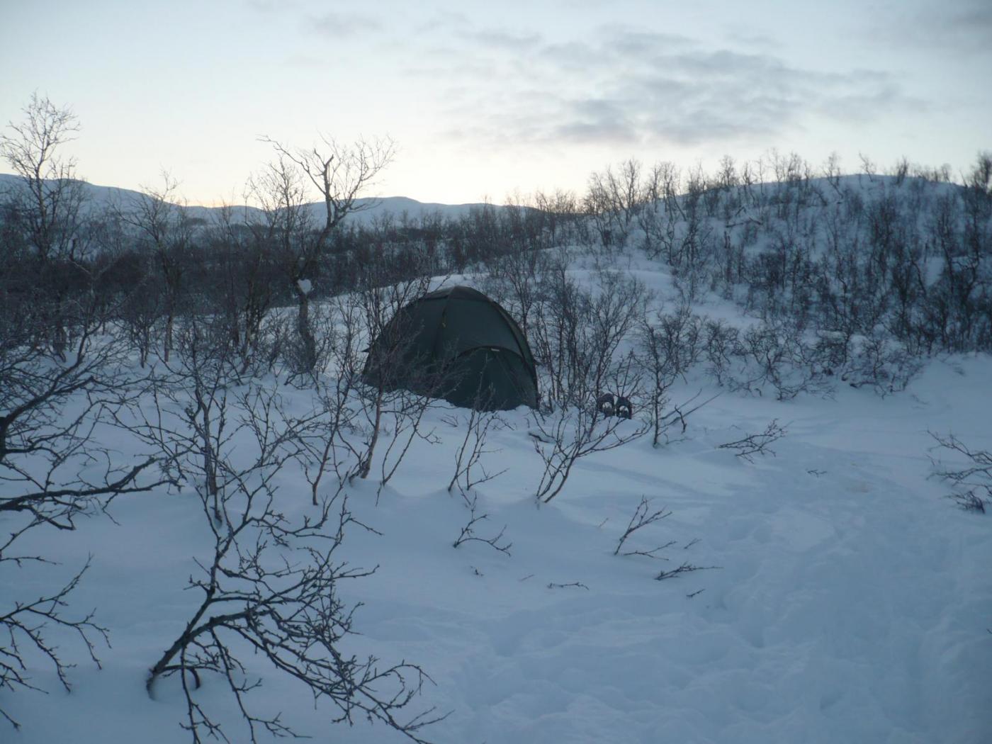 Etter flere slitsomme dager på jobb hvor man virkelig kjenner på den kaotiske hverdagen av moderne tid melder behovet seg for å forlate det en for et øyeblikk, nyte livet slik man er skapt å gjøre det. Har en to dagers fri før arbeidshelg og det tar ikke lang tid før planen er spikret, det blir isfisketur på yttersida (Ringvassøya). Pulk og sekk blir nøye pakket, gleder meg stort til å prøve ut nytt utstyr som er handlet inn (Heatpal spritbrenner, Mammut King Size Pump Mat og ny sovespose). Været er upåklagelig, blå himmel og sol, idyllen er komplett når jeg ruller i stasjonsvogna utover øyriket. Endelig, jeg glir innover dalen med oppakkningen min mens Leo (en lykkelig eng.setter på litt over året) trekker ivrig i båndet. Det er tjukt av ryper så fokuset til bikkja er så som så i fht retningen jeg prøver å holde. Lyden av skiene og pulken som glir over snøen er magisk, det er lykke og idyll der jeg gliser fra øre til øre mens jeg speider utover et vakkert landskap. Så skjer det som ikke skal skje, en kort lyd av et feste ryker og all motstand fra pulken forsvinner. Jeg oppdager til min fortvilelse at festet mellom draget og hoftebeltet er ødelagt og kjenner øyeblikkelig et snev av irritasjon bygger seg opp, men kaster dette til side og lager en provisorisk løsning hvor jeg fester draget til sekken og tenker at dette er bare en liten utfordring som krever en praktisk løsning. Tråkker videre innover med litt mer motstand pga innfestningen av pulken, men det er overkommelig. Så er lyden der igjen, hullene på draget er så skarpe at de skjærer av tauet jeg fester med. Irritasjonen bygger seg opp, verken sol, blå himmel eller storslått natur kan gjøre noe med dette. Tanken på å snu slår meg, men jeg har bestemt meg for å dra på tur og på tur skal jeg da faen også. I ren irritasjon trekker jeg pulken for hånd etter meg, ski blir byttet ut med truger og jeg fortsetter innover. Det er blytungt og jeg får meg en skikkelig formsjekk, gjennomsvettet og med blodsmak i kjeften setter jeg camp litt tidligere enn planlagt. Jeg har i bakhodet at jeg må dra pulken for hånd tilbake også og gidder ikke dra nedover skogen til det opprinnelige målet for turen, men finner meg en fin plass som duger. Teltet kommer opp og utstyret inn før jeg tar isboret fatt og drar på isen, fisker litt uten noe lykke før jeg setter ut tre pilker og stikker til teltet. Det er på tur til å bli mørkt ute og magen forteller meg at det er påtide med påfyll snart, inne i teltet er det fin temp og jeg konstaterer at min nye Heatpal fungerer glimrende. Det er nok under ti blå ute nå, men med reinskinn i bunn og Mammut liggunderlaget oppå har jeg det ordentlig komfortabelt. Livet smiler og idyllen er tilbake, det er vindstille ute, stjernehimmel og nordlys som danser elegant innover dalen. Etter en kopp kaffe og litt avslapping i teltet stikker jeg nesa ut i kulda for å hente vann til matlaging og til morgendagen, Leo springer ivrig rundt omkring i mørket under stjenehimmelen. Livet er perfekt tenker jeg mens jeg fyller vann og trekker inn den kalde fjelluften som stikker i nesen. På tur tilbake til teltet roper jeg på bikkja men uten at noen hund dukker opp, jeg plystrer og roper flere ganger uten reultat. Dette er unormalt for en ellers så kontaktsøkende unghund, selv med en jaktiver over gjennomsnittet kommer han alltid inn på innkalling. Irritert over at middag blir utsatt får jeg på meg hodelykt og truger og vandrer i sporende til bikkja innover fjellet mens jeg kaller han inn. Etter en god halvtime roping og leting dukker det opp noe som ligner en hund men minner mest om en levende isklump. Bikkja har vært ute i vann! Han har blitt gjennomvåt og dressen er blitt et kompakt lag av is som dekker hele hunden. I redsel og frustrasjon roper jeg ut i den klare kvelden; HVA I HÆLVETE!! Bikkja er seriøst nedkjølt og det bærer i hu og hast tilbake til teltet, dressen må skjæres av hunden som rister og peser. Kommer oss inn i teltet og får av meg selv klærne, legger bikkje oppå meg selv inni min sovepose for å varme han opp. Det er som å ha en stor istapp oppå seg som rister, både Heatpal og Omnifuel går for fullt og det er sikkert 30 grader i teltet men føles som minus ti. Frustrert og forbannet på bikkje ligger jeg der og forbanner hele verden, vi er nå begge kalde og våte, soveposen min er våt og jeg er svært lite fornøyd med livet, Etter en stund har bikkja fått varmen og det er mer klamt i soveposen enn vått og kaldt, får på meg selv tørre ullklær og baller bikkja inn i varmetrekket sitt, en barnesovepose (som jeg heldigvis hadde tatt med om det skulle bli "bikkjekaldt" for kjøtern) og jakken min før jeg legger han på reinskinnet som ligger parallet med toppen av mitt. Til nå har det som kan gå galt gått galt, jeg åpner en øl som en liten trøst mens jeg koker vann til kaffe og mat, i dette øyblikket innser jeg at jeg faktisk like fort kunne blitt fri for hund, det kunne altså vært verre. Jeg legger meg på posen som er åpnet for å tørke så godt som mulig, finner frem boken min og leser litt mens vannet koker opp. Humøret stiger raskt ettersom varmen kommer tilbake og ølen blir tom, bikkja ligger ved min side og sover tungt, rypesteggen kjefter omkring ute i den klare vinterkvelden og livet er plutselig ikke så verst lengre. Maten smaker fortreffelig mens den skylles ned med en kald Bayer som heller ikke smaker fælt. Så glider jeg igjen posen mett og god, ligger på rygg og leser en tid før jeg slår av lyset og sovner så fort og tungt som en sliten kropp kan. Natta er svinkald utenfor, noe jeg finner ut når jeg våkner midt i natta og kjenner at noe øl må forlate kroppen. Det er sikkert mellom femten og tjue blå ute og på dette tidspunktet også i teltet, Leo åpner så vidt på et øye idet jeg karrer meg ut av teltet. Alt er plutselig magisk, stjeneklart, vindstille og et vanvittig nordlys som danser p