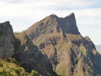Fogo – Pico de Cano 2829 meter For et års tid siden lå jeg med store smerter på sykehus i 10 dager uten at å få noen diagnose. Min kjære frue kom hver dag på besøk og vi snakket sammen om at hvis jeg ble frisk igjen, så skulle vi reise sammen til et fint sted – bare vi to. Sykehusets svar på doktor House løste etter hvert gåten og ga meg noen ukers kur mot borrelia. Helt frisk har jeg enda ikke blitt, men noen fjellturer har det blitt – uten at Fruen har blitt med. Kapp Verde var en plass hun kunne tenke seg å reise til, og reise ble bestilt. Vi fløy med TAP til hovedstaden på Kapp Verde, Praia. Dette er en litt bråkete by, så dagen etter bar det av sted til hotell Xaguate på naboøya Fogo. Her er ca 27-28 grader døgnet rundt – året rundt, ganske behagelig egentlig. Etter litt akklimatisering på hotellet fikk vi tak i en leiebil som tok oss frem delvis på tradisjonelle brosteinsveier, noe asfalt og innerst mot fjellet bare et hjulspor innover. Ut fra hovedbyen på Fogo., Sao Felipe, ble vi stoppet av en politimann. Han spurte hvor vi skulle og den slags, og etter hvert skjønte vi at han ville tilby seg selv som turguide og var i ferd med å hoppe inn. Vi takket net til tilbudet, slik at han kunne fortsette i tjenesten med å overvåke trafikken. På vei oppover måtte vi flere ganger stanse for å møte andre biler og ved ett av disse stoppene fikk vi med en blindpassasjer på planet på pickupen. Jeg bremset opp og bremsene tok godt, så godt at fyren gikk på hue i bakruta og knuste solbrillene. Han fikk nå likevel sitte på og banket etter en stund, så satte vi han av. Rundt neste sving ventet en liten familie med en liten unge. De fikk sitte på helt opp til kraterkanten på det store krateret der de banket i ruta og fikk hoppe av. Da vi kom frem så vi at det var tegnet flere hjerter i støvet på siden av bilen. De var tydeligvis takknemlige for å sitte på alle de bratte bakkene. Fra landsbyen Portela går et hjulspor i retning nordsiden av Pico de Fogo. Vi parkerte omtrent på det høyeste punktet og fant noen varder og noen spor innover. Rett mot toppen er det bare løs lavasand i forholdsvis bratt helning, så vi fant en sti øst for denne renna som fulgte mer fast underlag oppover. Vi så et par som gikk i løse sanden oppover. De sleit fælt! Da vi nærmest oss kraterkanten kjente vi litt svovellukt og fikk skikkelig vulkanfølelse. Plutselig var vi oppe på kraterkanten og kunne kikke over kanten og bratt ned i krateret der mange har skrevet navn og hilsener med løses steiner på kraterbunnen. Opp til høyre hadde vi toppen, der en bratt og luftig passasje var sikret med en kraftig wire, ellers ingen tilrettelegging på dette fjellet. Dette er nasjonalpark, men det er ingen avgifter, krav til guide eller andre begrensninger så vidt vi kunne observere. Fra toppen så vi sydover mot en stor kloss langs kraterkanten. Var denne høyere montro? Neste høye fjell bakom her var i Antarktis så det var vrient å avgjøre. Utover havet var det skyer, så vi så ikke havet i horisonten. Vi skulle imidlertid ikke se langt nedenfor toppen før vi så de grønne liene nedover mot sjøen, så vi slo oss til ro med at dette var høyest. Angret litt etterpå at jeg ikke gikk opp her også, ettersom det så kurant ut å komme opp her om man gikk nedenom krateret der mange andre hadde vært. En tysk turguide vi ble sittende å snakke med senere mente bestemt at det var den høyeste toppen vi hadde besøkt og støttet våre teorier. Google maps har også den nordvestre toppen som høyest. Nedturen i de bratte dynene med løs lavasand var en artig opplevelse som gikk unna på svært kort tid. Underveis nedover møtte vi de 2 som holdt seg til den løse sanden hele veien. Det var unge og spreke folk så det ut til, men likevel var de bare kommet 2/3 opp da vi møtte dem. Vi anbefalte dem steinete å komme seg inn på mer steinete partier av ruten før vi forsvant i stor fart videre nedover. Dette var gøy! Totalt brukte vi 4 timer på turen og vi tok det med ro hele veien. Ca 3 timer opp og 1 time ned. På vei tilbake til Sao Felipe kjørte vi en annen vei langt oppe i lia – en flott avslutning på denne toppturen. Som forberedelse til turen hadde vi kjøpt turkart for Fogo og Brava på nett, kjekt å ha for neste topp. Brava – Fontainhas 974 meter Brava er den minste bebodde øya på Kapp Verde og den eneste uten flyplass. Båtforbindelse 3 ganger i uken er eneste kontakt med omverdenen, og overnattingssteder er det smått med. Vi lyktes til slutt med å oppnå kontakt med et lite motell på Faja de Agua, som ligger ytterst. Dit kom vi etter en kort båttur fra Fogo og en tur med minibussen over øya. På Burgo Motel var det koselig, og en kjempekakerlakk tok imot oss på badet der. På dette lille stedet var det ikke mange mennesker, men vi møtte et nederlandsk par som hadde signert kjøp av et hus her ved verdens ende. Planen deres var å bo og leve her resten av livet. De hadde flyttet fra hjemlandet og skulle livnære seg her som bønder med manuelt arbeid på lik linje med de lokale. Meget tøft gjort! Oppholdstillatelse hadde de enda ikke fått, men dette skulle være enklere å ordne når bare de hadde kjøpt seg en eiendom – håpet de! Vi gikk opp den fine dalen til den lille fjell-landsbyen Nova Sintra da Monte som ligger på ca 600-800 meter, og like bakom ligger Fontainhas – øyas høyeste fjell. Toppen kan selvsagt nås enkelt fra landsbyen, men vi valgte å gå stien opp fra sjøen og fikk en noe lengre tur ned igjen på brostensbelagt vei. Utrolig med veiarbeid her oppe for denne veien som går til en liten stripe hus. Etter turen så vi frem til å bade i et naturlig svømmebasseng som ligger 1-2 meter over havnivå og får jevnlig utskiftning av vann fra havet. Kysten på Brava er ikke spesielt egnet for bading, her er ingen strender, men dette stedet skulle være en perle. En flokk mennesker var samlet rundt badekulpen med grill, gri