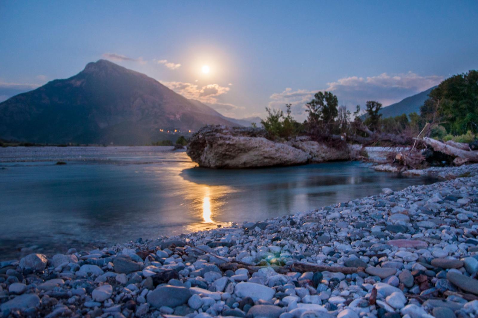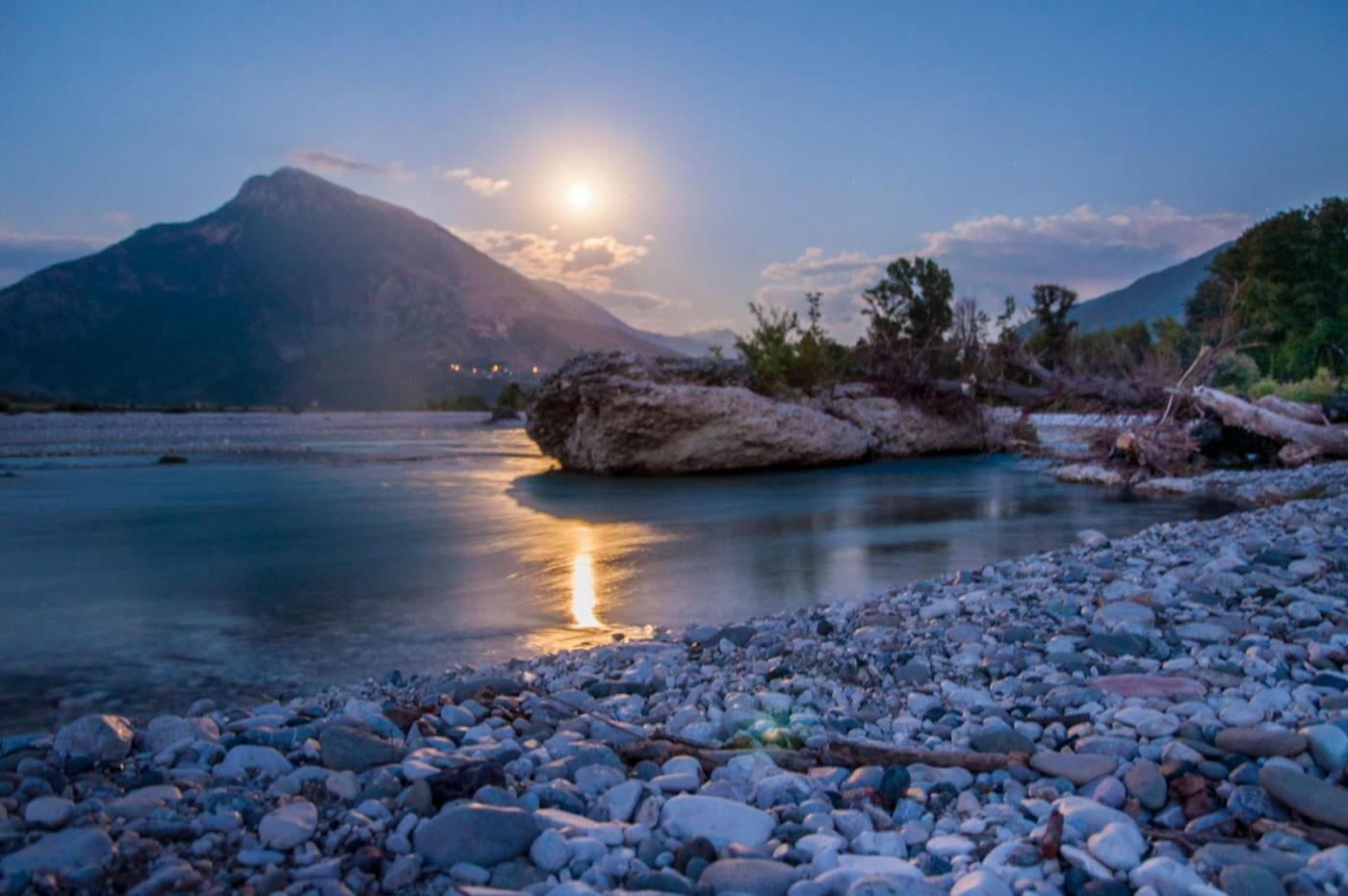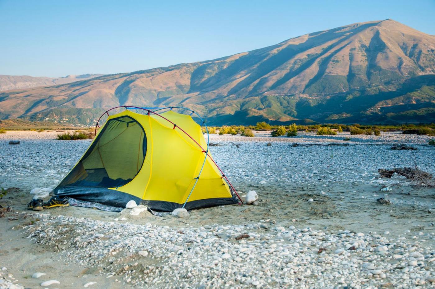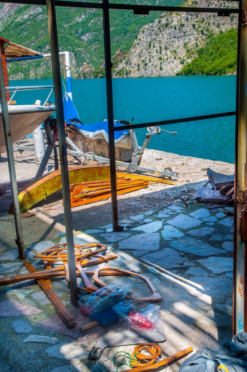 Denne sommeren tok jeg og en vennine fra Nederland en tur til Albania for å padle kajakk langs Vjosa, og Komani-vannet. Det hele startet med at jeg ville besøke henne i Longyearbyen hvor hun studerer. Jeg har aldri vært på Svalbard, og har fortsatt et stort ønske om å ta en tur dit. Turen til Svalbard skjedde altså ikke, det klaffet aldri med hennes studier og mine, samt flybillettprisen. Da det viste seg at dette ikke gikk, foreslo hun heller å finne på noe i sommerferien. Mange ideer ble slengt ut, og vi endte først opp med å haike Frankrike på langs, deretter såg vi på diverse fjellturer rundt Chamonix, og på litt flatere områder på grensen til Spania. Hun kunne etter hvert meddele at hun hadde skadet kneet sitt, så fjellturer ble dessverre utelukket. Fokuset skiftet fort over på padling og vi sto en god stund fast med å haike frankrike på langs og ende opp i Marseille, hvor vi kunne leie kajakker og padle rundt om langs kysten der. Etter iherdig gransking av google maps, la hun merke til Vjosa i Albania. Dette ble slått opp og bilder fra elven såg helt fantastiske ut (bare søk selv!). Spikeren ble hamret og flybilletter til Amsterdam ble bestillt. Nå gjensto det bare å få tak i en kajakk... Det var ingen som leide ut kajakker i området rundt Vjosa, eller som hadde mulighet for å frakte kajakker dit. Etter mye frem og tilbake, fant hun en ganske gammel sammenleggbar kajakk med trerammer. Det sier seg selv at denne ikke var direkte lett å drasse med seg, men det skal jeg fortelle mer om senere. Jeg ankom Amsterdam, tok toget til Zwolle den 12. juli. Her brukte vi noen dager på å fikse kajakken. Lappe litt og lime på ny bunnduk. Vi impregnerte også bomullstrekket på oversiden. Kajakken var blitt litt skjev over de siste 40 åra, så vi måtte finne en løsning for å korrigere dette. Alt i alt, det gikk et par dager før vi satt oss på toget mot Bremen i Tyskland hvor vi skulle møte noen felles venner av oss, avgang 15.juli. I Bremen var vi i to netter. Så begynte togturen turen mot Albania. Fra Bremen reiste vi via Hanover - Basel - Luzern - Milano - Bologna og til Bari. Her tok vi båt over middelhavet til Durrës, Albania. Ankomst 19. juli. Herfra var det å finne korteste vei til Tepelëne, hvor vi hadde sett for oss at det var fint å sette ut båten. Det var ikke så lett, da det ikke fantes noe god informasjon å finne, og bussene vi såg gikk bare til de større byene langs kysten, og hovedstaden Tirana. Etter en liten stund kom det en mann opp til oss og spurte hvor vi ville. Etter noe om og men (Tepelëne er ikke akkurat noen turistperle), fikk vi forklart at vi måtte finne bussen til en annen litt mindre by, og derfra ta minibuss resten. Minibusser gikk visst hele tiden, helt uten noe tidsskjema, og vi måtte bare stille oss langs veien i riktig rundkjøring og vinke når vi såg navnet på en papirlapp i vinduet. Vi kom oss frem, fikk drasset med oss alt pakket ned til elven, spiste mat og sov en natt før vi monterte sammen kajakken. Lokalbefolkningen var kjempehyggelige, og vi pratet mye med forskjellige folk. Stort sett alle som hadde gått noen år på skole, og ikke var for gammel, kunne engelsk, og kommunikasjonen gikk mye lettere enn vi hadde forventet. Vi satte igang nedover elven, endelig. Det var så fantastisk deilig å endelig komme skikkelig igang med turen. Kajakken var god å stabil, tålte vekten av to personer og dertil bagasje, og alt var bare nydelig. Elven Vjosa har mye å tilby. Det er noen få raske stryk, men ellers er elven rolig og lett å padle. Det er veldig lite stener å måtte svinge unna, og de største utfordringene var de mange grunnene vi måtte over. Her var det så grunt at vi måtte ut av båten, dra den forsiktig over, og sette oss tilbake når det ble dypt nok. Et par ganger var strømmen så sterk i andre enden, hvor det plutselig ble veldig dypt, at hun som satt bakerst og hadde styringen, og derfor måtte inn først, var den eneste som kom seg inn før båten ble tatt av strømmen nedover elven. Jeg, som da sto igjen, måtte komme meg inn på land, og gå etter langs elvebredden. Det hendte heldigvis bare noen få ganger, og det var rimelig greit å få kajakken inn mot land selv om hun var alene. De aller fleste nettene sov vi i telt langs elven. Vi hadde med oss et to-mannstelt. To-mannstelt til to personer, ja det var litt trangt, men det gikk veldig bra. De andre nettene vi padlet hengte vi bare opp et myggnett og sov under det. På veien nedover Vjosa, møtte vi flere bønder som gledelig delte ut tomater, frukt og ost. Mange av disse bøndene var veldig fattige, men brukte mye tid og krefter på å lage skikkelig fine hus. Litt i kontrast til hva de ellers brukte i det daglige. Før vi hadde kastet loss i Tepelëne, ble vi advart mot marihuanadyrkere, og at de kunne være delvis aggressive. En av de siste etappene før vi hadde planlagt å padle ut i middelhavet, ble vi møtt av en noget stresset mann. Vi hadde fått kajakken godt fortøyd, teltet var satt opp, liggeunderlagene blåst opp, og maten var straks klar til fortæring. Vi brukte vanligvis bål til å lage mat, for å spare på drivstoffet til brenneren. Mannen som kom løpende ned fra det som antagligvis var plantasjen hans, sa at det var et stort problem at vi var der. Bålet kunne tiltrekke seg farlige folk, og han viste oss pistolen sin han hadde for å beskytte seg. Det hadde begynt å bli mørkt, og det ville om få minutter bli så mørkt at det var umulig for oss å se noe særlig ut på vannet. Likevel, han var veldig påtrengende og ble mer og mer stresset. Vi fant ut at vi måtte komme oss avgårde selv om det var natt, elven var heldigvis veldig rolig her, og ville fortsette å være det helt ut til kysten. Kajakken ble pakket i all hast, og vi kom oss ut på midten av elven, i frykt for å treffe stener eller trær som sto ut langs kanten. Etter noen minutter med stille banning, forsiktig padling og diskusjoner om de