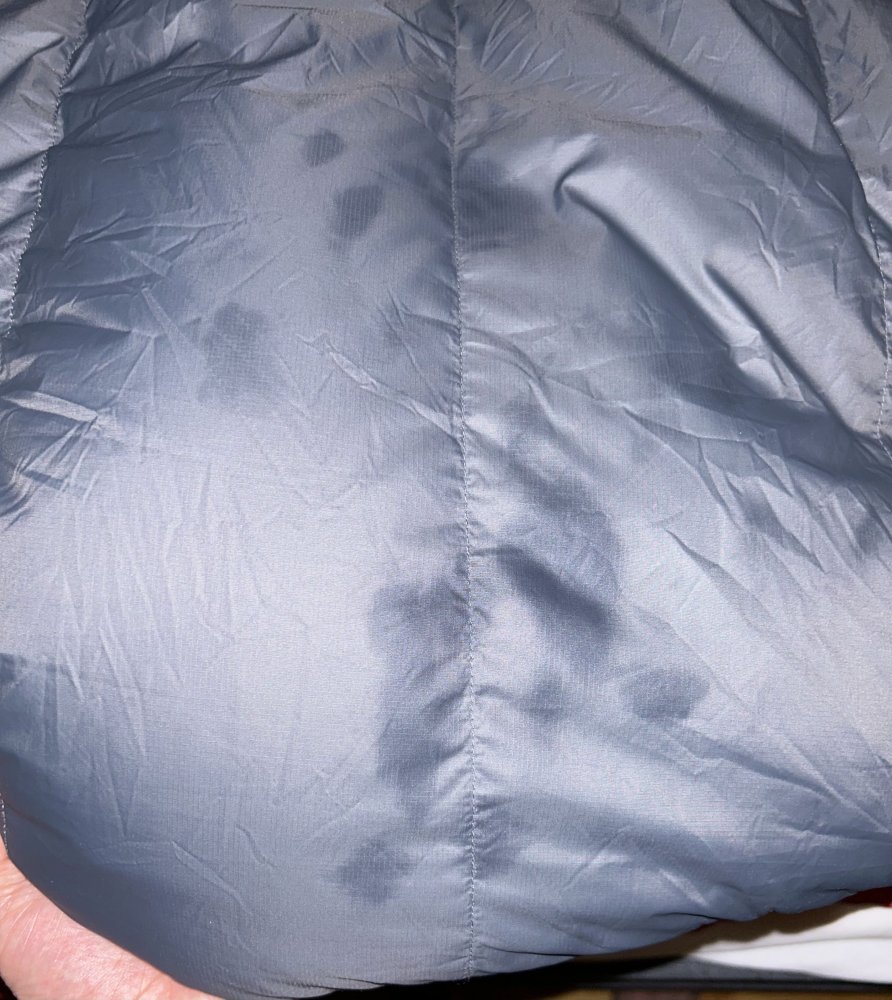 Jeg kjøpte nylig soveposen Helsport Spitsbergen og etter å ha brukt den kun to ganger har det kommet noen fettflekker på posen (trolig familiemedlemmer som har latt posen komme i kontakt med det uvitende da den ble transportert fra fjellet) som minner om matfett. Det var et lite belegg der flekkene var som jeg fjernet, og nå er det noen mørke flekker i et område på posen. Jeg vet ikke når det skjedde eller hvor lenge det har sittet på posen da de som transporterte den hadde den i en uke hjemme hos seg. Er det grunn nok til å skulle vaske soveposen? Jeg vet ikke om fettet trakk igjennom stoffet og inn i dunet, og flekkene er ikke enorme, men den største har en diameter på typ 7cm. Jeg tenker at det vil gå fint, men hva ville dere gjort?