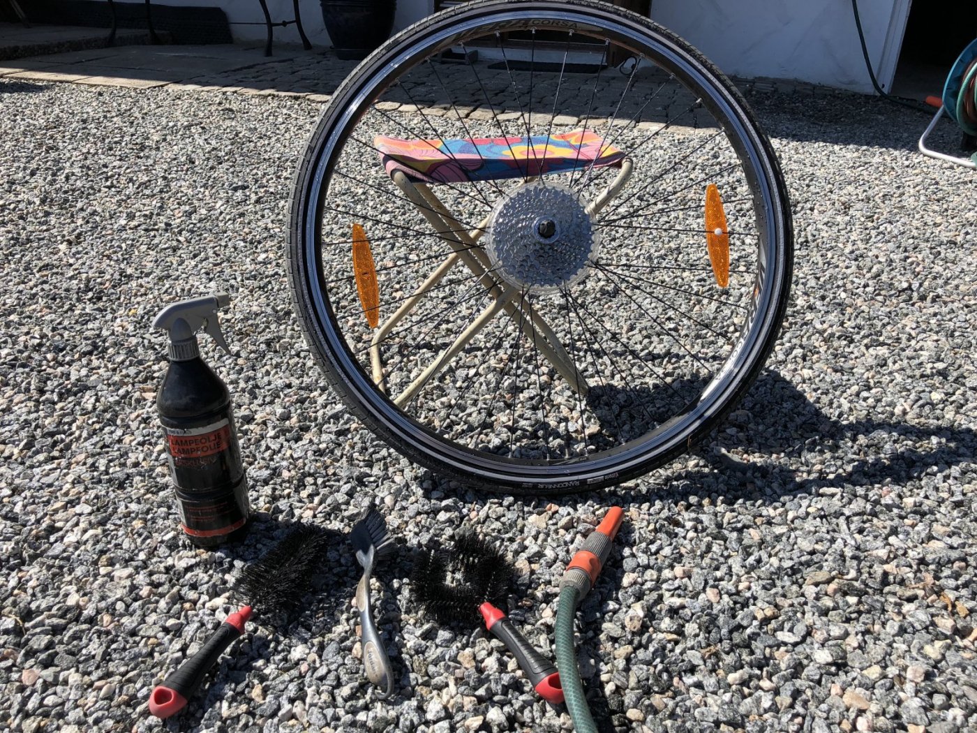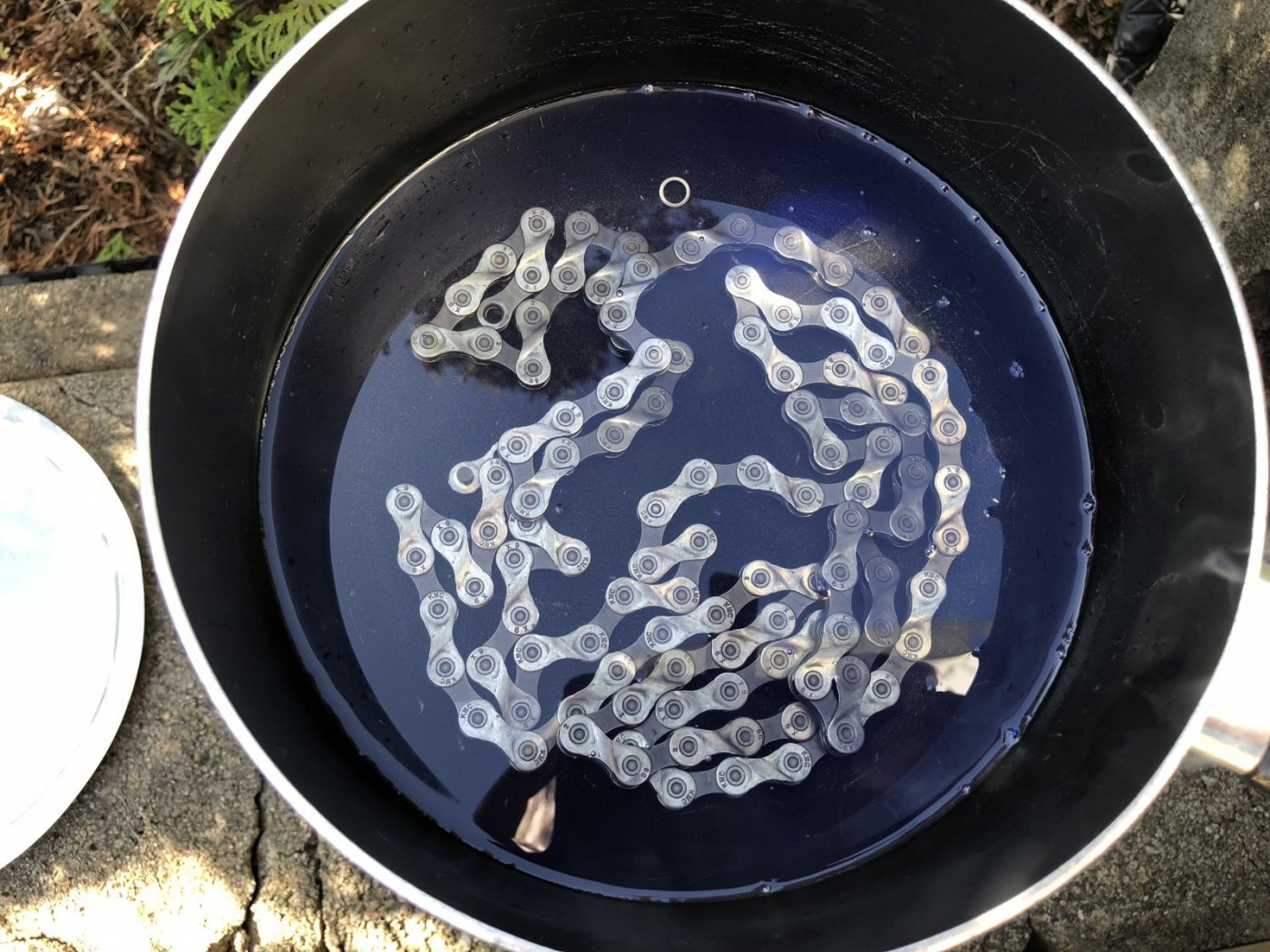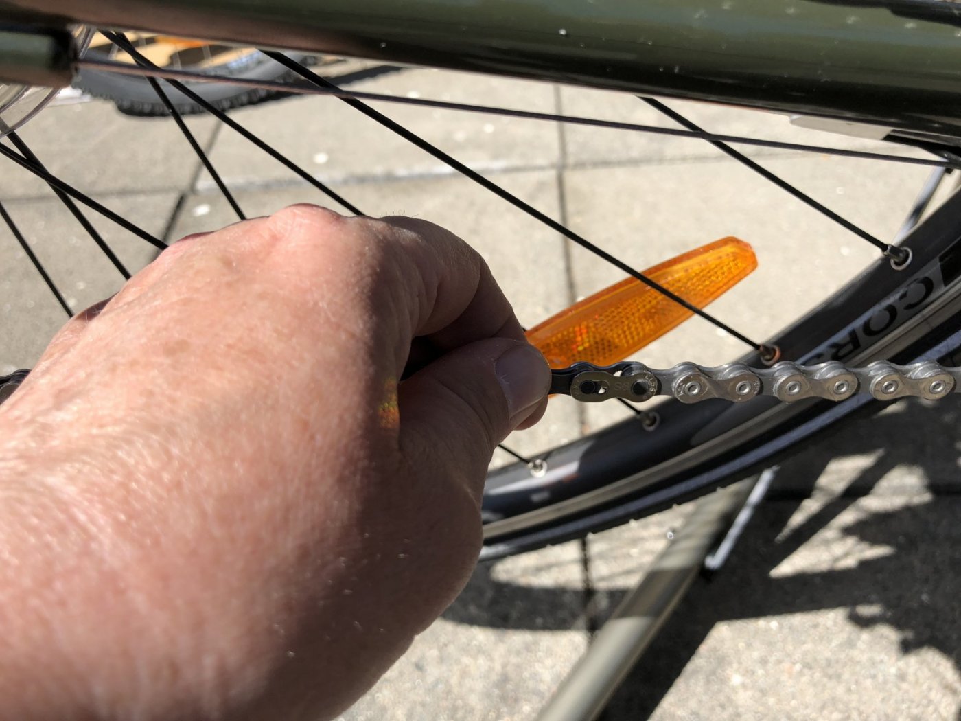 Fra olje til voks Jeg har i alle år oljet sykkelkjedet og det har fungert helt supert. Men innimellom hender det at kjedet gir utfordringer. Som at det kommer innenfor, eller utenfor største, eller minste drev, eller at det rett og slett ryker. Det å fikse problemet underveis resulterer alltid i møkkete hender. På langtur har jeg med engangshansker nettopp til dette formålet, men på dagsturer sjeldent. Hvor bra hadde det ikke vært om kjedet kunne fikses uten bruk av hansker? Jeg skal overhodet ikke ta æren for å være opphav til ideen om å vokse kjedet. Men i min søken etter en løsning på noe helt annet dukket dette snedige tipset opp. Selv om ikke jeg var klar over det har altså voksing av kjedet vært kjent lenge og man kan også få kjøpt et ferdig vokspreparat til en drøy penge. Så, hvor vanskelig kan det være? Og rett og slett lage det selv? Og igjen er nettet den rette plass for ideer og løsninger. Jeg deler inn prosjektet i 4. 1, Rengjøring 2, Produksjon 3, Vokse kjedet 4, Test Jeg startet i går. Men, bare for å ha nevnt det, det tar litt tid, første gang. Når kjedet først er vokset vil revoksing kun ta den tid det tar å få av kjedet og opp i voksbadet + tørk og påsetting. Og det skal etter sigende være atskillig lettere å holde et vokset kjede rent. Visst du som meg bruker ditt gamle kjede er rengjøringsprosessen, ikke arbeidskrevende, men tidkrevende. For å spare tid er det like greit å starte med nytt, rent kjede og hoppe rett til punkt 3. 1, Rengjøring: Ta dette på alvor. For et bra sluttresultat er rengjøring av kjede, krankdrev og kasset + løpehjul helt avgjørende. Begynn med å vaske sykkelen slik du pleier. Ta av kjedet og legg dette og eventuelt kjedelås i et glass med bensin. Rist litt på glasset en gang i blandt mens du fortsetter med resten Ta av bakhjulet og rengjør kassetten grundig. Jeg bruker lampeolje til skikkelig møkkajobber. Bruk sprayflaske, pensel, eller børste. Lampeolje er effektiv fettfjerner og du vil ikke vaske ut fettet i frikransen så pass på. Spyl av med hageslange, ikke høytrykk, mens du legger hjulet litt på skrå med kransen ned. Tørk av med med ei fille også mellom drevene. Løpehjul og krankdrev kan rengjøres der de er selv om det er lettere når det er demontert. Surr ei fille rundt en skrutrekker eller lignende og fjern alt av gammel oljesand og skitt. Dynk ei fille i lampeolje og rengjør mellom krankdrev og det samme med løpehjul. Spyl og tørk av så alt er som nytt. Visst du nå har sørget for rikelig tid til kaffe underveis er det nå kveld og da fyller du et nytt glass med bensin. Siden det nå er en times tid siden sist du ristet på glasset har mye møkk sunket og lagt seg på bunnen av glasset. Fisk opp kjedet og kjedelås uten å virvle opp for mye grums og senk kjedet i det nye bensinbadet. Rist det nye glasset noen ganger igjen før du setter det fra deg og fortsetter i morgen. Neste dag er det tid for ny risting. Rist 2-4 minutter på glasset og la det så stå i ro. Gjentas med ujevne mellomrom, mens du forbereder produksjonen av voks. 2, Produksjon av voks: Ikke gjør dette inne. Og vist du gjør det så bruk svak varme på plata. Dette er hva du trenger for å lage din egen voksblanding. F.eks. en gammel primus, en gammel kjele, en kniv, litt ståltråd, en fille og noen stumper stearinlys og litt parafinolje. ( Den blå kanna i midten på bildet, skal ikke brukes nå, da den er tenkt brukt for å lage voksblandingen du skal ha med deg på tur. Altså for ettersmøring av kjedet under veis.) Sjekk fargen på bensinglasset. Er bensinen på nytt blitt grå, eller svart fylles et nytt glass med bensin og du flytter kjedet over til dette glasset. Fyr opp primusen og legg stearinlysstumpene i kjelen. Etter en stund er stearinen smeltet og du kan fiske ut vekene. IKKE bruk for sterk varme. Når stearinen er flytende heller du i like mye parafinolje som det er stearin i kjelen, mens du rører med kniven. Som et greit utgangspunkt kan det altså være like mye stearin som parafinolje. Etter hvert kan du prøve deg fram med mer eller mindre til blandingen blir perfekt.. Rør så det er godt blandet og bruk knivbladet til å kontrollere blandingens konsistens. Løft kniven og la blandingen stivne på bladet. Den har rett konsistens når den lar seg smøre utover med fingeren. Ikke for hard og ikke for myk. Sjekk fargen på bensinglasset igjen. Bensinen skal være helt klar og er den ikke det, fylles et nytt glass og prosessen fortsetter til kjedet er fullstendig rent. 3, Voksing av kjedet: Ta kjedet ut av bensinbadet og bruk en varmepistol, eller hårtørker til å hurtigtørke kjedet. Dette for å unngå at rustprosessen starter og for ikke å bringe bensin over i voksbadet. Senk kjedet og eventuell lås ned i voksblandingen og rør kjedet litt fram og tilbake fra tid til annen. Det vil komme noen luftbobler nå, men disse er fra kjedet og skal ikke være fordi blandingen er i ferd med å koke. La det ligge og godgjøre seg fra 15 - 30 minutter mens du innimellom flytter kjedet litt rundt for å sikre at blandingen trenger inn over alt. Nå skal kjedet ut av badet. Finn fram ståltråden som du har bøyd til, slik at du kan få fisket opp kjedet. Det kan være varmt så bruk hansker og ha en ren fille klar. Her er temperaturen viktig. Er blandingen for varm vil for mye renne av kjedet før det stivner og kjedet vil da ikke være godt nok smurt. Er blandingen for kald får du en kjempejobb med å tørke av overskytende. Da er det bedre å fyre opp primusen og varme opp på nytt. Jeg prøvde litt fram og tilbake og det så ut til at drøye 50 grader i blandingen ga greit resultat. Få kjedet ut av badet og la det gli gjennom filla. Tørk godt av i hele kjedets lengde. Fram og tilbake flere ganger til det kjennes ut på samme måte som når du holder et stearinlys i hendene. Det skal være «tørt» og rent på utsiden. 4, Test: Monter kjedet tilbake på sykkelen. Noen kjeder er retningb