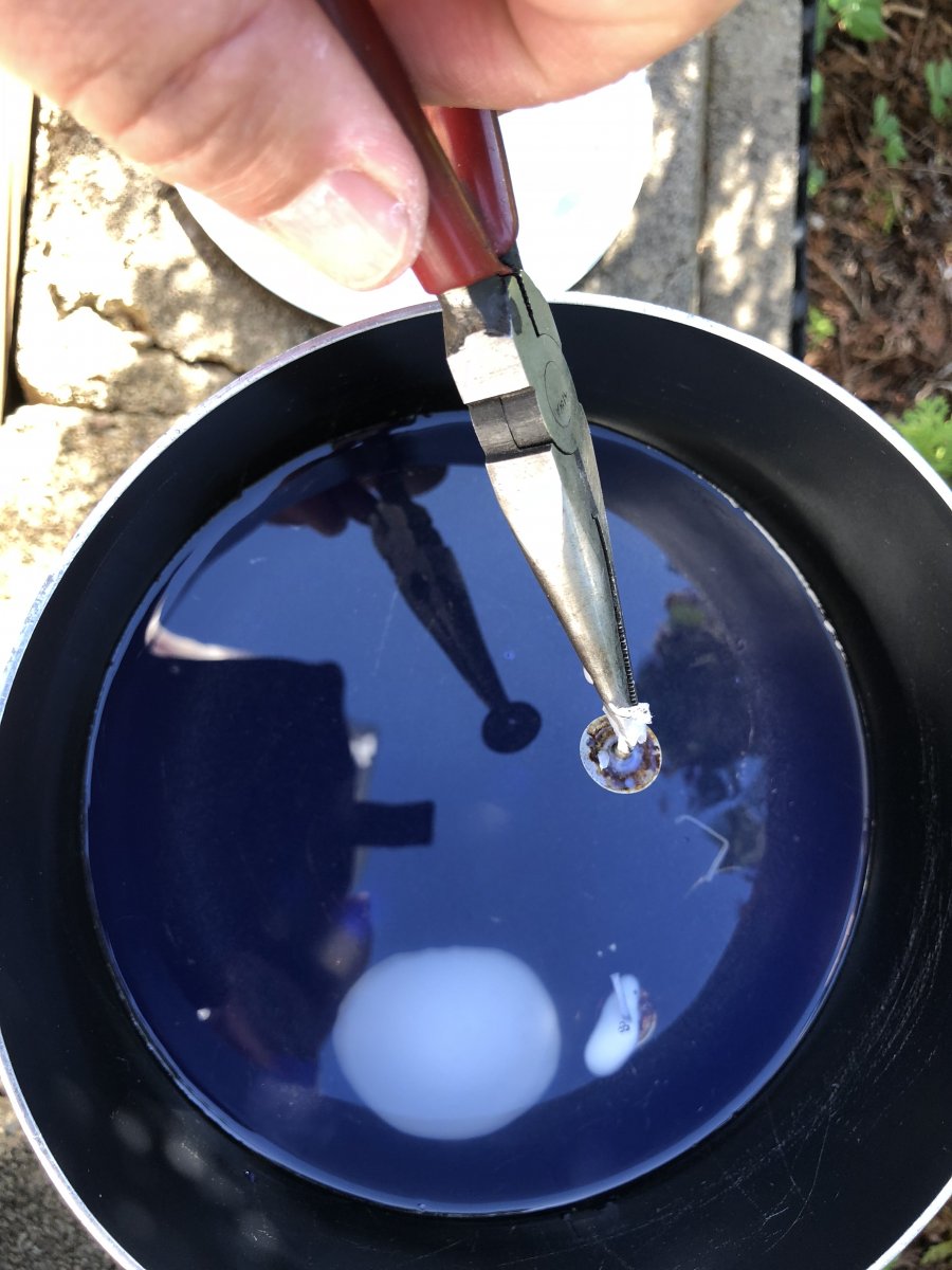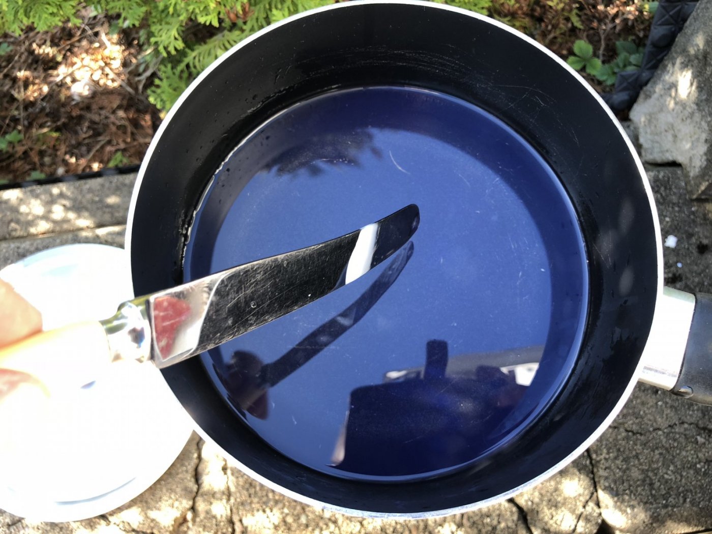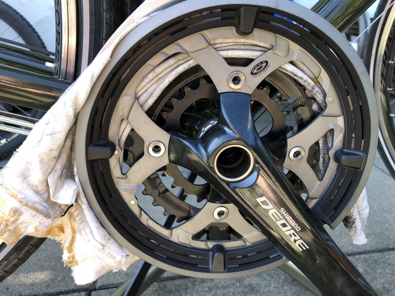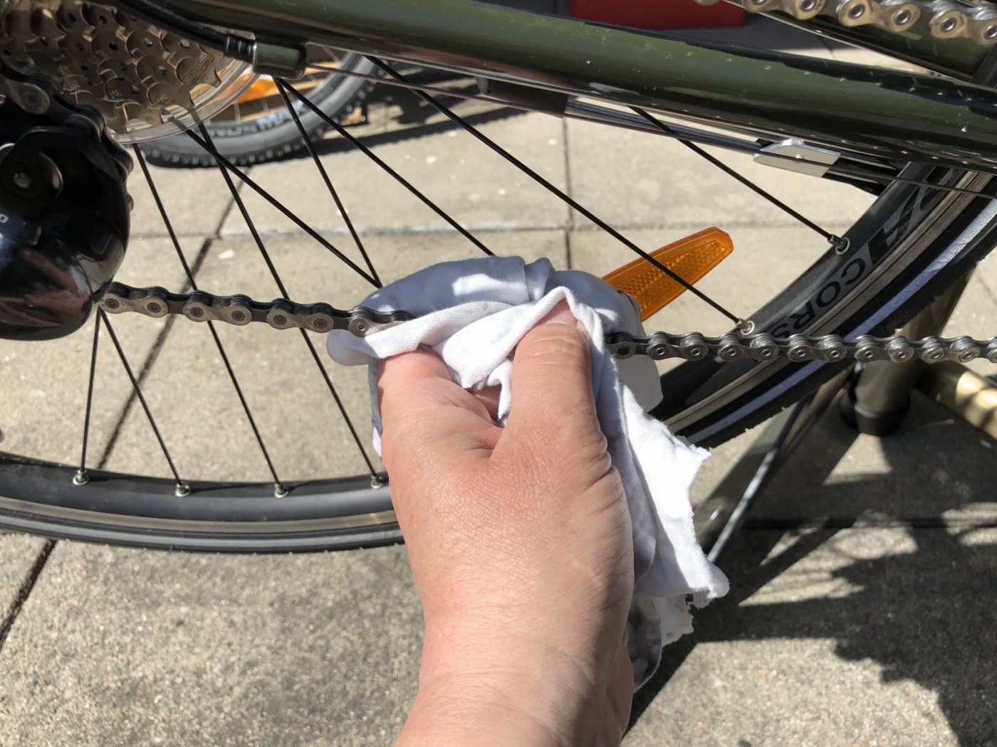 Fra olje til voks Jeg har i alle år oljet sykkelkjedet og det har fungert helt supert. Men innimellom hender det at kjedet gir utfordringer. Som at det kommer innenfor, eller utenfor største, eller minste drev, eller at det rett og slett ryker. Det å fikse problemet underveis resulterer alltid i møkkete hender. På langtur har jeg med engangshansker nettopp til dette formålet, men på dagsturer sjeldent. Hvor bra hadde det ikke vært om kjedet kunne fikses uten bruk av hansker? Jeg skal overhodet ikke ta æren for å være opphav til ideen om å vokse kjedet. Men i min søken etter en løsning på noe helt annet dukket dette snedige tipset opp. Selv om ikke jeg var klar over det har altså voksing av kjedet vært kjent lenge og man kan også få kjøpt et ferdig vokspreparat til en drøy penge. Så, hvor vanskelig kan det være? Og rett og slett lage det selv? Og igjen er nettet den rette plass for ideer og løsninger. Jeg deler inn prosjektet i 4. 1, Rengjøring 2, Produksjon 3, Vokse kjedet 4, Test Jeg startet i går. Men, bare for å ha nevnt det, det tar litt tid, første gang. Når kjedet først er vokset vil revoksing kun ta den tid det tar å få av kjedet og opp i voksbadet + tørk og påsetting. Og det skal etter sigende være atskillig lettere å holde et vokset kjede rent. Visst du som meg bruker ditt gamle kjede er rengjøringsprosessen, ikke arbeidskrevende, men tidkrevende. For å spare tid er det like greit å starte med nytt, rent kjede og hoppe rett til punkt 3. 1, Rengjøring: Ta dette på alvor. For et bra sluttresultat er rengjøring av kjede, krankdrev og kasset + løpehjul helt avgjørende. Begynn med å vaske sykkelen slik du pleier. Ta av kjedet og legg dette og eventuelt kjedelås i et glass med bensin. Rist litt på glasset en gang i blandt mens du fortsetter med resten Ta av bakhjulet og rengjør kassetten grundig. Jeg bruker lampeolje til skikkelig møkkajobber. Bruk sprayflaske, pensel, eller børste. Lampeolje er effektiv fettfjerner og du vil ikke vaske ut fettet i frikransen så pass på. Spyl av med hageslange, ikke høytrykk, mens du legger hjulet litt på skrå med kransen ned. Tørk av med med ei fille også mellom drevene. Løpehjul og krankdrev kan rengjøres der de er selv om det er lettere når det er demontert. Surr ei fille rundt en skrutrekker eller lignende og fjern alt av gammel oljesand og skitt. Dynk ei fille i lampeolje og rengjør mellom krankdrev og det samme med løpehjul. Spyl og tørk av så alt er som nytt. Visst du nå har sørget for rikelig tid til kaffe underveis er det nå kveld og da fyller du et nytt glass med bensin. Siden det nå er en times tid siden sist du ristet på glasset har mye møkk sunket og lagt seg på bunnen av glasset. Fisk opp kjedet og kjedelås uten å virvle opp for mye grums og senk kjedet i det nye bensinbadet. Rist det nye glasset noen ganger igjen før du setter det fra deg og fortsetter i morgen. Neste dag er det tid for ny risting. Rist 2-4 minutter på glasset og la det så stå i ro. Gjentas med ujevne mellomrom, mens du forbereder produksjonen av voks. 2, Produksjon av voks: Ikke gjør dette inne. Og vist du gjør det så bruk svak varme på plata. Dette er hva du trenger for å lage din egen voksblanding. F.eks. en gammel primus, en gammel kjele, en kniv, litt ståltråd, en fille og noen stumper stearinlys og litt parafinolje. ( Den blå kanna i midten på bildet, skal ikke brukes nå, da den er tenkt brukt for å lage voksblandingen du skal ha med deg på tur. Altså for ettersmøring av kjedet under veis.) Sjekk fargen på bensinglasset. Er bensinen på nytt blitt grå, eller svart fylles et nytt glass med bensin og du flytter kjedet over til dette glasset. Fyr opp primusen og legg stearinlysstumpene i kjelen. Etter en stund er stearinen smeltet og du kan fiske ut vekene. IKKE bruk for sterk varme. Når stearinen er flytende heller du i like mye parafinolje som det er stearin i kjelen, mens du rører med kniven. Som et greit utgangspunkt kan det altså være like mye stearin som parafinolje. Etter hvert kan du prøve deg fram med mer eller mindre til blandingen blir perfekt.. Rør så det er godt blandet og bruk knivbladet til å kontrollere blandingens konsistens. Løft kniven og la blandingen stivne på bladet. Den har rett konsistens når den lar seg smøre utover med fingeren. Ikke for hard og ikke for myk. Sjekk fargen på bensinglasset igjen. Bensinen skal være helt klar og er den ikke det, fylles et nytt glass og prosessen fortsetter til kjedet er fullstendig rent. 3, Voksing av kjedet: Ta kjedet ut av bensinbadet og bruk en varmepistol, eller hårtørker til å hurtigtørke kjedet. Dette for å unngå at rustprosessen starter og for ikke å bringe bensin over i voksbadet. Senk kjedet og eventuell lås ned i voksblandingen og rør kjedet litt fram og tilbake fra tid til annen. Det vil komme noen luftbobler nå, men disse er fra kjedet og skal ikke være fordi blandingen er i ferd med å koke. La det ligge og godgjøre seg fra 15 - 30 minutter mens du innimellom flytter kjedet litt rundt for å sikre at blandingen trenger inn over alt. Nå skal kjedet ut av badet. Finn fram ståltråden som du har bøyd til, slik at du kan få fisket opp kjedet. Det kan være varmt så bruk hansker og ha en ren fille klar. Her er temperaturen viktig. Er blandingen for varm vil for mye renne av kjedet før det stivner og kjedet vil da ikke være godt nok smurt. Er blandingen for kald får du en kjempejobb med å tørke av overskytende. Da er det bedre å fyre opp primusen og varme opp på nytt. Jeg prøvde litt fram og tilbake og det så ut til at drøye 50 grader i blandingen ga greit resultat. Få kjedet ut av badet og la det gli gjennom filla. Tørk godt av i hele kjedets lengde. Fram og tilbake flere ganger til det kjennes ut på samme måte som når du holder et stearinlys i hendene. Det skal være «tørt» og rent på utsiden. 4, Test: Monter kjedet tilbake på sykkelen. Noen kjeder er retningb