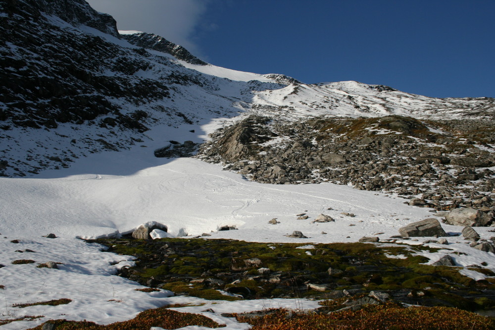 gi Skrevet 13. oktober 2008 Forfatter Skrevet 13. oktober 2008 Lurte på om du fikk deg skitur, har vært en del vind de siste dagene. I alle fall her nede. I helga forsvant mye snø i fjellet, søndag morgen var det nysnø ned til ca 1400m. Lavere var det ikke rare flekkene igjen. Trekker seg kanskje litt ned igjen nå, Alnestinden skal ha ned mot -5 grader denne uka Bruker du gamleskia eller kjører du rando når det er litt steinete? Gjelder å benytte "vinduene" Var forberedt på litt vind, men ruta er godt skjerma for sørvesten. Brukte nyskia, men det førte til et parti med bæring på nedturen, med gamleskia hadde jeg ikke brydd meg... Var spor etter flere, regner med at de var ute i nysnøen på tirsdag. 500fjell: Er på slutten av lavsesongen nå