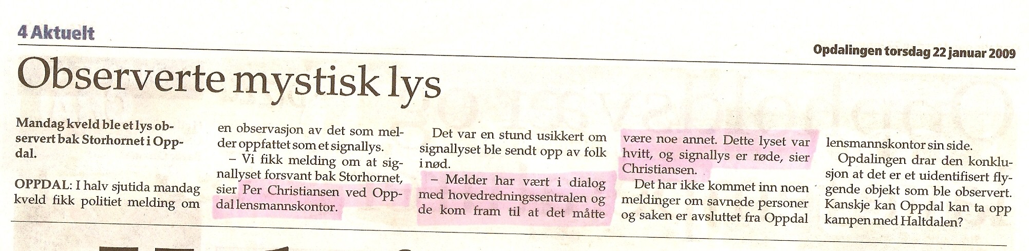 paron Skrevet 26. januar 2009 Skrevet 26. januar 2009 I artikkelen er det snakk om signallys som skal være røde! De har nok også tatt feil av Haltdalen og Hessdalen...