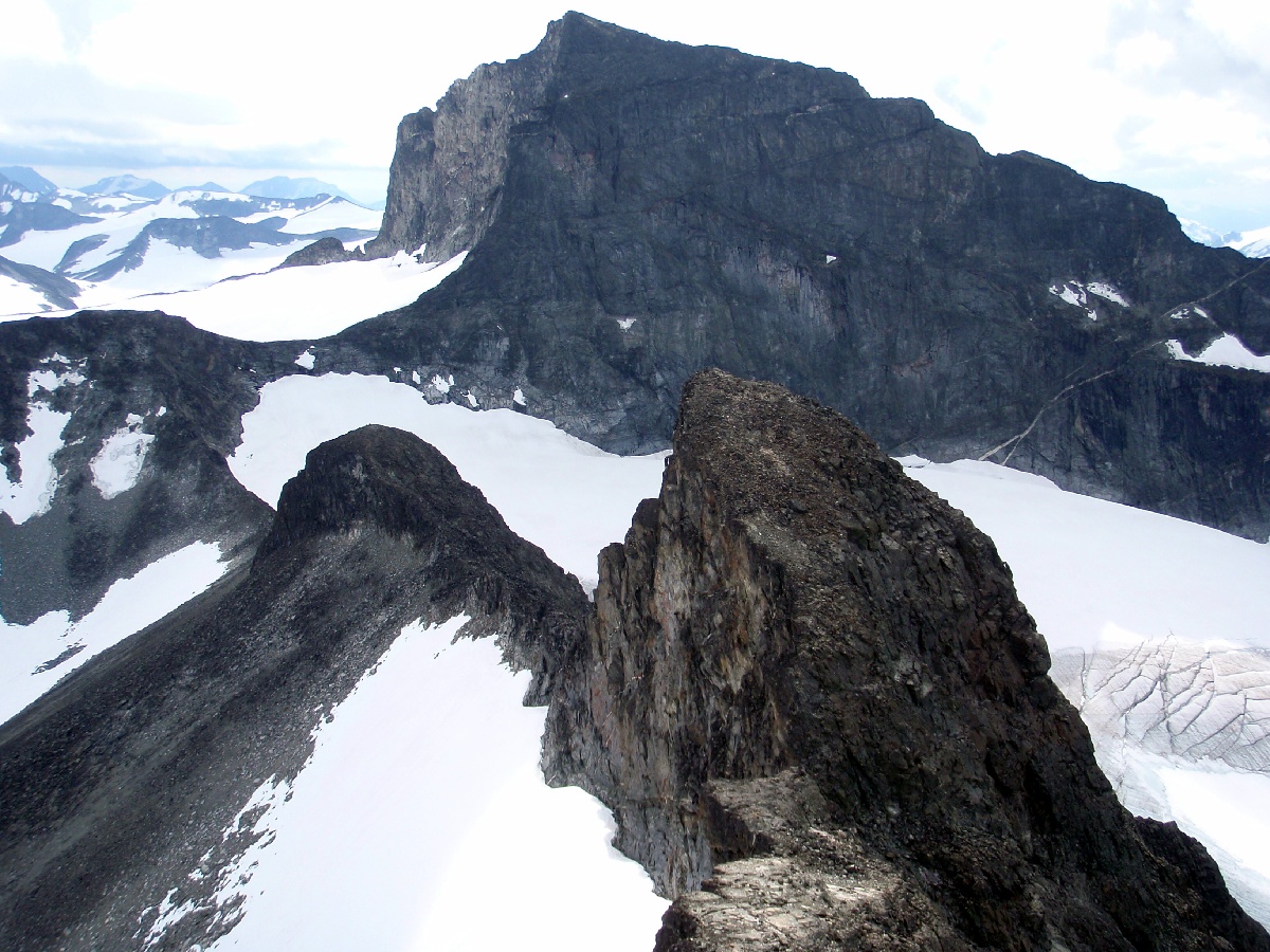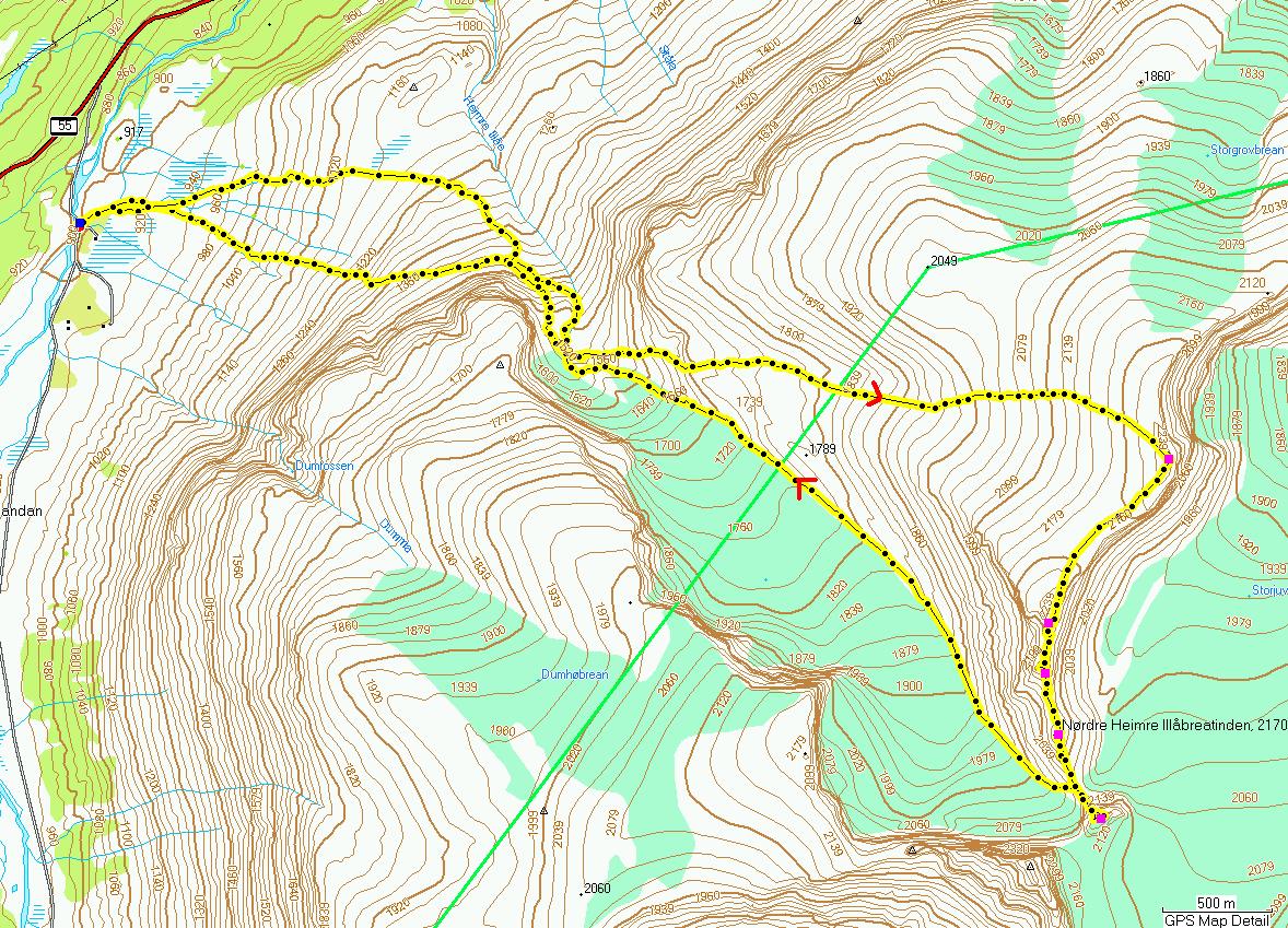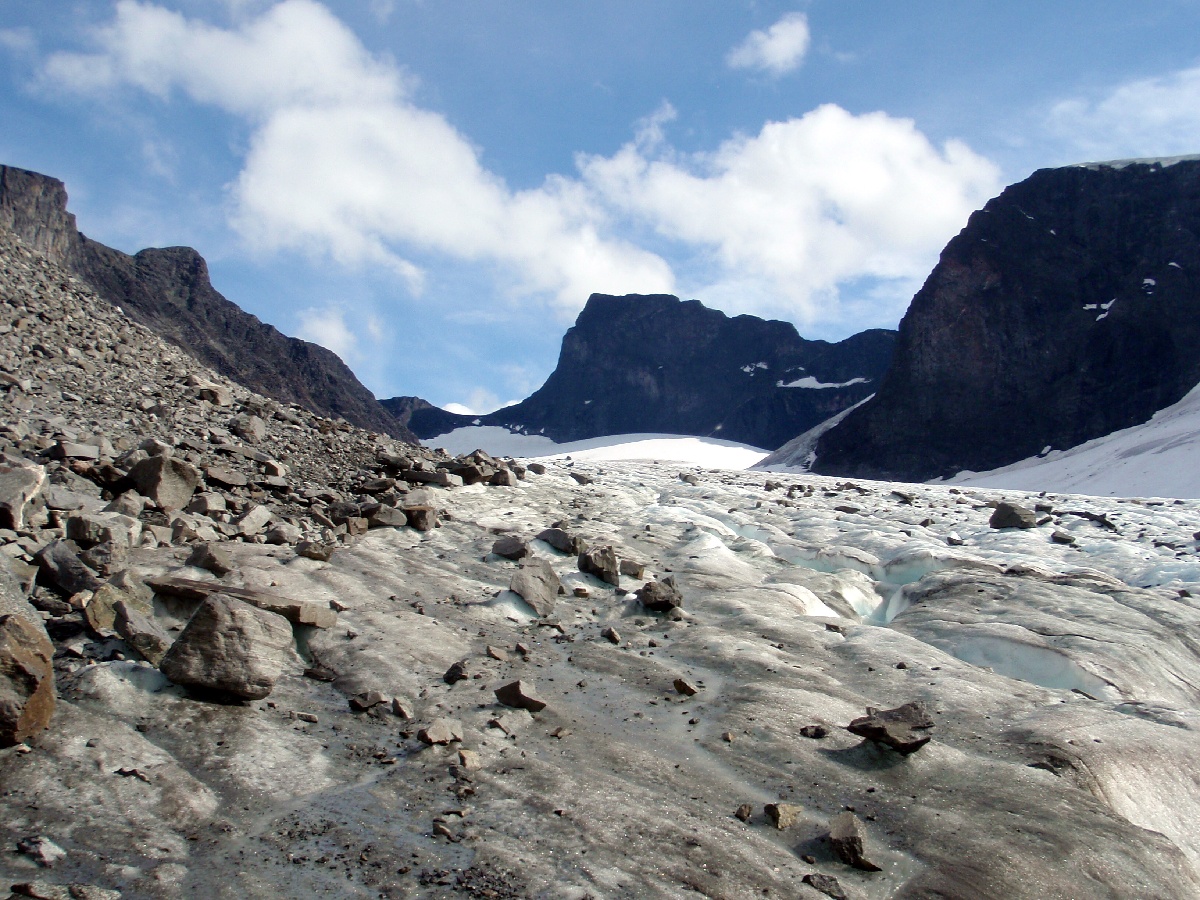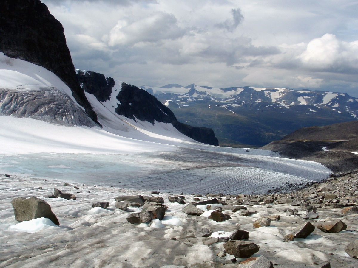 500fjell Skrevet 24. august 2009 Skrevet 24. august 2009 Aiaiai!.. da jeg våknet kjente jeg det i låra etter i går. Men været var bra med blå himmel over Leirdalen, så jeg måtte ut på tur. Utenfor bildøra på Ytterdalssætri lå det tett med telt og en plakat det stod ”Til topps 91” eller noe sånt. Skulle trudd det var en speider-jamboree! Sekken var godt pakket, til og med tauet skulle brukes til en rappell i dag. Bakkene opp mot Heimre Illåbrean bestod stort sett av gress og buskkratt før jeg kom til Heimre Illåe. Her var det typisk brelandskap der isbreen hadde gravd og herjet. Det er ganske goldt og kjedelig å gå på slike steder og jeg gledet meg til å komme høyere opp. Etter en bakke låra følte var lang nok stod jeg til slutt på Fremste Storgrovhøe. Jeg tok en telefon til Jørn der jeg sa at nå kunne han angre, været er faktisk bra nok for tur! Storjuvbrean lå under meg sprekkete og svær sikkert godt egnet til islek. Nå bar det bort til Bakarste Storgrovhøe før jeg måtte klyve ned og bort til Storgrovtinden. Nok en gang gjorde sekken det vanskeligere enn normalt ned hit så jeg måtte være tettere på alerten enn med ”0-kg sekk” som vanlig. Jeg var spent på hvordan det skulle bli videre mot Heimre Illåbreatind. På noen bilder husket jeg en 20 m høy hammer der jeg ikke ville funnet på å gå usikret. Men litt ut mot vest fant jeg en liten omgåelse som gikk ned til en hylle under hammeren. Jeg fulgte den helt til en 4-meter høy hammer sperret mot videre ferdsel. Hadde jeg kommet motsatt vei med lett sekk hadde jeg nok gått her usikret, men når jeg først hadde drasset med meg tau og sele kunne jeg like gjerne ta en rappell. Brukte en 120 cm ferdigslynge rundt en blokk og så firet jeg meg ned. Grei skuring til Heimre Illåbreatind, delvis på egg som kan omgås til høyre. På sadelen mot Søre Illåbreatind la jeg fra meg sekken og sprang opp til den toppen. Veien opp bød på klyving på egg og riss hvis man tok den direkte varianten. Skardstind så virkelig mektig ut herfra, en stor og høy vegg som reiset seg til værs. I slike stunder føler man seg liten. Etter å ha returnert til sekken tok jeg meg ned til Heimre Illåbrean som jeg fulgte helt ned til tunga der jeg kom opp. Breen var isglassert, men nokså ruglete at jeg faktisk fikk god friksjon med skoene. Jeg hoppet over noen sprekker og ved siden av meg rant det flere bekker med fossende smeltevann. Undervegs kom det en skikkelig regnskur som heldigvis passerte ganske fort. Etter breen holdt jeg venstre skar ned igjen, altså ikke der elva rant. Ruta mi bød på litt klyving på glatte sva og ellers en del hyllegåing. Så gikk jeg mer mot nord før jeg skar av mot vest og Ytterdalssætri. Det lønte seg da jeg slapp en del krattkrangling som jeg fikk på vei opp. Speiderleiren hadde dratt sin kos da jeg kom ned til bilen. Jeg dro ned til Lom der jeg møtte Håvard og Mayhassen over en matbit. Turdata: 8 timer 1940 høydemeter 15,5 km 5 topper > 2000 moh. Vis rapporten i Turkartet Vis større kart
