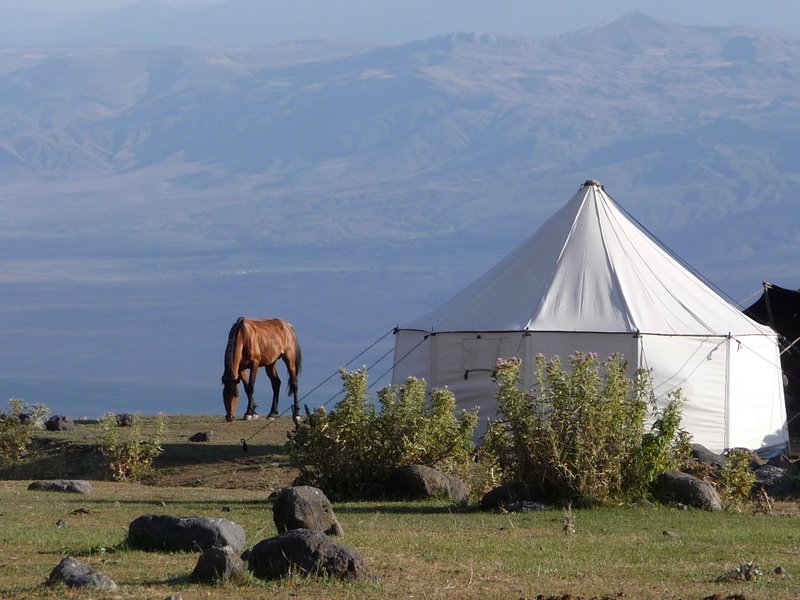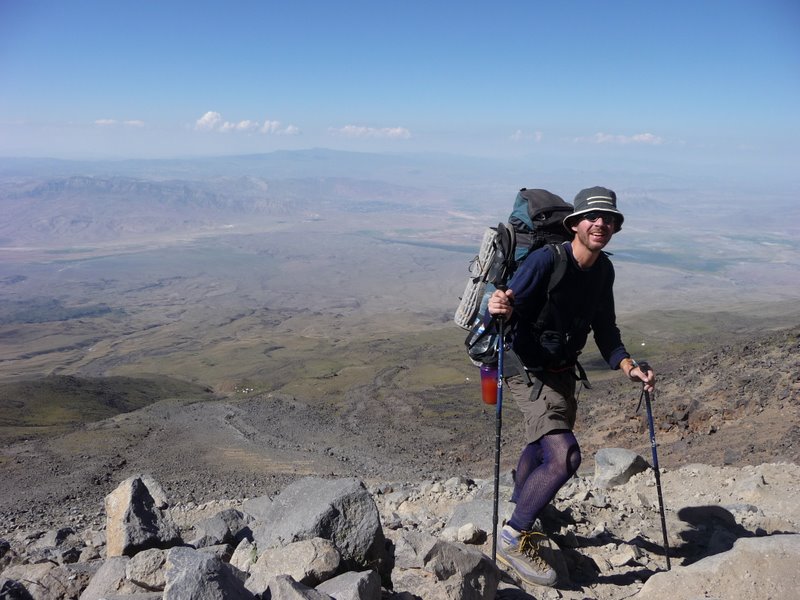 Lyngve Skrevet 1. september 2009 Skrevet 1. september 2009 Fra Kayseri til Dogubeyazit Etter å ha nådd toppen av Erciyes, dro jeg videre fra Kayseri til Erzurum med nattbussen. Hovedintensjonen med Erzurum var å fikse visum til Iran (Damavand), men etter å kastet bort 3-4 timer på konsulatet fikk jeg beskjed om at dette var umulig, og at jeg måtte gjøre det hjemmefra. Helt bortkastet tid med andre ord. Men Erzurum har heldigvis mer å tilby enn et fiendtlig innstilt Iransk konsulat. Midt i byen finnes det noen flotte historiske byggverk, og på vinterstid kan Erzurum reklamere med det beste skistedet i Tyrkia (Palandøken). Men på sommerstid er det egentlig lite å finne på i en såpass konservativ by, og attpåtil under Ramadan. Etter to netter i Erzurum dro jeg derfor videre til Dogubeyazit med Ararat for øye, spent på om det i det hele tatt lot seg gjøre å bestige dette fjellet uten en forhåndsbooket permit. Tillatelse (permit) Byråkratiet rundt Ararat er ikke helt uproblematisk. En klatretillatelse må søkes minst 45 dager på forhånd gjennom en av de mange tur operatørene på fjellet. Men så langt i forkant hadde ikke en impulsiv type som meg evnet å planlegge. Derfor visste jeg at min tur ville bli en tvilsom affære enten på egenhånd eller i en gruppe. Jeg oppsøkte en av de mest profilerte operatørene i Dogubeyazit, for å se om jeg i det minste kunne få fikset transport inn til fjellet. Dette ville komme på 25 Euro, men med betydelig risiko for at en ensom fugl som meg ville bli snudd av enten guider på fjellet, lokalbefolkning eller truende gjeterhunder. Sistnevnte er faktisk ikke noe å spøke med, for er det noe jeg misliker så er det å være alene når en flokk med gjeterhunder kommer bjeffende imot meg. Men gjeterhundene ved foten av Ararat er heldigvis av den mer vennlige sorten, og antakelig godt vant med turister i goretex bekledning. Det værst tenkelige scenarioet (om enn noe usannsynlig) er å bli pågrepet av Gendarmes, uten å være i besittelse av de nødvendige papirer. I en slik situasjon kan det godt tenkes at man må ut med flere hundre dollar i bestikkelser, noe jeg har erfart tidligere i sammenlignbare land. Så etter en natt med grublerier bestemte jeg meg for at immunitet i en guidet gruppe ville være det beste alternativet selv om prisen da ble hele 280 Euro, uten mat og esel-transport. Litt overaskende viste det seg at ingen av de andre i gruppen heller hadde en reell permit, fordi samtlige hadde meldt seg på for relativt kort tid siden. Et fransk ektepar betalte 300 Euro hver, en franskmann 400 Euro og de fire armenerne ca 400 Euro hver. Mao noe høyere pris enn det jeg betalte, men så hadde de til gjengjeld full service på fjellet. Fire polakker jeg møtte på noen dager senere hadde sluppet unna med 150 Euro hver, men med en helt annen operatør. De også, selvsagt uten en reell permit. Så mitt inntrykk er at langt de fleste på fjellet er i besittelse av ureglementære tillatelser, og at alle operatører i Dogubeyazit (også de seriøse) i større eller mindre grad opererer på denne måten. Den mest anerkjente operatøren i Dogubeyazit tilbød meg endog 20 Euro i momsrabatt, mot at det ikke ble utstedt kvittering, noe jeg uten skrupler aksepterte. Men dette hadde jeg naturligvis ikke tatt sjansen på med en ukjent operatør, som ikke er kreditert av Lonely Planet. For da hadde jeg risikert å betale for en tur som aldri ble noe av, uten at jeg hadde kunnet dokumentere oppgjøret. Turen min var så usupportert som den kunne bli etter omstendighetene på fjellet. Dog med ett unntak. Og det var en liter med kokende vann per dag på fjellet, da jeg ikke fikk kjøpt gass i Dogubeyazit. Utenom det var jeg selvgående. Dag 1 Avtalen var at jeg skulle være klar for avhenting på hotellet kl 07:00. Men jeg forsov meg, så da det banket på døren kl. 07:30 måtte jeg hive meg rundt på 5-10 minutter. En utrolig stressende og flau start på turen. Minibussen brukte vel en time opp til 2200 moh, hvor hester stod klare til å ta over. Der møtte vi også guiden Ahmed, en gammel og tilsynelatende sliten kurdisk mann med bart. Men han var mye sprekere enn han så ut til, og de gikk i bra tempo opp til sommerbeitet på ca 2500 moh. Her møtte vi familien hans, som tilbød te og noe å spise. Deretter fortsatte vi bratt oppover, og flere hadde problemer med tempoet til gamlingen. De andre, som praktisk talt bar ingenting, hadde nok forventet at en kar med 20+ kg på ryggen, ville sinke gruppen betraktelig. Men tvert imot, dette handikappet passet meg ypperlig, og jeg holdt fint følge med gamlingen. Vi passerte den normale basecampen på 3200 moh og fortsatte opp til et mye bedre område på ca 3300 moh. Mens de andre måtte vente på hestene med utstyr og telt, var jeg rask med å slå opp mitt telt i fare for en nærstående regnbye. Etter lunsj forsatte et par av de armenske karene på en vanvittig akklimatiseringstur til 4700 moh, noe som i ettertid skulle vise seg å ikke være så lurt. Selv tok jeg en meget moderat tur opp til 3500 moh, hvor jeg satt i en time og nøt solnedgangen. Dag 2 Jeg våknet opp kl 07:15 og inntok min medbrakte frokost (tyrkisk brød med ost) i teltet, mens de andre pakket i påvente av sin frokost. Innarbeidede telt rutiner gjennom mange år, medførte at jeg startet en halvtime før de andre. Jeg unnagjorde de 900 høydemetrene på ca 2 timer, og selv de to sprekeste armenerne dukket ikke opp i Highcamp før det var gått mer enn en halvtime. Resten av følget kom en del senere, og spesielt den ene franskmannen så ut til å slite noe fryktelig. Etter et raskt måltid fortsatte jeg et par hundre høydemetere oppover, slik at sovehøyde også denne dagen skulle bli mindre enn makshøyde. Ingen av de andre, selv ikke armenerne, hadde krefter til dette. Det begynte å lyne og tordne like etter at jeg var nede igjen, og den påfølgende haglskuren la igjen et 2-3 centimeter dekke. Det var en felles akse