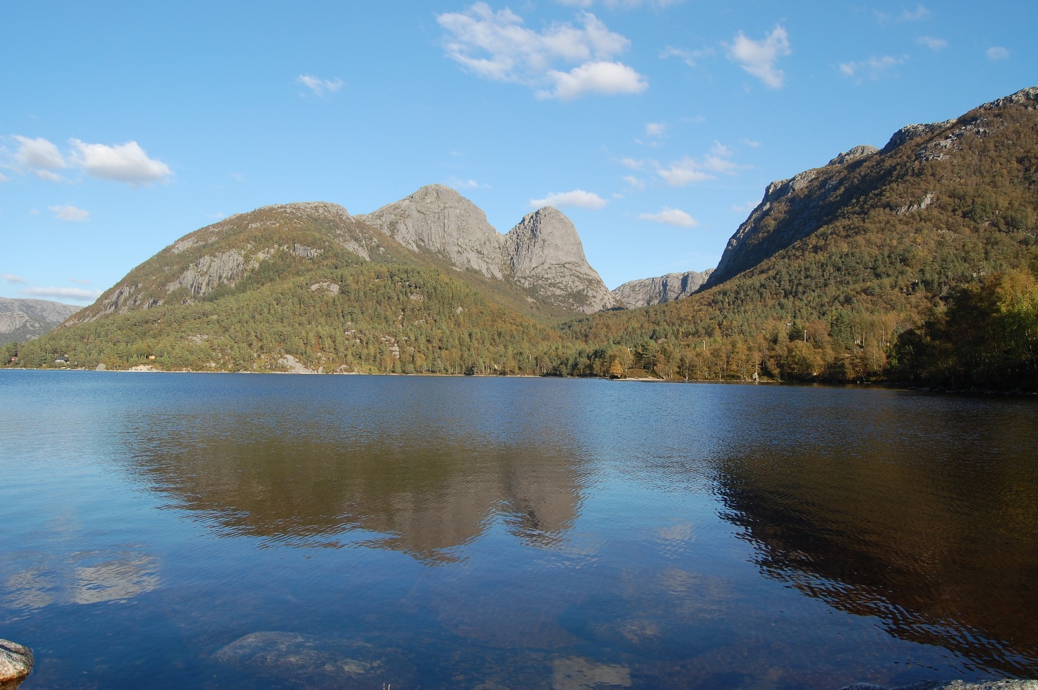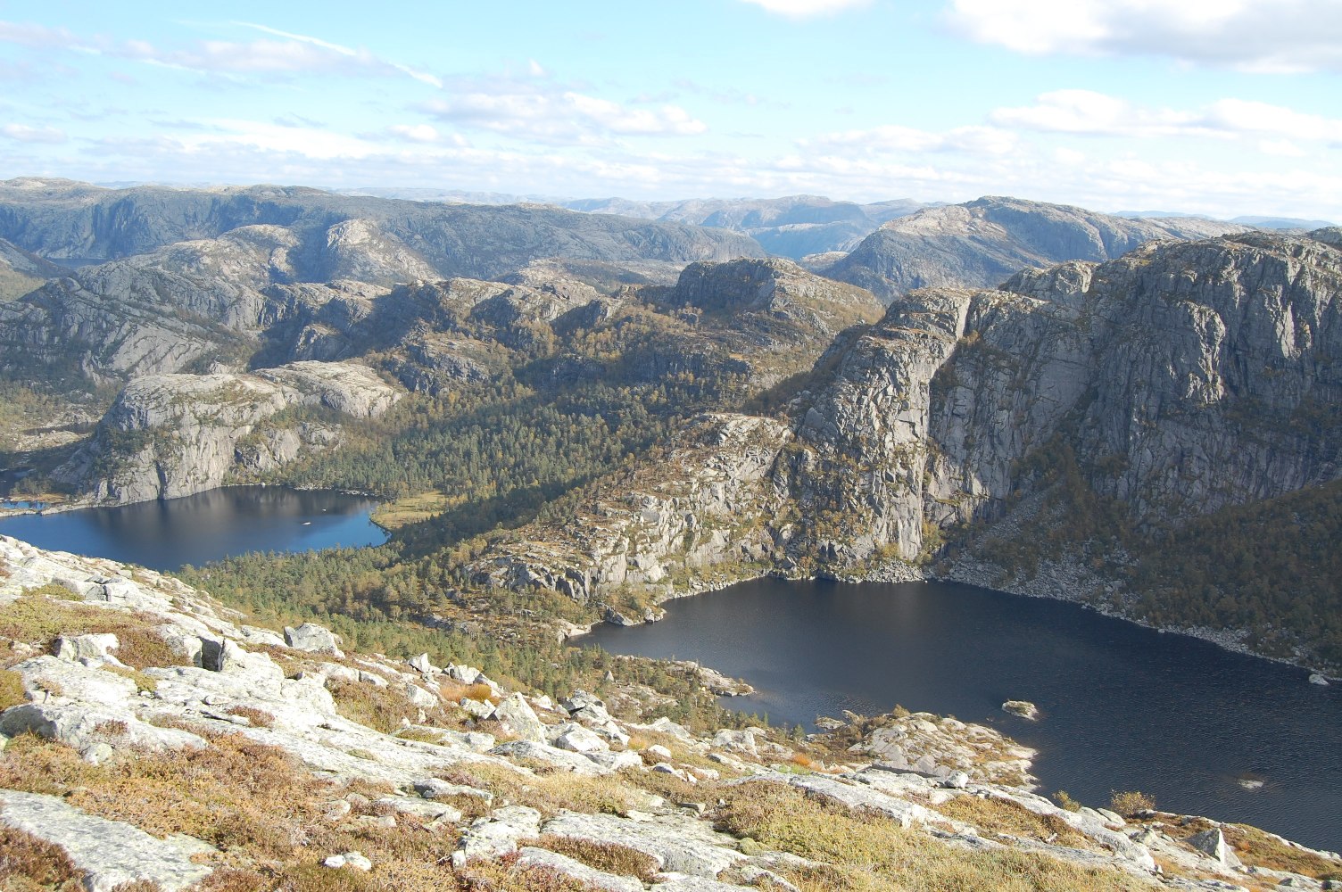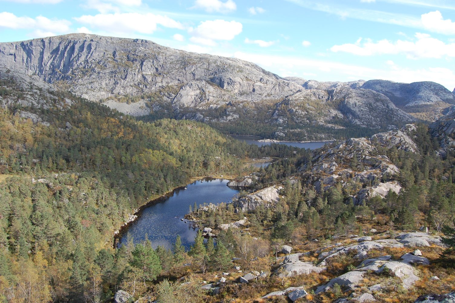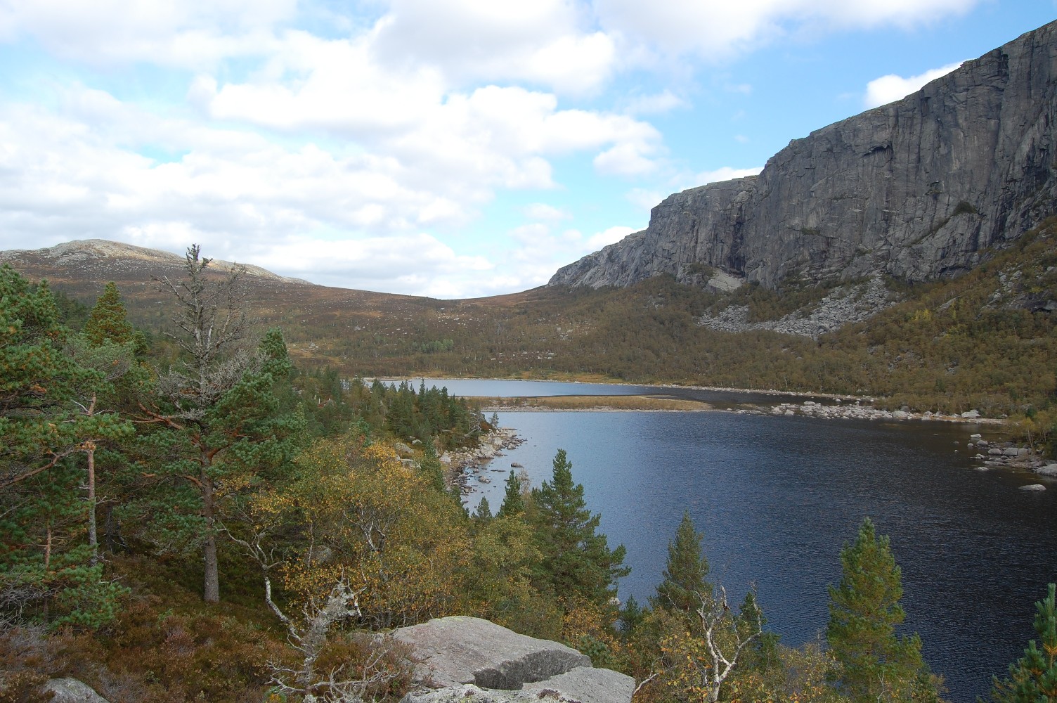 Kaare_70 Skrevet 29. september 2009 Forfatter Skrevet 29. september 2009 Angående furuskog, så er det noe, men ikke veldig mye, men faktisk er området rundt Longavatnet og Forenesvatnet (betegnende navn) vernet pga. urskog av nettopp fore/furu. Dette er furuskog som sikkert er mange hundre år gammel og som har fått stå og skjøtte seg selv. Derfor er det også endel spesielle lavarter osv. i området. Ellers er det noe furuskog bl.a. rundt Småsildalen, se det karakteristiske siste bildet mitt. For de som ikke er kjent i området, er dette nærmeste nabo i nord til den langt mer kjente Preikestolen. Så de av dere som har vært der, har sett innover dit bildene er tatt. Vi som er fra området, regner jo også Preikestolen som en del av Jørpelandsheia. Nå er det faktisk seriøse planer om å fremme forslag om nasjonalpark i området. Jeg tviler vel på at det går, men en eller annen form for fredning burde la seg gjøre. Som sagt, er hele området en kraftutbyggers våte drøm, og har vært det siden de første dammene ble anlagt for ca. 100 år siden. Av andre flotte turmål i området kan nevnes Reinarknuten (787moh), ruvende over Rv. 13 langs Tysdalsvatnet og de for lengst nedlagte Hengjande- og Bratteligardane som nås ved å ta til venstre i Neverdalsskardet halvvegs til Preikestolen (altså innover langs nordsida av Lysefjorden). Fra Bratteli kai ved Lysefjorden får man om sommeren skyss av turistferja som setter kikkerten på kaien og plukker opp folk. Har selv blitt med på film fra ferjeturister som synes det er litt eksotisk når ferja legger snuten til den lille kaien og vi hopper om bord.
