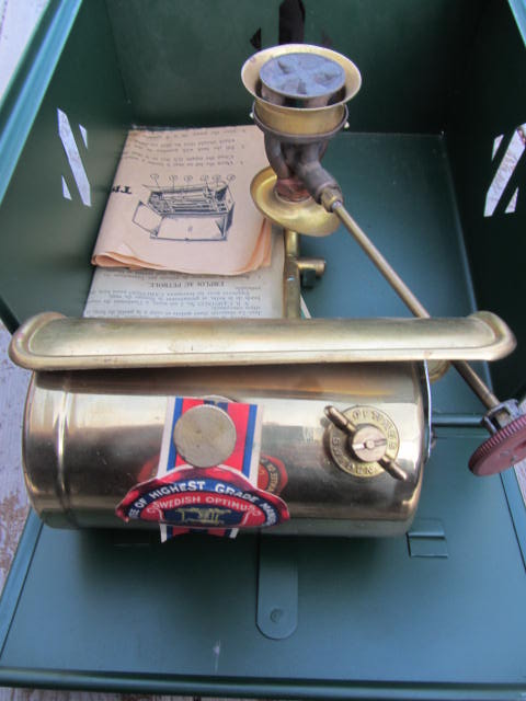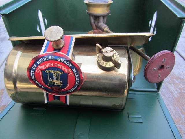 Reginol Skrevet 4. desember 2011 Skrevet 4. desember 2011 Dere tåler et par bilder til. Jeg synes det har vært vanskelig å finne info om disse primusene, men har forstått at modellen er bestefaren til optimus 111, og at de ble produsert i årene 1922 til 1939. Brenneren skal ifølge bruksanvisningen som følger med kunne brukes til både bensin og parafin. ( ikke at det spiller noen rolle, da jeg aldri kommer til fylle opp tanken og fyre opp denne) Tror modellen bare har vært ment for sivile, men vet ikke. Sjelden...? Antageligvis Mvh Reginol