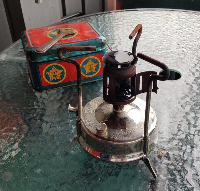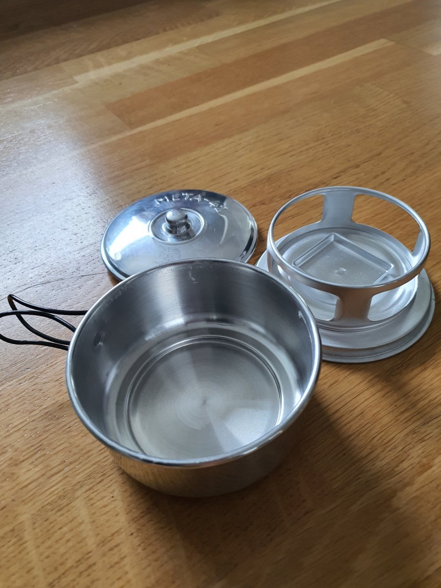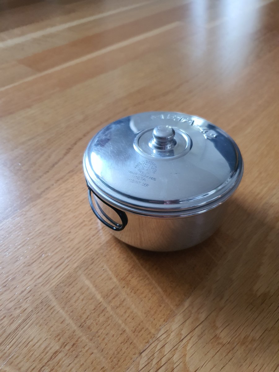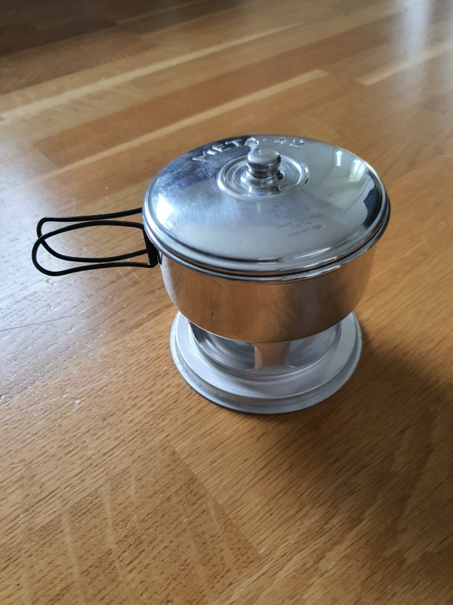 esphojo Skrevet 15. september 2020 Skrevet 15. september 2020 Er vel strengt tatt ingen "primus", men tydlig beregnet for matlaging ute på tur. De kunne lettpakking i gamledager også. 66g (kjelen med lokk 40g og stativ 26g). Siden jeg ikke er noen lettpakker får den gå på hyllen 😉 1