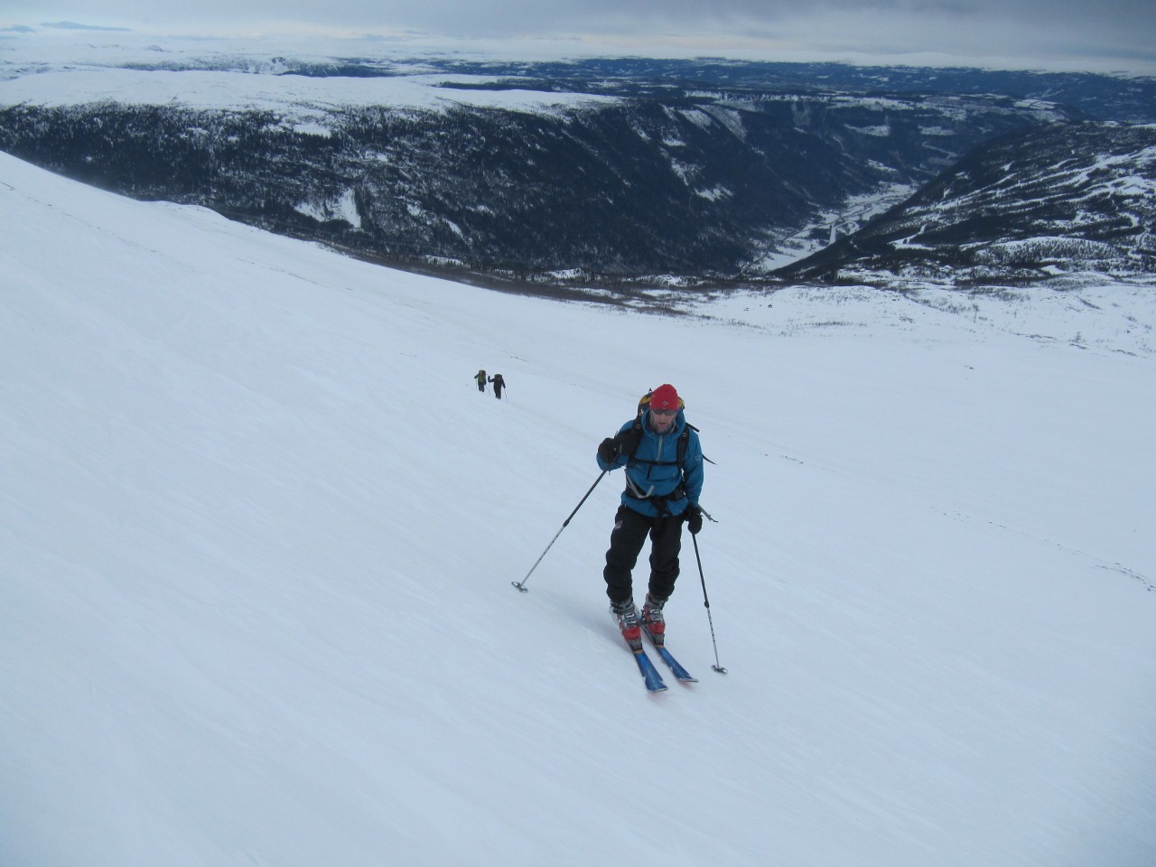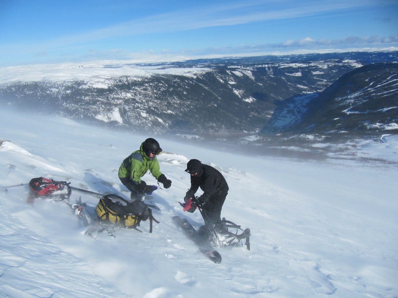 Langbein Rise Skrevet 15. mars 2010 Skrevet 15. mars 2010 En god værmelding førte til stor optimisme. Skyfri himmel, ett par kuldegrader og maks frisk bris var ventet. Stemningen var stor når vi hadde installert oss på en leilighet på Gaustablikk med utsikt opp på Gaustatoppen (1883 moh) Skilørdag Nede ved Gaustablikk var det noe vind, men ellers fint vær. Det raste noen lokale skyer i stor fart over Gaustatoppen. Vi satte i gang oppover. Vinden tiltok i styrke etter hvert som vi kom høyere og høyere. Brisen ble etter hvert voldsomt frisk og gikk vel mer over i stiv kuling med snøfokk 2-3 m over bakken Det ble rett og slett utrivelig, så halvveis oppe i bakken bestemte vi oss for at nok var nok og rant ned igjen. Vi traff mange andre optimister på vei oppover, men alle ville prøve lykken. Lunsjen spiste vi inne i leiligheten og fikk med oss innspurten på damenes 3-mil i Kollen med 3-dobbelt norsk. Mette og inspirerte fortsatte vi rett på 5-mila og Northug-seier Etter all milslukinga var vi utkjørte og måtte teste skibakkene. De lengste heisene var stengt på grunn av vinden, men vi fikk testet skiene tilstrekkelig til at vi følte oss klare for afterski Det ble god stemning som vi avrundet med en velsmakende spagettigryte.Toppsøndag Søndag morgen hadde vinden hadde løyet og temperaturen sunket med fem grader. Toppiveren hadde definitivt ikke lagt seg, så når jeg våkner tidlig som vanlig gjorde jeg forkosten klar til de andre hadde stått opp. Dette gjorde at vi var klare på rekordtid og prøvde oss nok en gang på Gaustatoppen. Etter 2 timer sto vi ved hytta på toppen. Skyene holdt fortsatt ett lite grep om toppen, så det var surt. Heldigvis er vindfanget på hytta åpent og vi kunne sitte innendørs og spise lunsj før vi traverserte bort til den første renna for å starte nedturen. Snøen var beinhard etter all vinden. Dermed tok det hardt på låra å kjøre nedover. Vi holdt oss unna de verste vindhumpene og fikk til fin skikjøring. Selv om noen fingre ble kalde var det en herlig tur og godt å komme opp på snaufjellet Vis rapporten i Turkartet Vis større kart